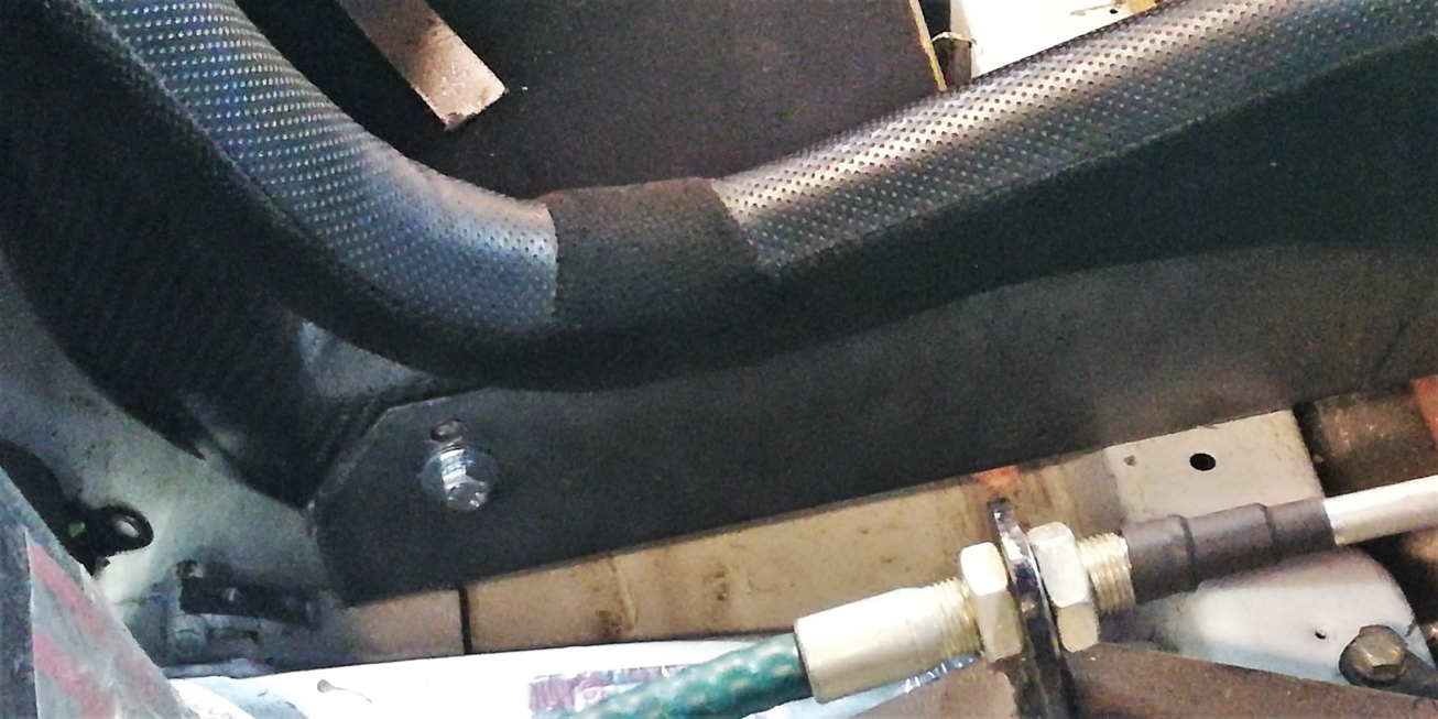 Hey, do you have pictures of your seat mod for more headroom? I think I have enough by mounting the seat directly to the floor, but I like to explore options. Dan, All we did was notch the floor-pan on three sides leaving the front intact. It was slightly larger than the width of the seat. I then sat in the seat with helmet and targa top on and bent the floor pan down until I achieved the ideal height. A panel (wedge-like) was then welded in to take up the gap between the floorpan section. Make sense? I then mounted to seat in three places (none to the floor); on the console and rocker on the front of the seat and to the roll-bar on the rear. Rough as it is...you can see the notch and outer seat mount in the picture below. It doesn't take much to lower the seat significantly...at 6'5" the 1" drop at the deepest point made a huge difference! Its hard to see in the second picture but I have about 2"-3" between my helmet and the roof - a gob of room for someone of my height in a teener! Mepstein can barely see over the dash...as I recall! LOL. Feel free to message me if there is anything I can help with... T ![]() |