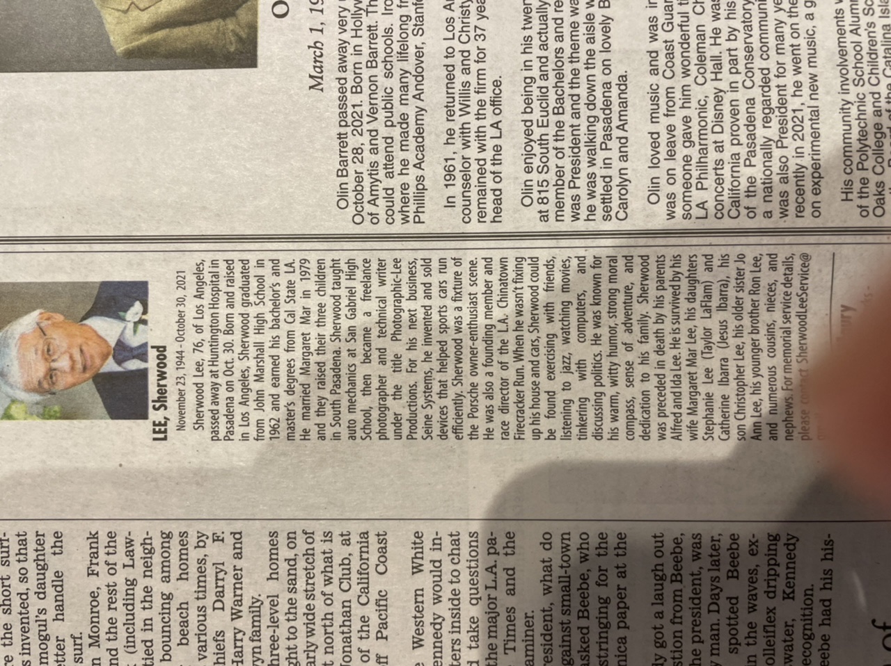 Sherwood Lee has passed away. There was some sort of as yet undisclosed accident, and he didn't make it.