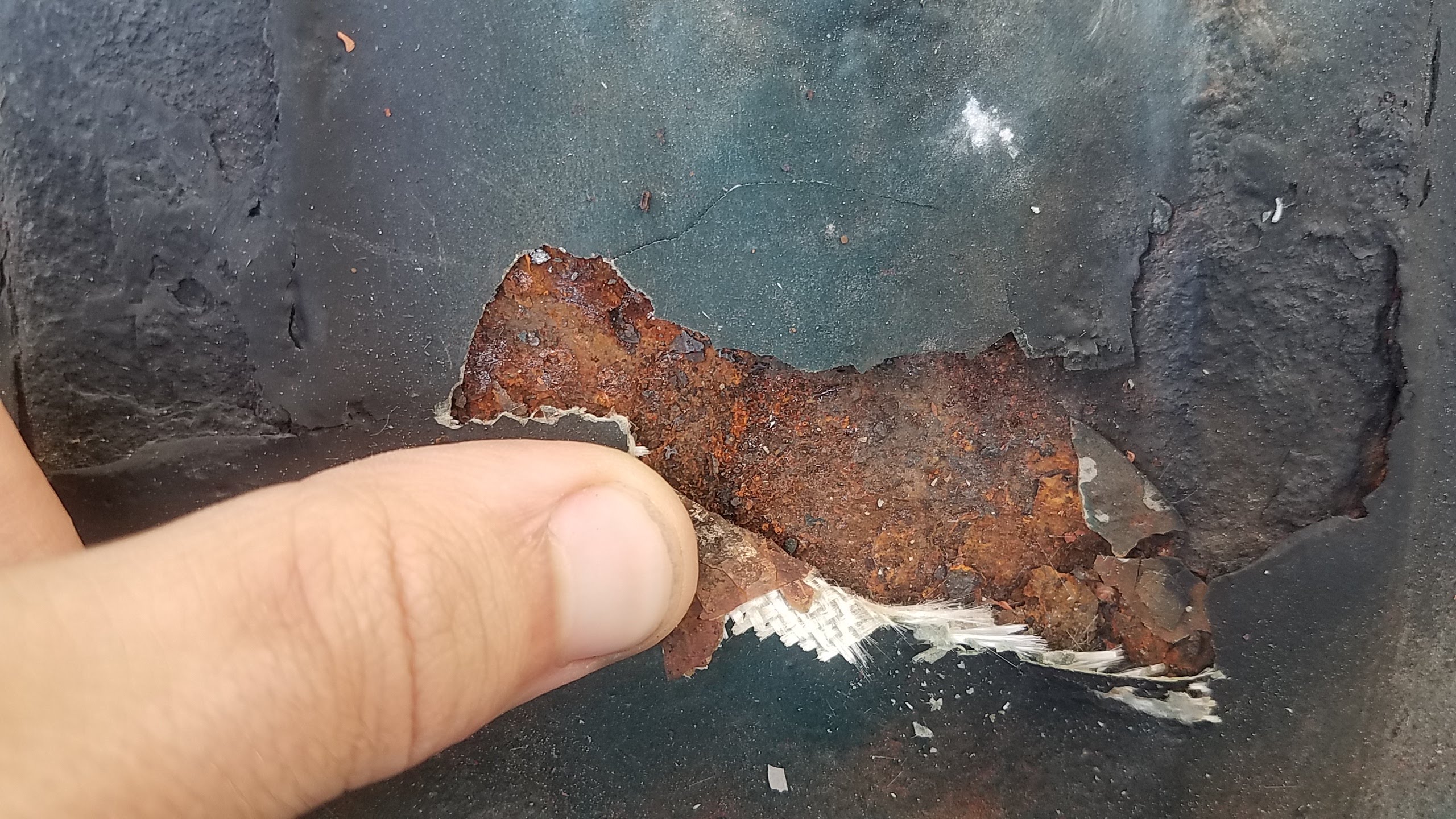 I'm pretty sure that IS fiberglass on top of rust Yep, that would be some DAPO's "fix" for a rusted trunk floor ... (IMG:style_emoticons/default/icon8.gif) |