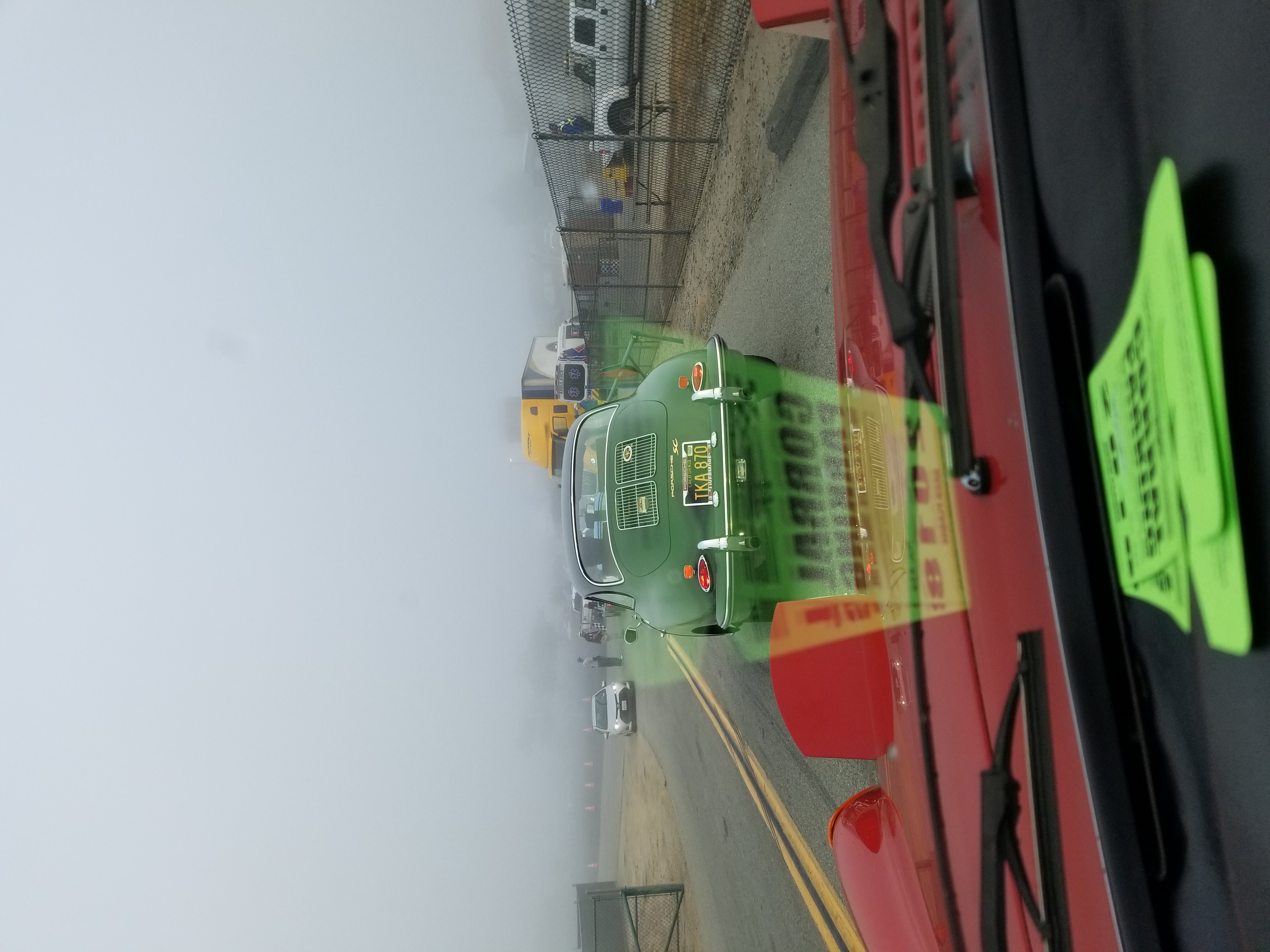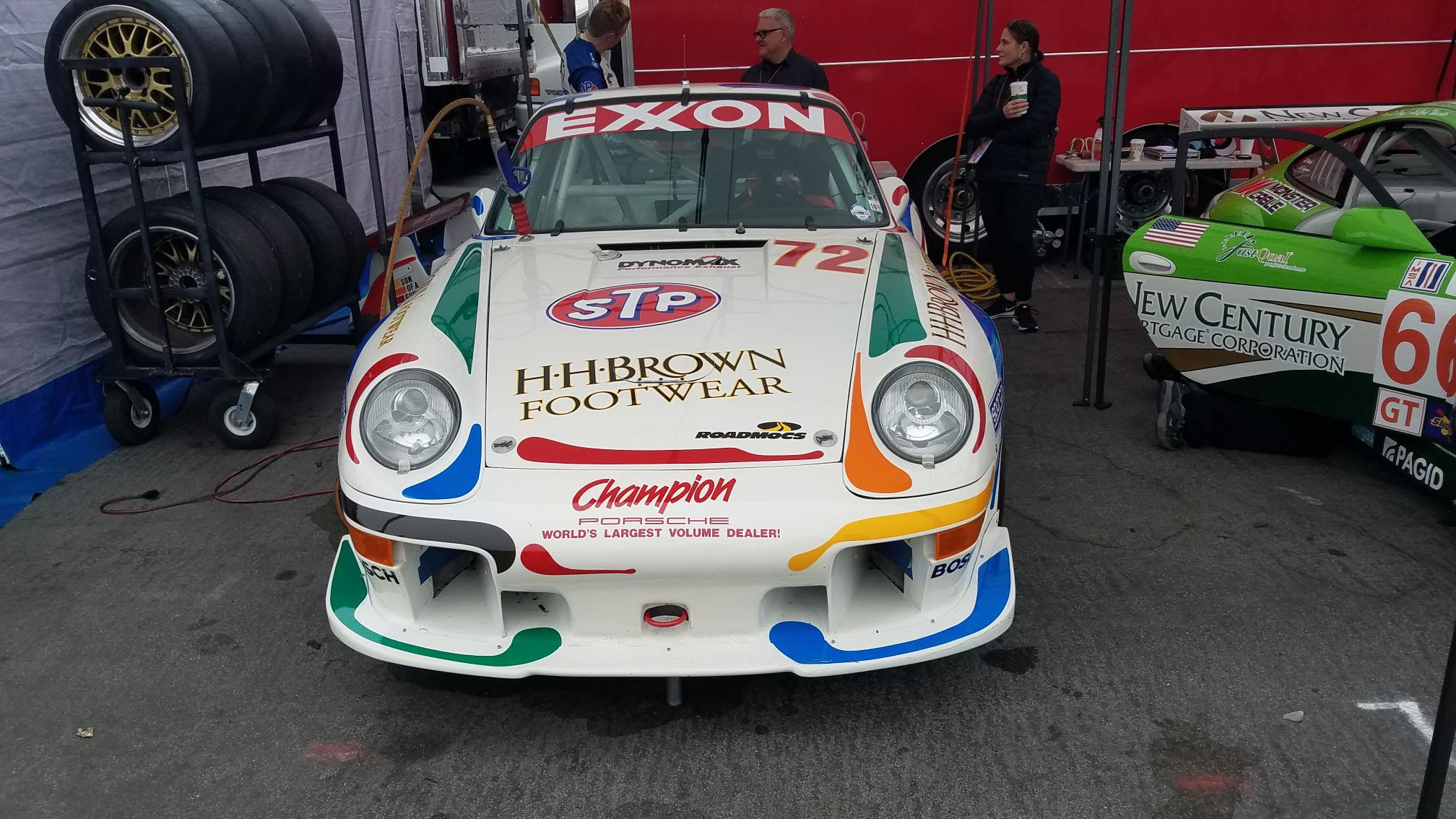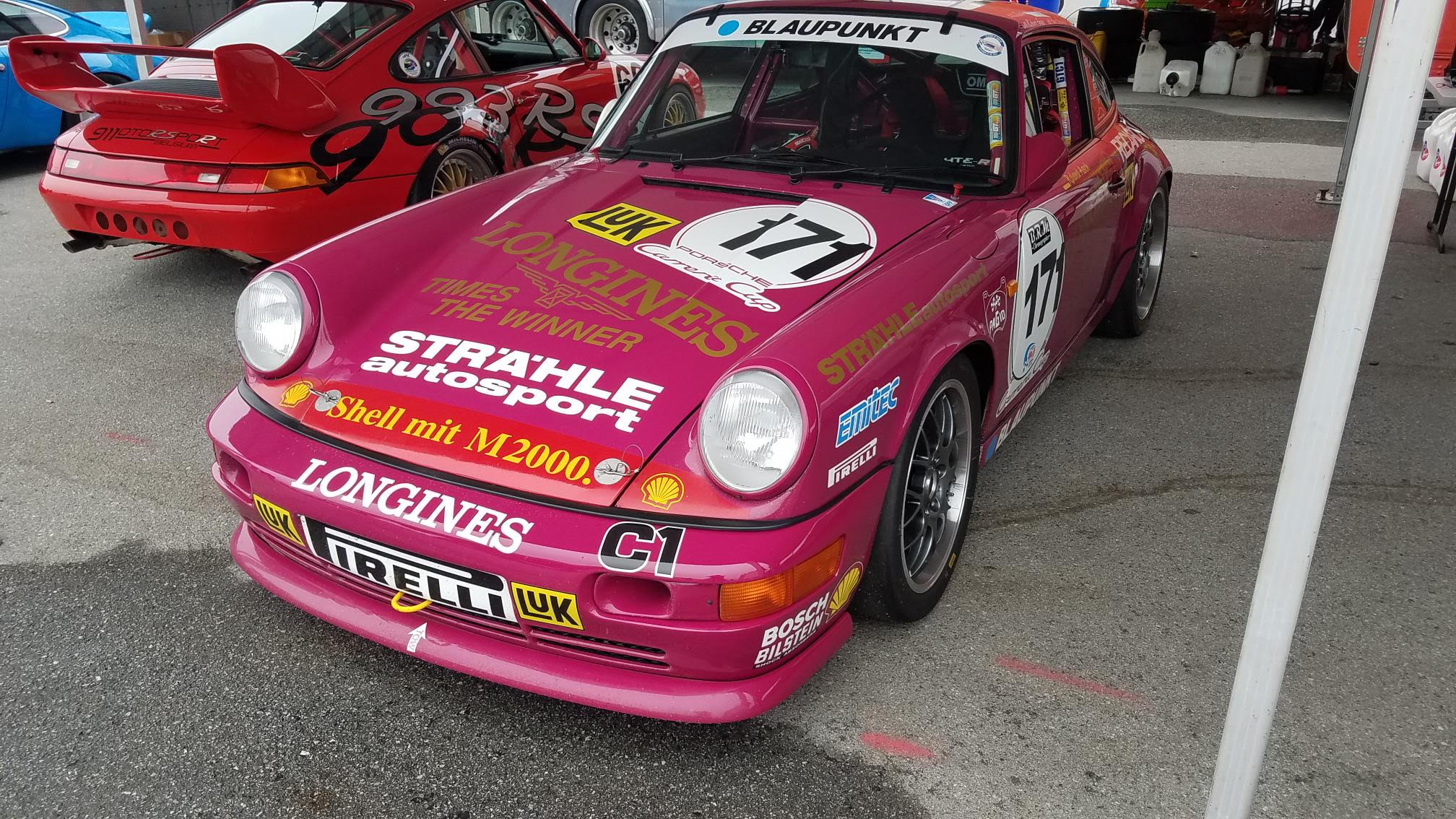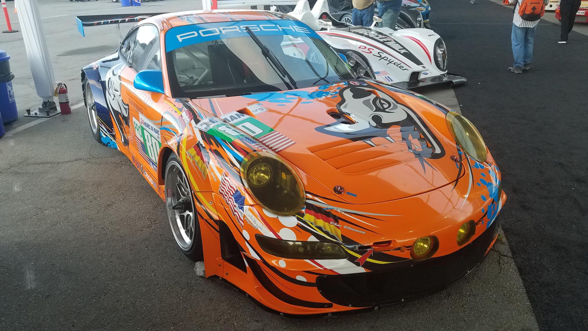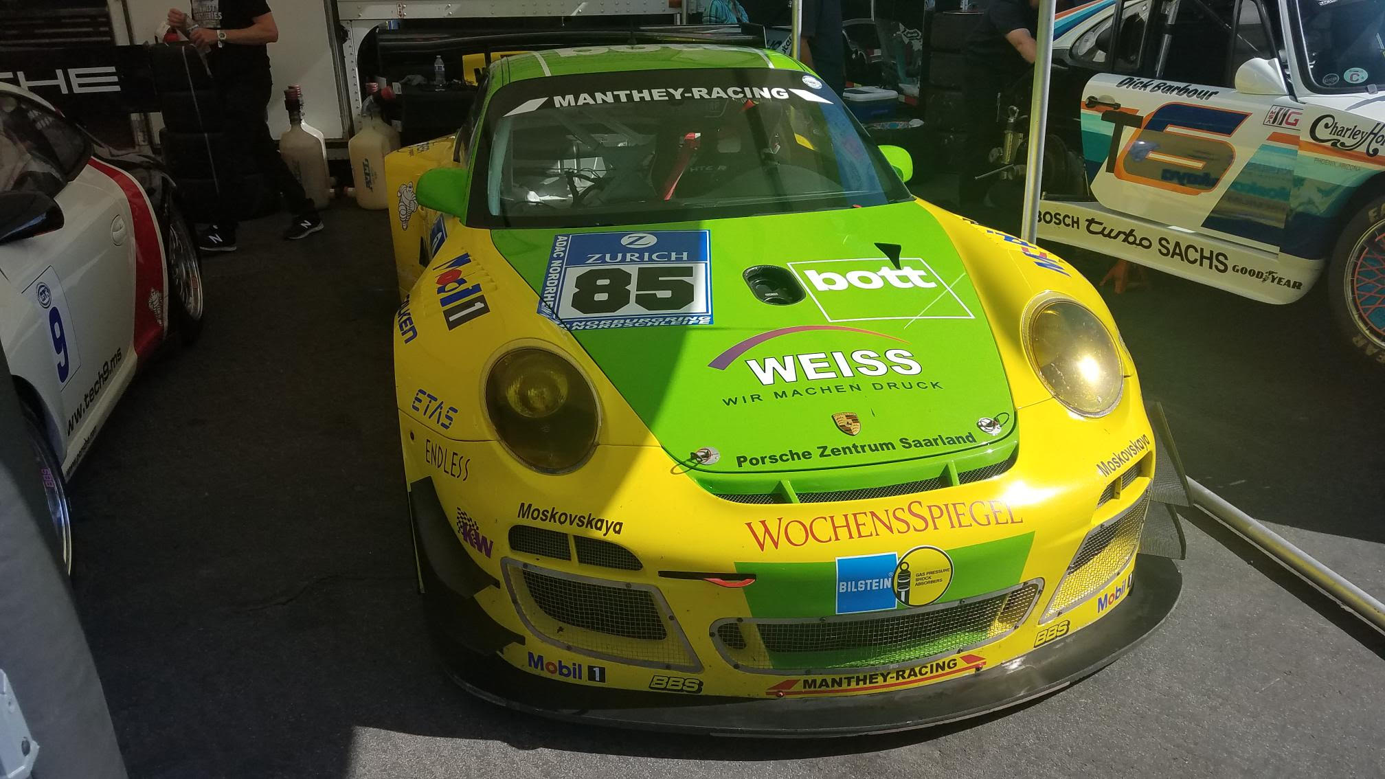 It was in front of the in-car simulator in the Paddock. The Porsche rep handed two of them to Buddy. We thanked her.