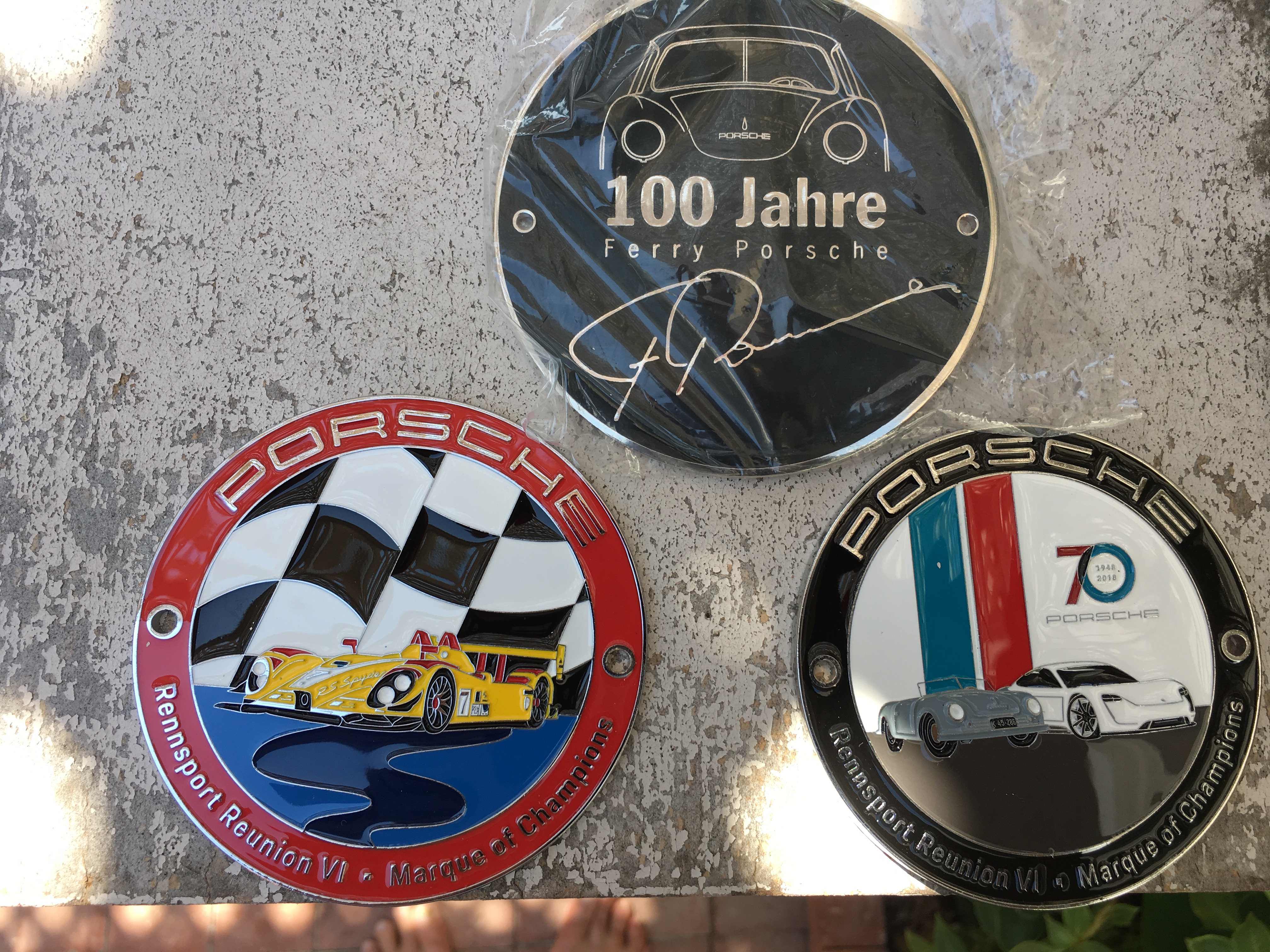 The Ferry Porsche 100 yr badge was being blown out by a Porsche dealership on vendor row...$20. The other Rennsport badges were not for sale and you just had to be in the right place at the right time for the hand out. Very nice of them to do, tons of free swag this year including metal street signs.