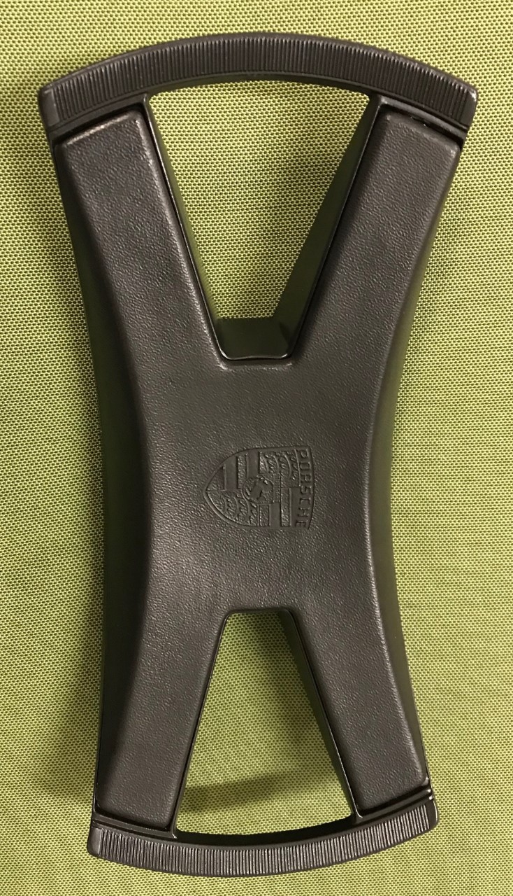 So my steering wheel butterfly was pretty beat up and I could not bear to put it back on a Dallas Custom restored wheel. I liked the idea of powder coat, but as was pointed out here on the World the detail is sometimes lost with powder coating. I decided to Cerakote the butterfly in order to retain the detail on the small ridges on either side of the butterfly. After I aluminum oxide bead blasted the metal, a gun guy buddy of mine baked on Cerkote graphite black.