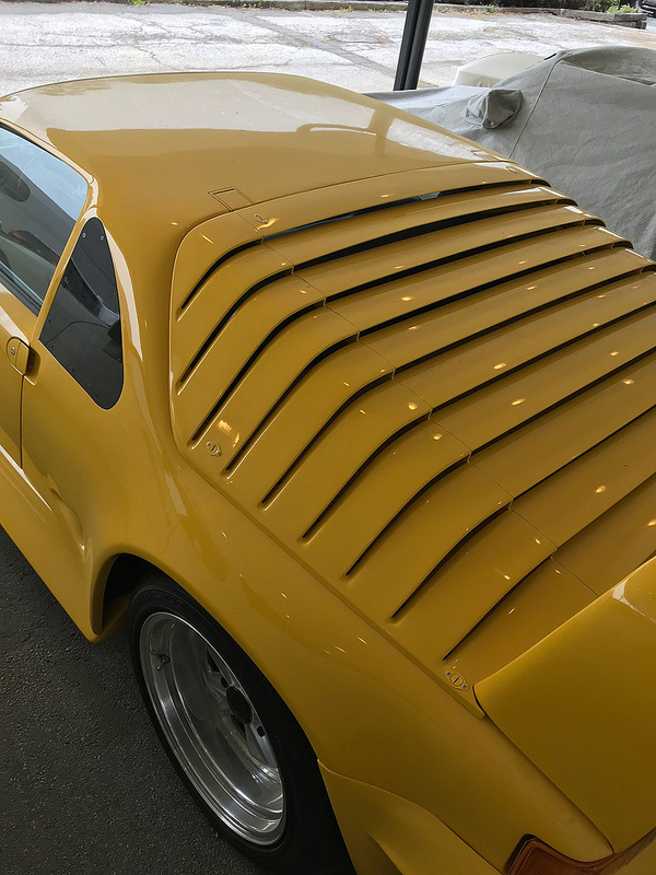 Well Jeff's car has a blower, six extra exhaust pipes, the oh so groovy interior treatment, the rear brake venting, the extra special go-cart steering wheel, the great panel fit, the hand hammered shift knob, the race-proven wing, the extra wide extra good seat belts and the Lord Pompidou dancing horse crests.