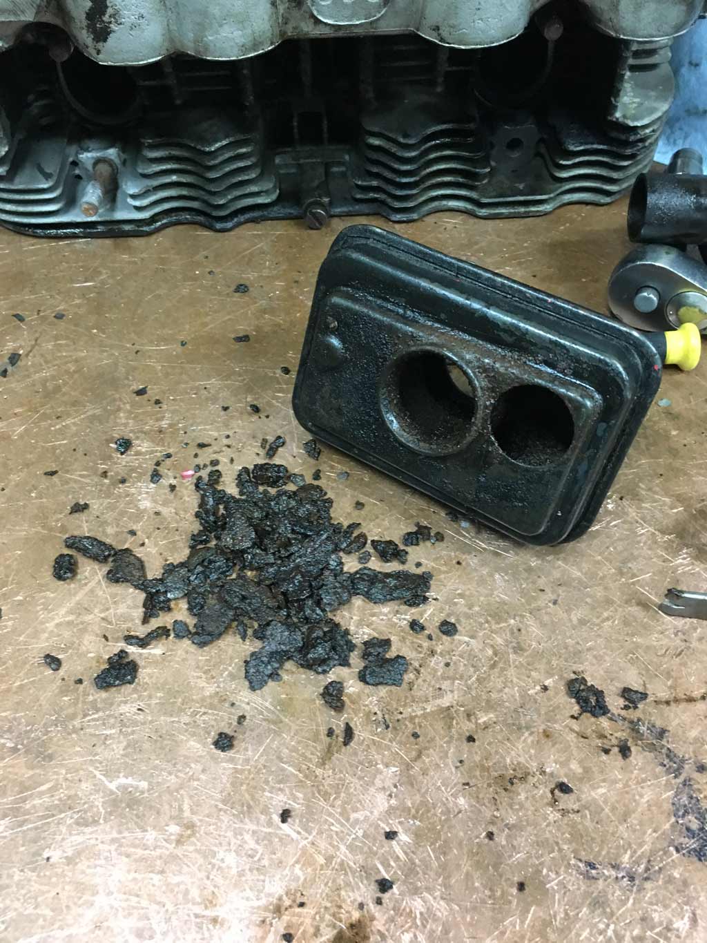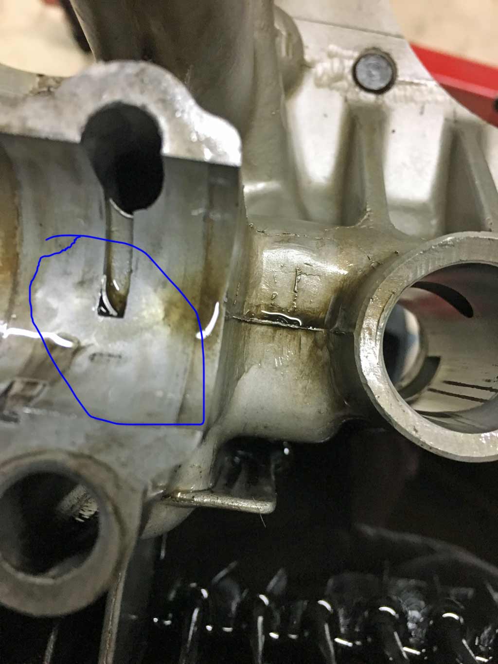 The source of the rust that was in the top of the oil filler has been found. I quickly put the oil filler & breather box aside when I was doing the initial teardown. I could see had some rust & oily gunk in there but I didn't dwell on it. If someone has one of these they would care to sell, there will be an ad going up in the classified section to replace this one. PM me if you have an extra you want to get rid of! What I can't believe is how much more rusty garbage is down in the sump. There is a staggering amount of rust and crap sitting on both sides of the case. I find it a little bit hard to believe that all of this came out of the breather box. There are other indications that this engine was not rebuilt properly. I found a metal shaving behind one of the cam bearings. luckily there was no way for this to get though the bearing oiling hole. But it does speak to the fact that the oil galleys probably were not cleaned properly before the rebuild. Of course the bearings are worn from all this garbage in the oil and the crank is lightly scored. Hopefully the crank can be cleaned up with either an aggressive polishing and/or maybe a 1st size under cut. I need to measure the journals today to see where they are at. ![]() And now let's move on to the truly egregious and incompetent stuff. Front crank seal bore has witness marks in it from someone threading a fastener into it. Maybe they had no idea how to pull a crank seal? This case was literally covered in oil. It also tended to leak oil even when it wasn't running. As it sat on a dolly in my garage all winter, I kept wiping up weeping oil from under it. Eventually, I put a carboard box under it to catch the oil. Now I know why. As far as I can tell there was little, if any sealant between the case halves! (IMG:style_emoticons/default/headbang.gif) Now keep in mind, someone plastered up the back side of the case with Epoxy / JB Weld type material over the cam plug and the oil galley plugs. After this find, I suspect they were trying to stop the oil leak that was actually coming from between the case halves from not having proper sealant on them. (IMG:style_emoticons/default/av-943.gif) There were also a number of other hits that the rebuilt was done on the cheap. 1) There were no vibration dampers on the six main bearing through bolts and/or any sealant under the washer heads to help bolt vibration and to help prevent leaks and weeping from these main case bolts. I'm always amused when a shade tree mechanic throws away parts. Surely they weren't serving any purpose and those stupid Germans were just putting extra parts in. (IMG:style_emoticons/default/screwy.gif) 2) Numerous gaskets that looked like they were reused. 3) Lots of screwdriver marks on sealing surfaces where somebody was prying surfaces apart that shouldn't be touched by tools. None of this appears to be un-fixable but it speaks to the horrors that you can find in an amateur engine rebuild by someone that clearly is just learning. |