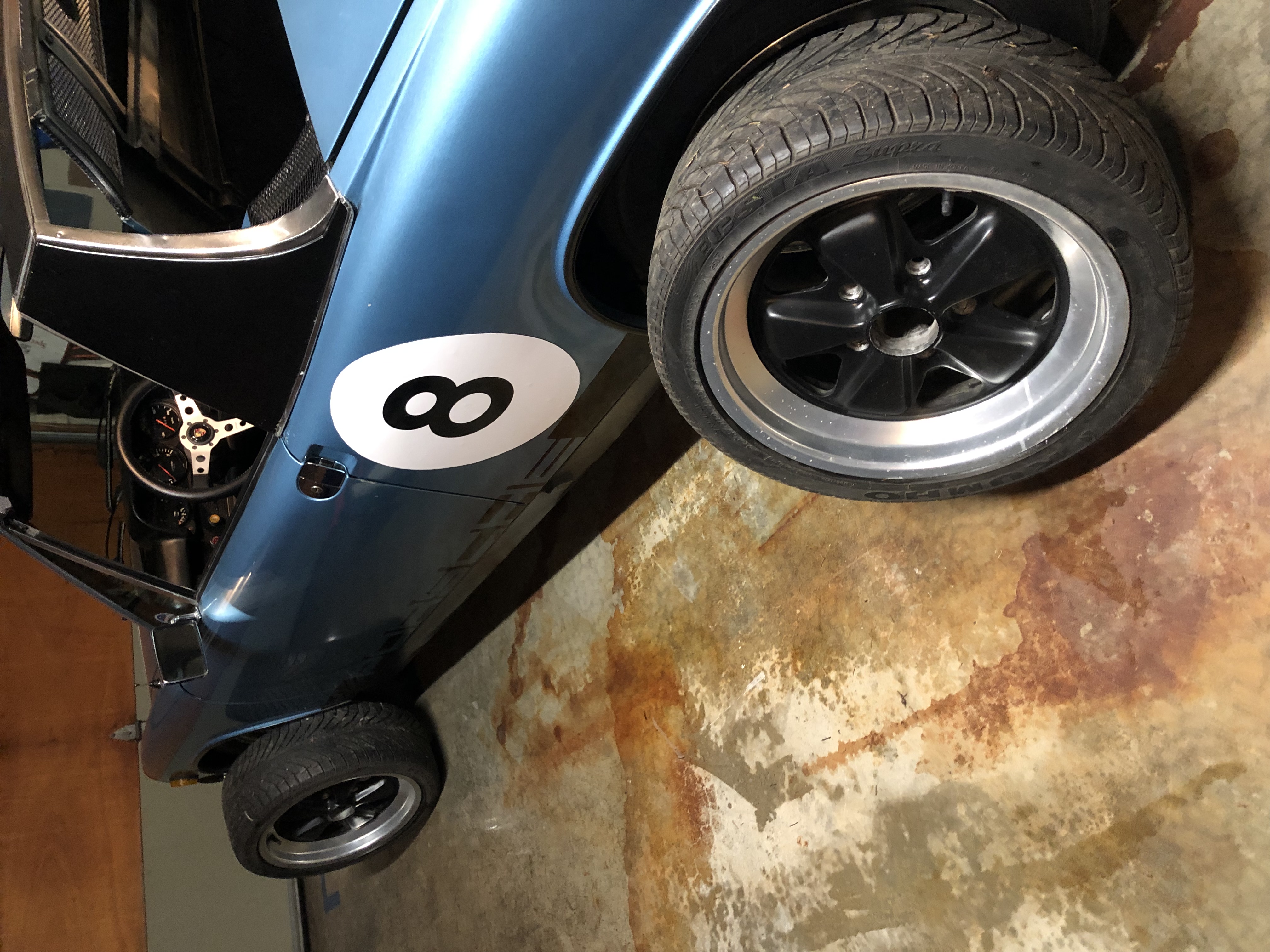 I'll chime in with 16x7 Fuchs (or Euromeister reps as in my case w/ R888Rs on them (IMG:style_emoticons/default/smile.gif) ) (IMG:http://www.914world.com/bbs2/uploads_offsite/live.staticflickr.com-18068-1559355692.1.jpg) (IMG:http://www.914world.com/bbs2/uploads_offsite/live.staticflickr.com-18068-1559355693.2.jpg) Looks Great!!! Where'd you source the Multi-color Side Script? I like it. |
