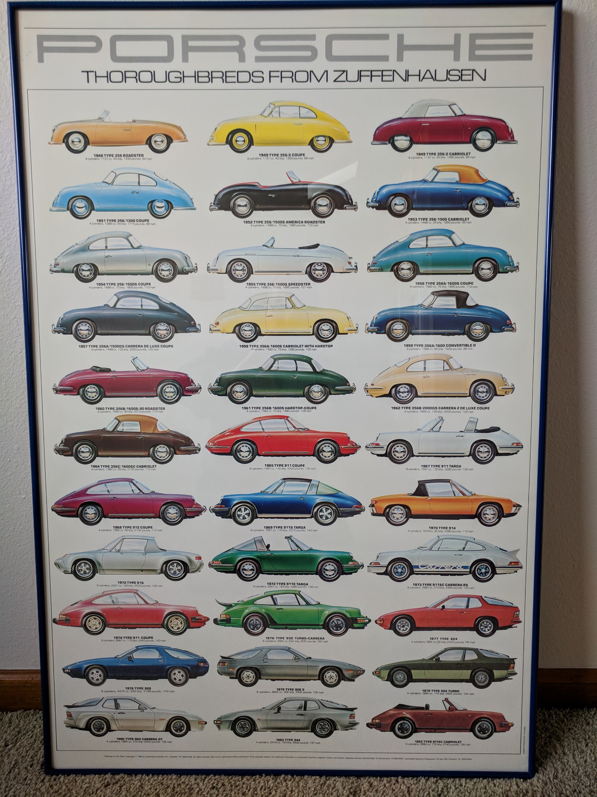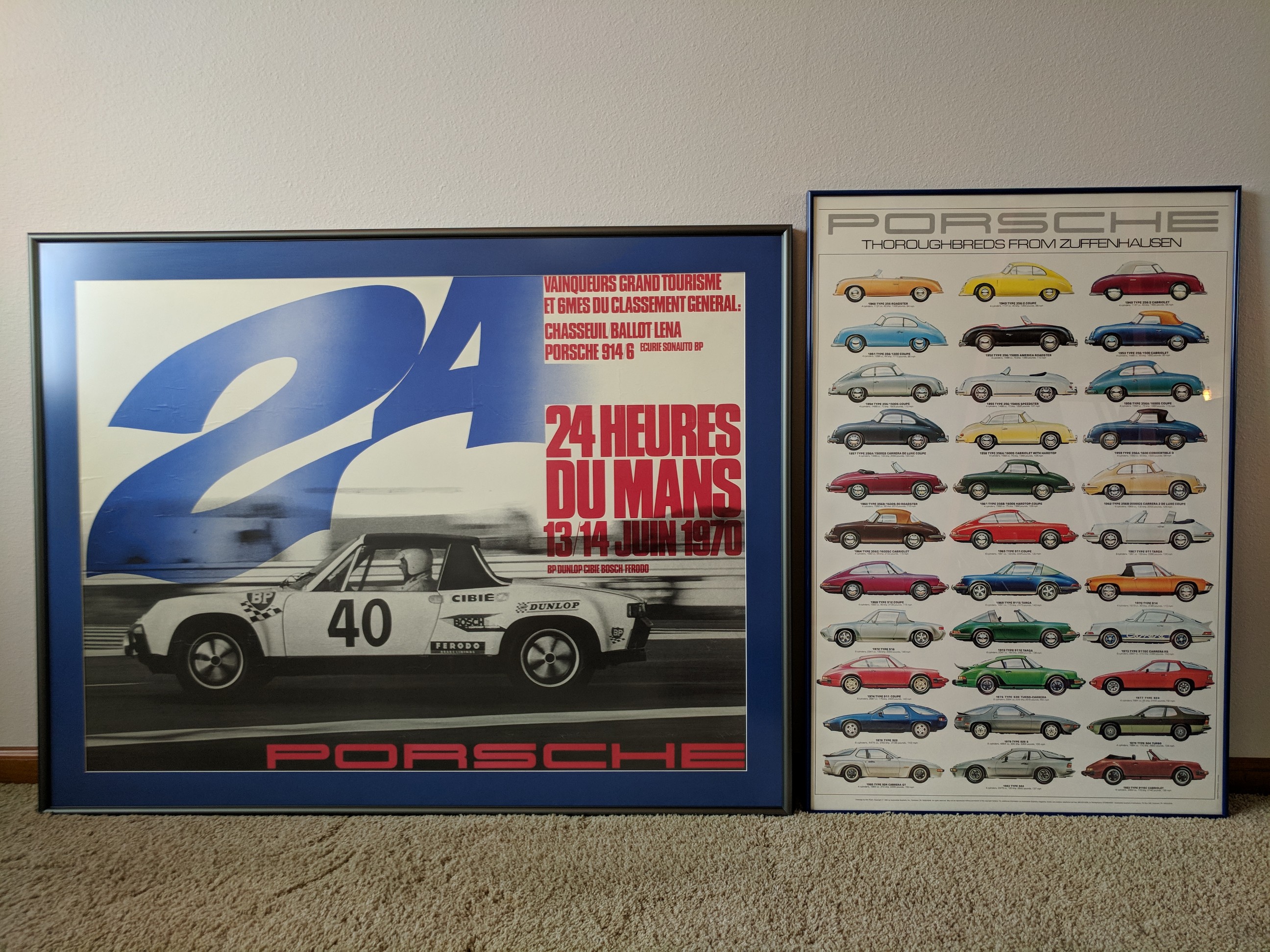 I ran out of wall space before I could even get them up.. ------------------------------------------------------------------------------- This is an UBER RARE Opportunity to purchase these.... BOTH posters are original and time period correct.. in other words not reprints..... Back in the day was 75.00 on the Zuffenhausen one just for the frame and mount work... not including the poster.. the 24 hours IS Original and old..a older guy had it for years.... rolled up...from the 70's..... the frame on that beast was 150.00.. and the specialized mounting... IT IS THE ORIGINAL BIG VERSION.. not the smaller one..(reproduction..) Sooo here we go 175.00 for the 24 hour...and again original and rare for that age and big one..original...Original..!! the Zuffenhausen ..95.00...and again 80's on that.. OR $250.00 for the pair...Use a C/C on paypal fine... these are wayyyyyyy too big to ship...BUT Will if need to.. and you please cover freight cost.. BUT they also can go with me to the Porsche model and Memorabilia show in LA next year too and sell for much more.... so there yah go...hope some one here scores!! Thanx Rx Attached thumbnail(s) |