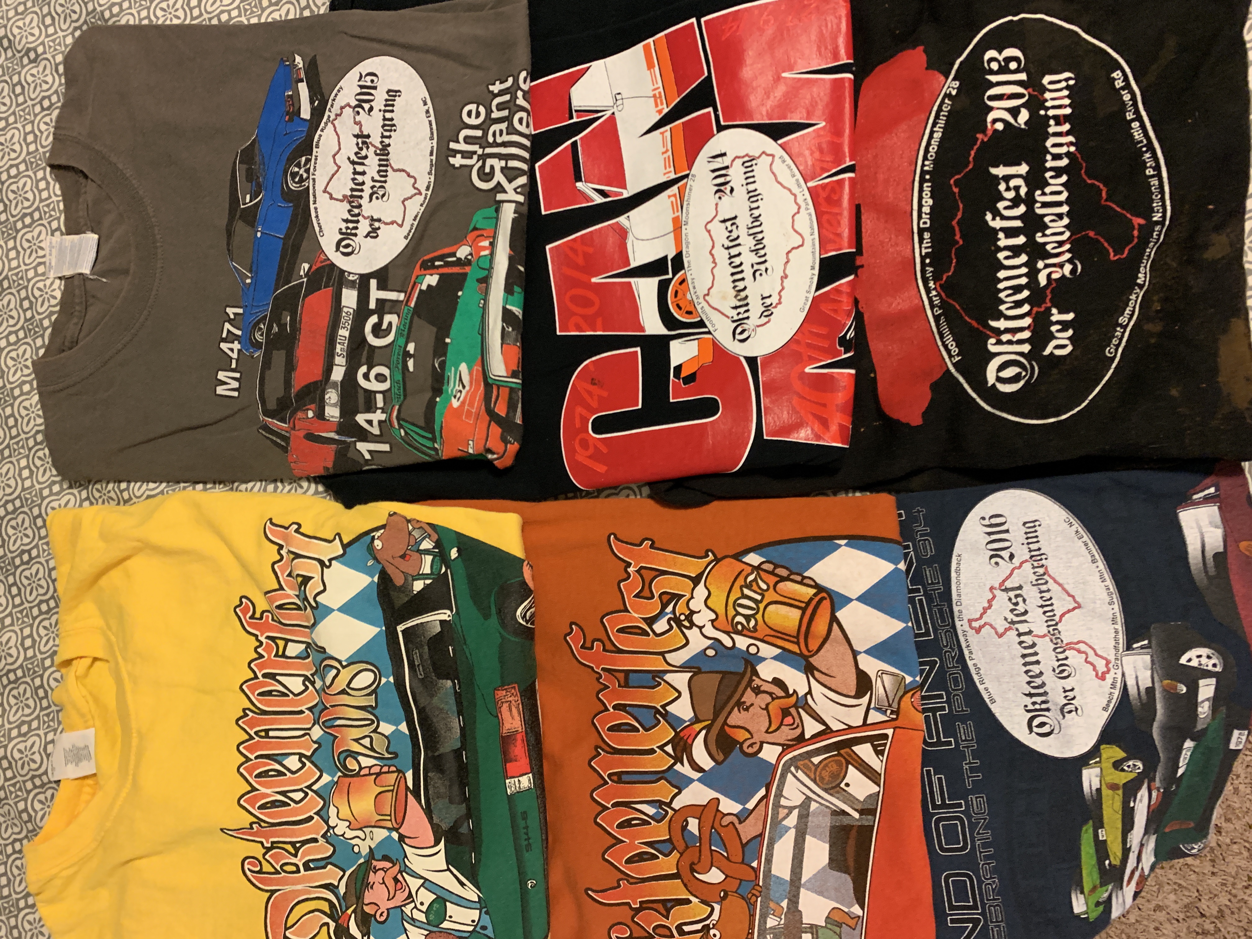Holy cow not packed yet! Which shirt to bring? How about all 6 previous Okteenerfest shirts! See ya’all tomorrow/Friday