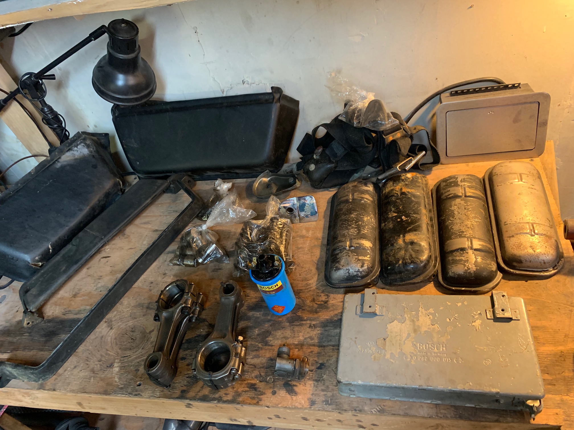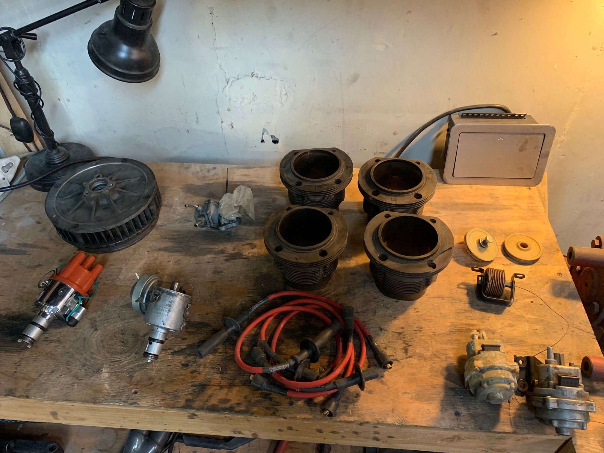 Spark plug wires 8mm ...... 60 *Sold* Original belt restraints ( non retractable )...... 50 *Sold* Rocker-arm hardware (Shaft/springs/nuts/bolts/washers)...... 50 *Sold* Outside door handle ..... 50 *Sold* Speaker cover and speaker ( Driver and Passenger side) ...... 100 Heat exchanger elbow .... 50 Heater control valve flap box ....... 50 Clutch release bearing and fork ...... 150 70-72 complete linkage 80 *Sold* Sideshift linkage rod firewall to transmission...... 150 *Sold* Heater blower fan assembly..... 70 70-72 engine motor mount cross bar...... 50 Foot well foam insert ....... 35 Arm rest pocket and lid cover....... 50 Valve cover pair ........ 60 Shifter assembly ...... 100 *Sold* Shift rod coupler 73-76..... 60 w/bolt/screw.....80 *Sold* Motor support bracket 70-72........ 50 Motor mounts...... pair 40 Clutch cable deflection roller and reverse bracket.......40 *Sold* 2.0l cylinders 4 ............ 180 *Sold* Thermostat...... 80 1.7l ecu Works ....... 80 1.7 rods .... 40 Bosch 1.7distributor with vacuum advance..... 100 Hydraulic lifters 1.7 ......80 Vacuum pressure regulator ...... 80 Porsche valve springs full set 90110590150 ...... 140 Bosch starter .......... 140 Bosch 12volt coil ......50 Bosch 009 chrome .........90 Attached thumbnail(s) |