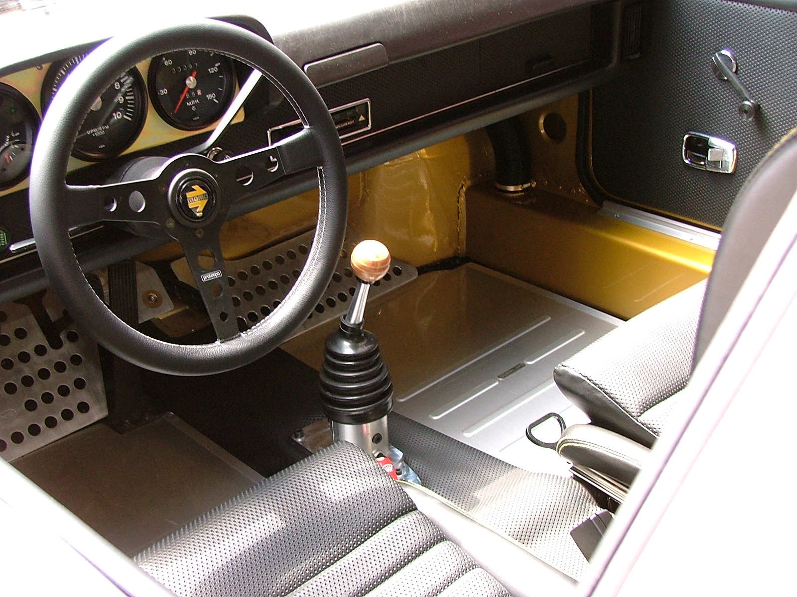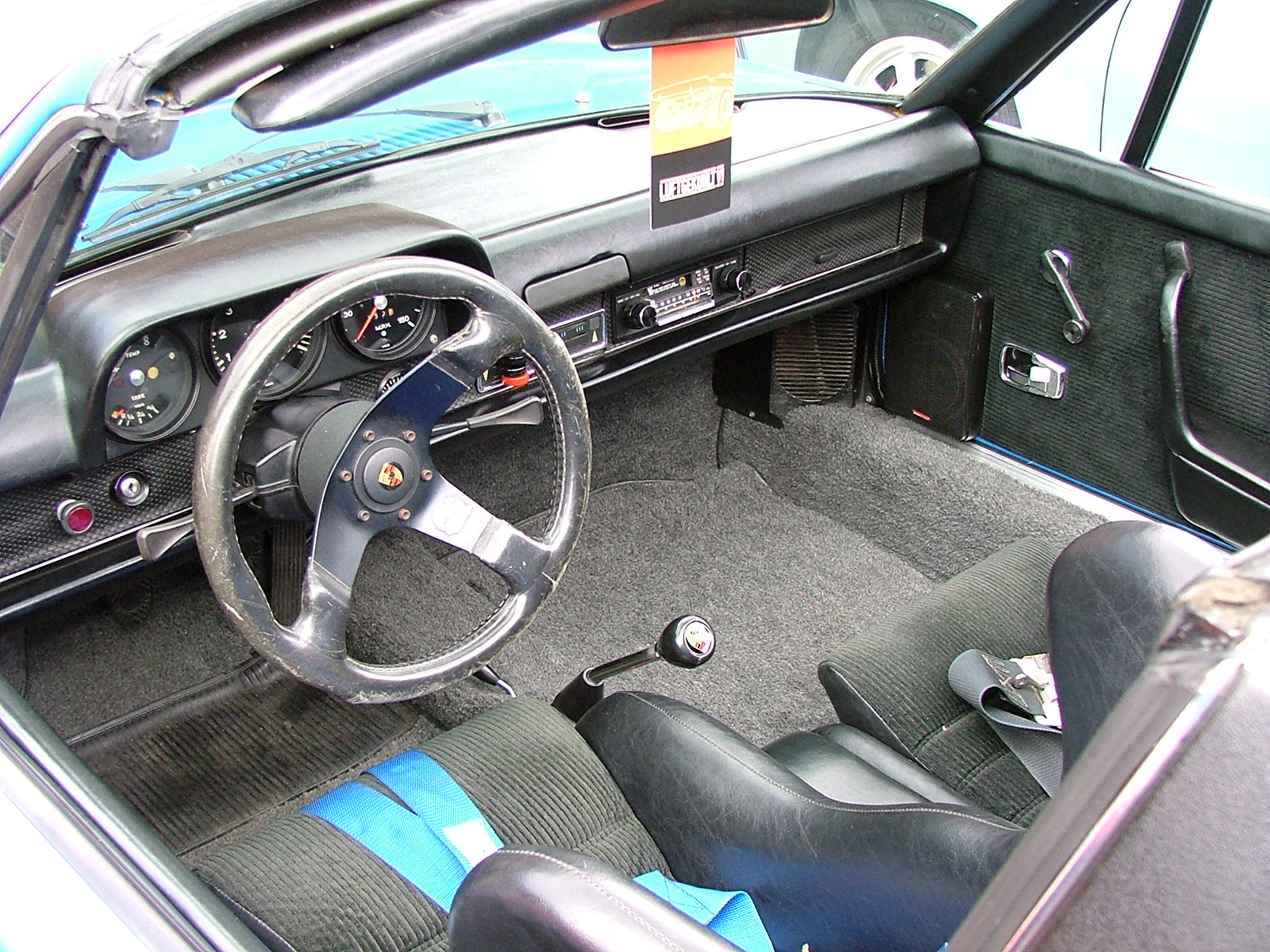 Thanks Marty! It was not my choice but I live with it as the flares, paint, and mirrors date back to about 1995 and I can't think of an easy way to change it. Imron paint holding up well! I did have a guy stop by and he really wanted to buy it. (IMG:style_emoticons/default/driving.gif) (IMG:style_emoticons/default/white914.jpg) Your car looked great! 1990s paint, even here in CA, was really good stuff—my old catalyzed acrylic enamel job from ~1991 was holding up beautifully in terms of the paint, but the prep under it just wasn't straight enough. Ah well. About those mirrors: Have you thought about going 1974 RSR style, as seen on the driver's door of this car? You won't see as much (though I ran this actual car, and found the mirror useful "enough"), but they might cover up the mounts for the 1980s flag mirrors, and they would look period correct... Attached thumbnail(s) Attached image(s)