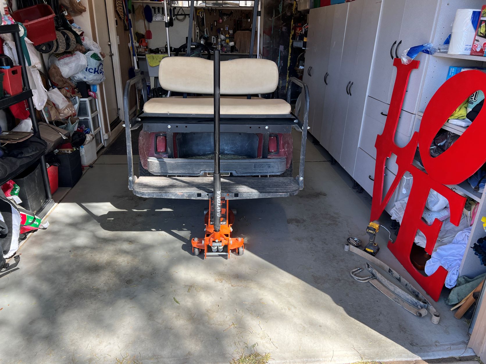 Well...Sue our daughter's trainer is 78 and struggles getting around the barn while training. The parents got together and bought her a used golf cart. (IMG:style_emoticons/default/driving-girl.gif) The HS boys that feed on Sundays load the golf cart up with too much hay and managed to break a leaf spring. So, I got to replace the leaf springs...