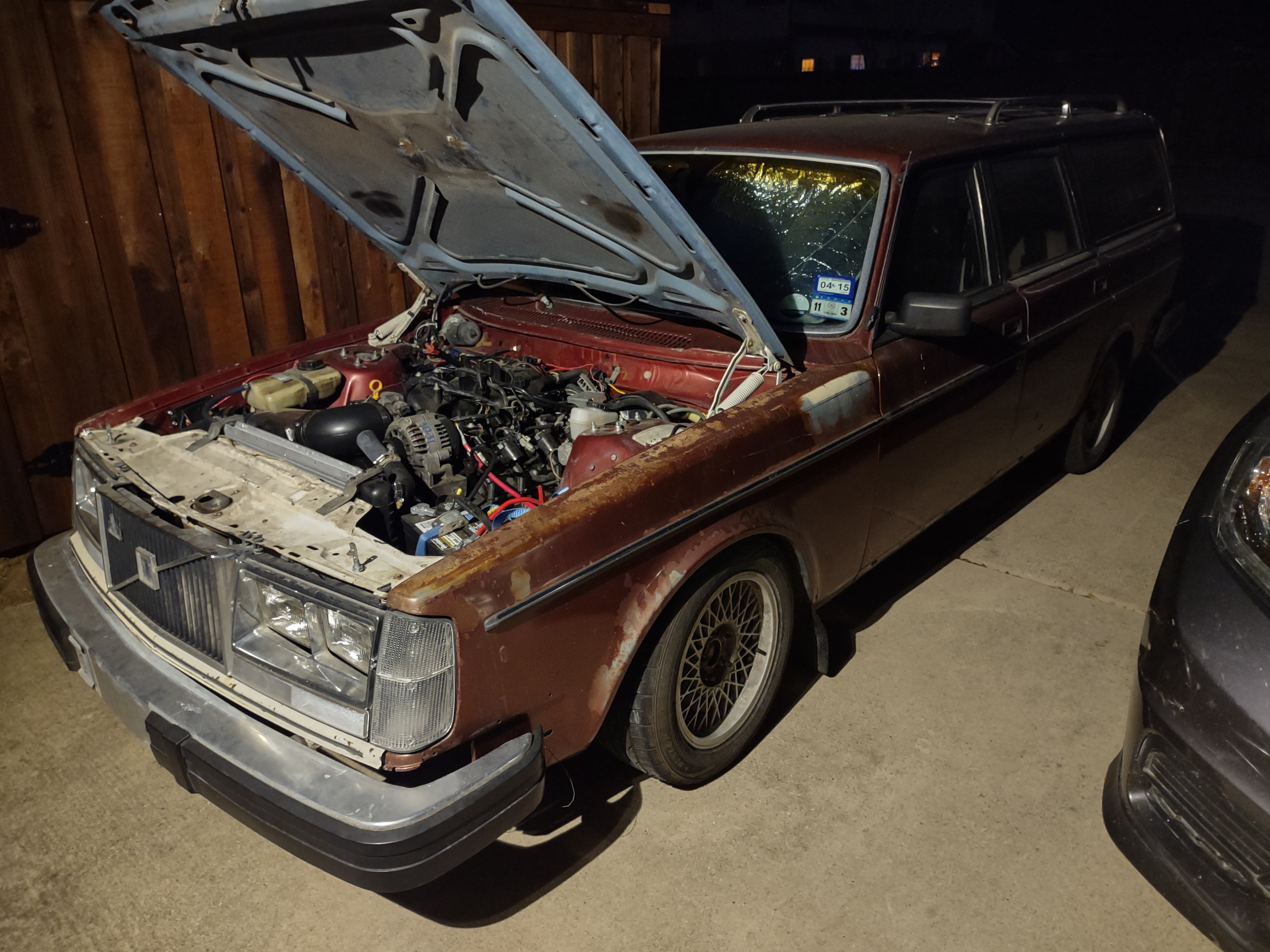 Yesterday I was helping out my neighbor and his son with their car project. It is a 1986 Volvo 240DL Wagon that had an 6.0L LS engine and transmission swap from a Silverado pickup. It was done by the previous owners as a Lemons car build, but was never raced. It has really nice suspension upgrades as well.