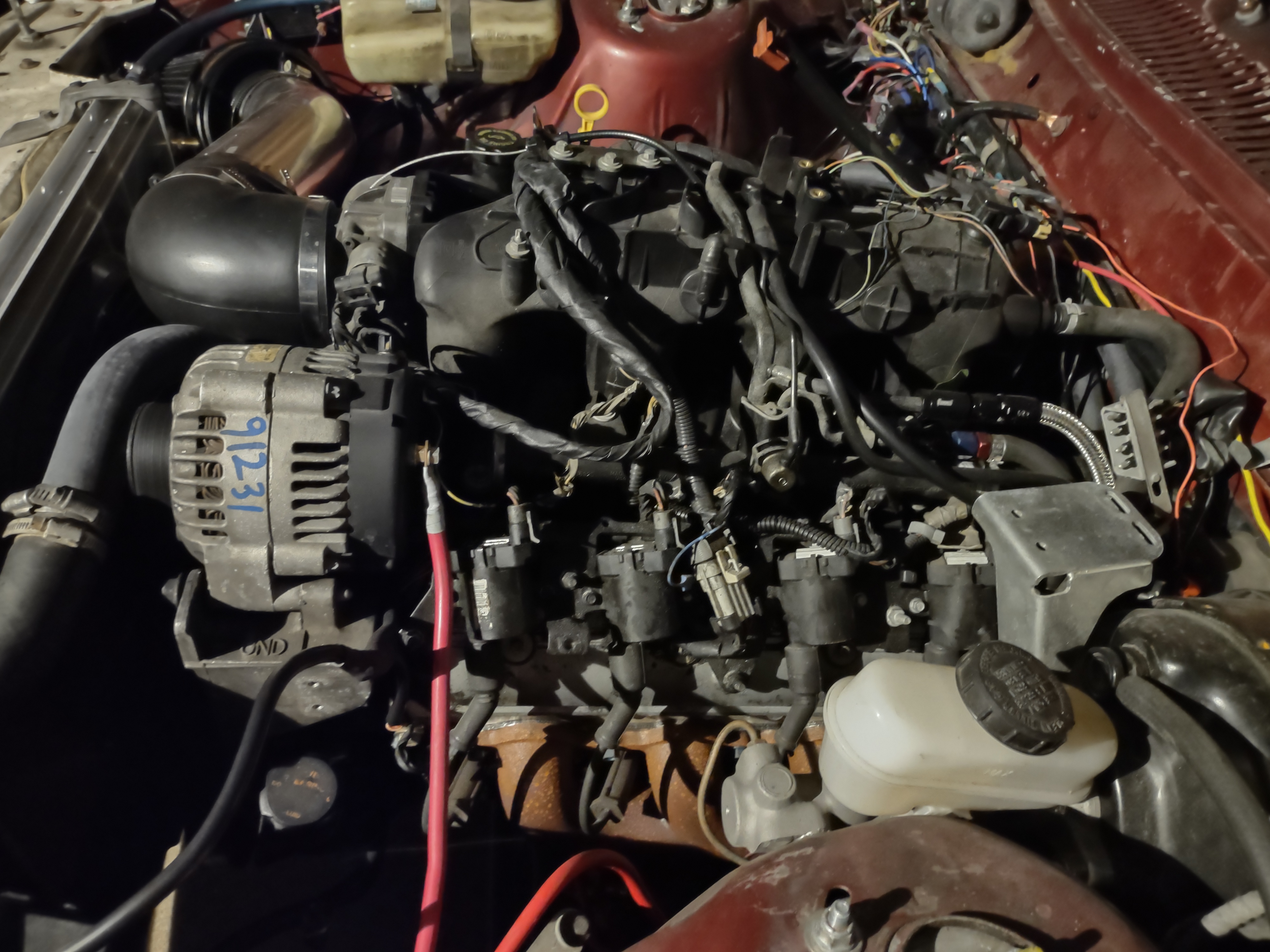 We have dubbed the car "The Volvolet." I helped them replace the cable driven speedometer with an electronic speedo driven from the ECU. The new cluster also came with a tachometer, so I wired that to the ECU as well. I used a 240 ohm pullup resistor to get the tack to trigger off the ECU input. I originally got involved with it because it was losing power and hard to start. Found the fuel pressure was low, and traced it back to the hose between the in tank pump and the sender body. The hose was split and bleeding fuel pressure back into the tank. What made it such a bitch to find was that there was no external fuel leak. Once we got that fixed, the car was much happier and way more powerful. Our next task on it is to install the coolant temp sensor from the Volvo into the chevy coolant passages in the intake so the coolant temp gauge will work. I actually considered inviting them to Okteenerfest just to see this beast tear up the tail of the dragon. |