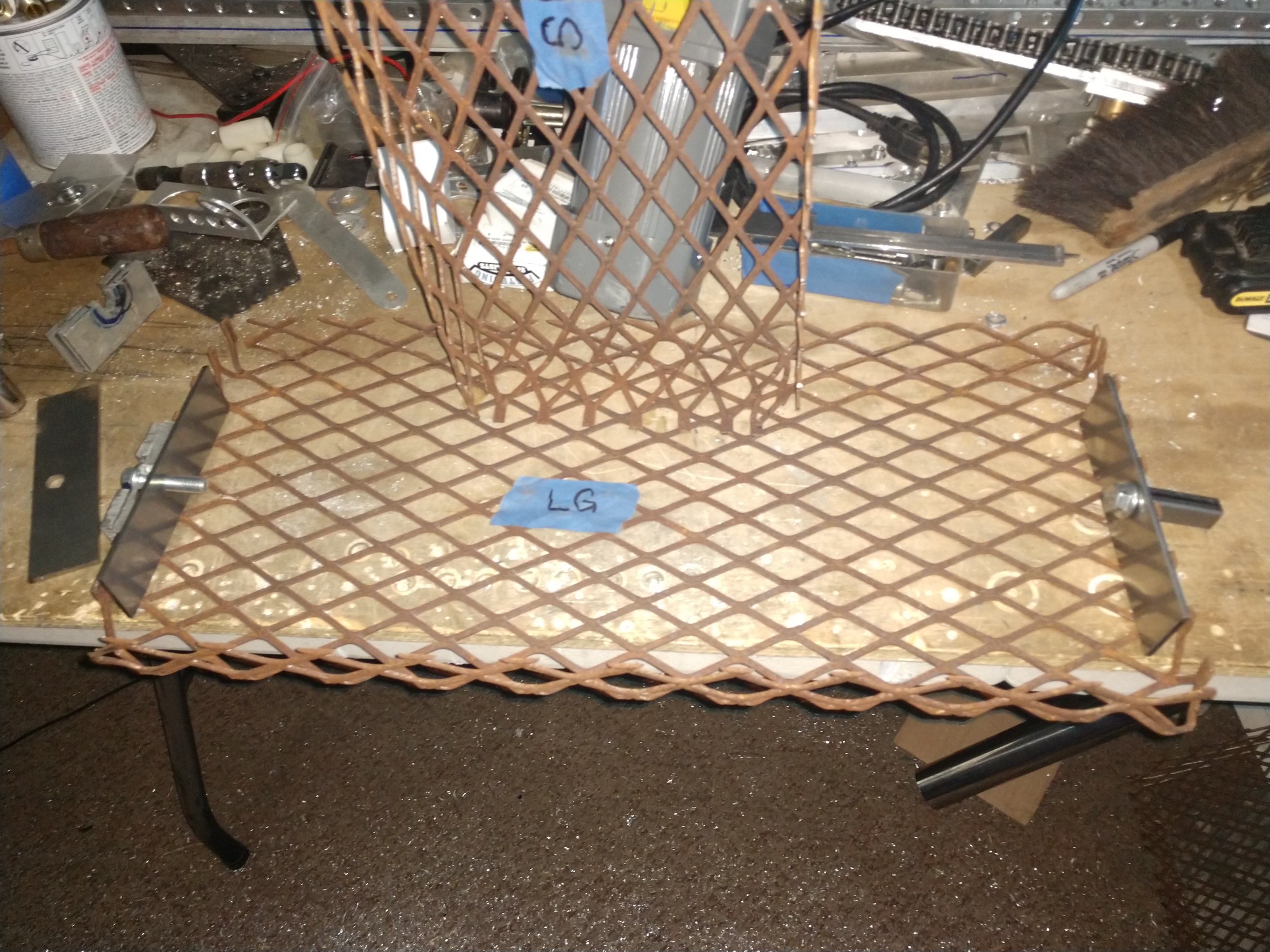 I'm back on the Dual Basket Brisket Rotisserie. Actually working on the baskets. At this point I have gathered the parts for the baskets. In the picture from left to the right. The pivot, aluminum parts get screwed to the smoker box. The bolt and steel plate welded to the basket. In the middle the basket top. On the right is the drive end, the 1/2" square tubing fits into 1/2" square drive adapter. If I get all the dimensions correct I'll be able to slip the square drive in the hole and drop the pivot into place.