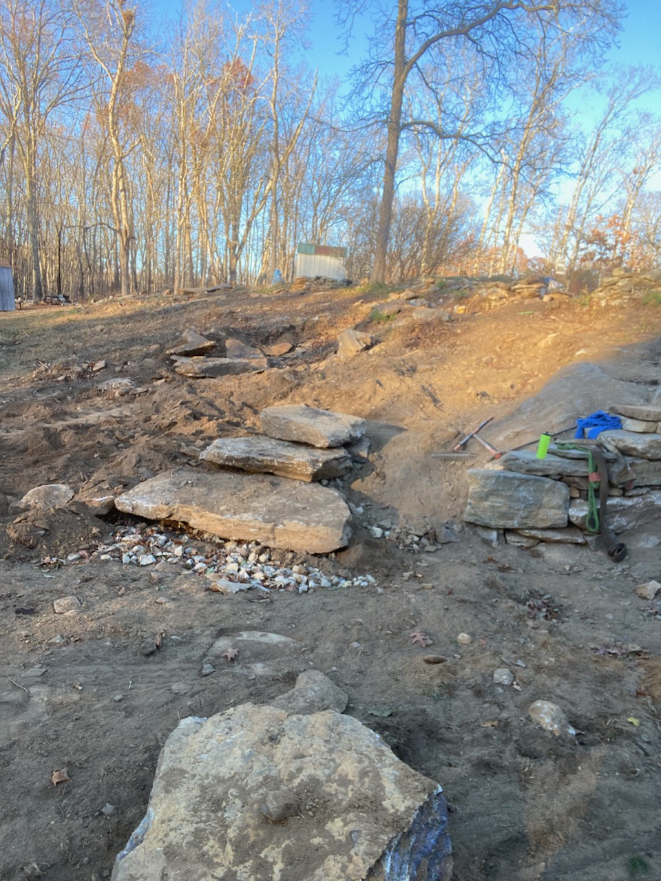 That bottom stone is about 6-1/2 ft on the long edge for scale. Pushed the limits of my 8 ton backhoe. (IMG:style_emoticons/default/laugh.gif) |