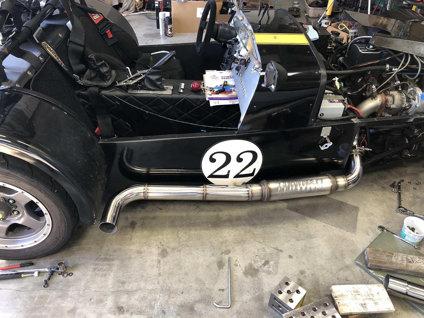 A friend has a Lotus 7 replica and asked that I install a bigger turbo and build a new exhaust. So that's what I did!