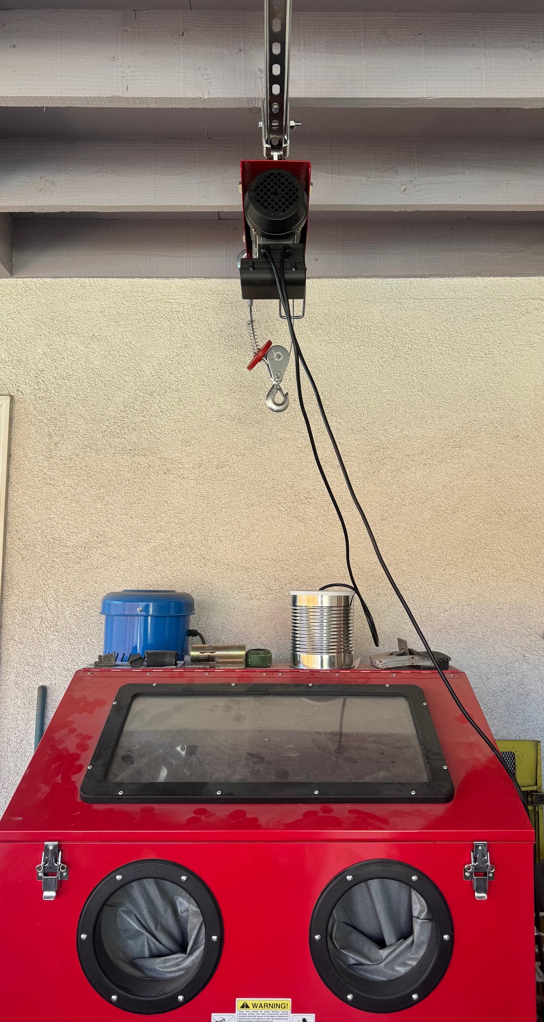 Not 914 but kind of is. Set up a top loading blasting cabinet to work on the car, but without thinking I guess. I can't lift what I used to, even if I could it then needs to drop back down on to the grate inside. It is a big cabinet. (IMG:style_emoticons/default/sad.gif)