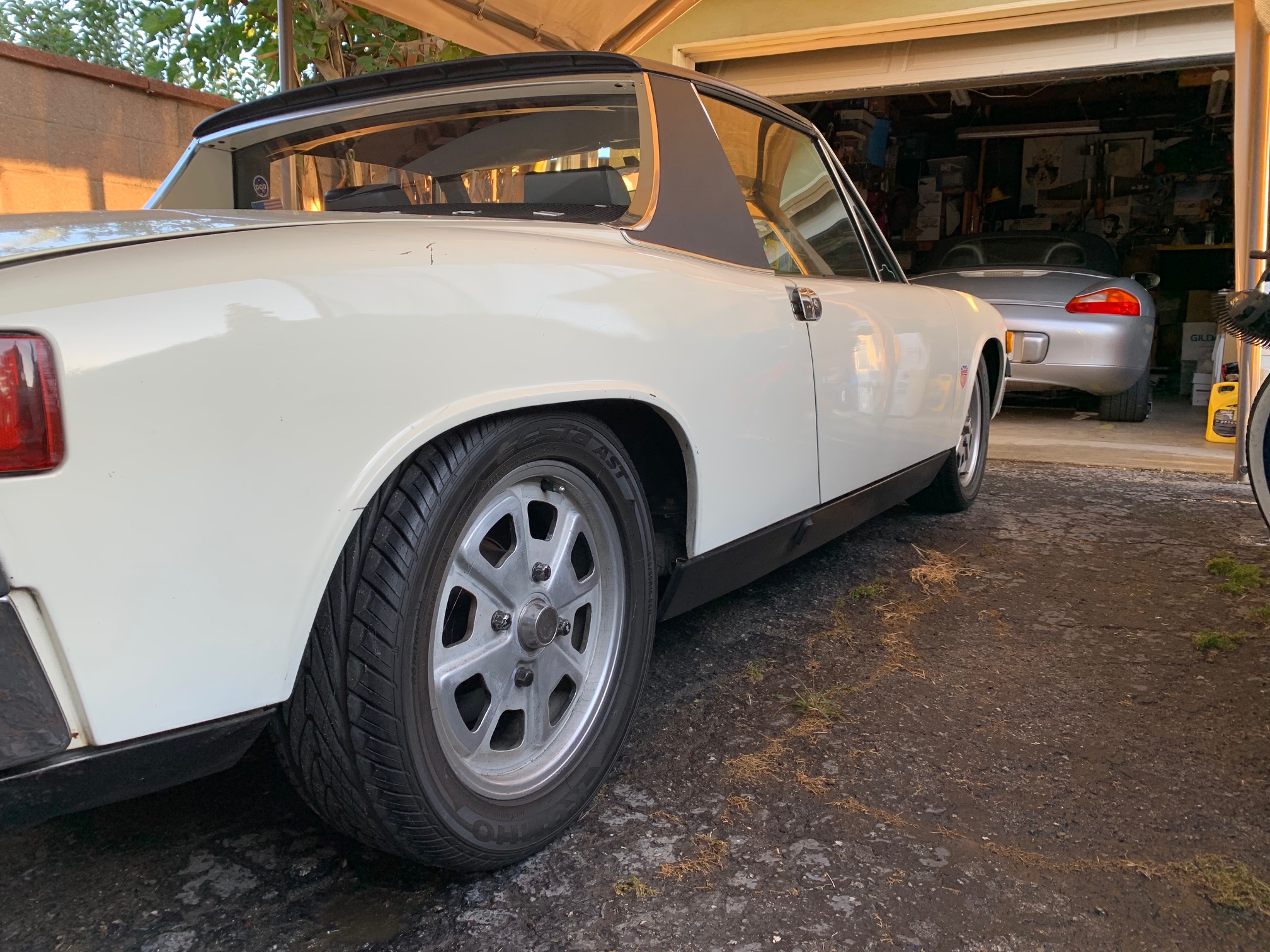 I moved the 914 out of the garage so I could work ALL EFFING DAY on my gas pedal/linkage issues on the newly arrived 912. Bruce Stone saved the day for me too!!!