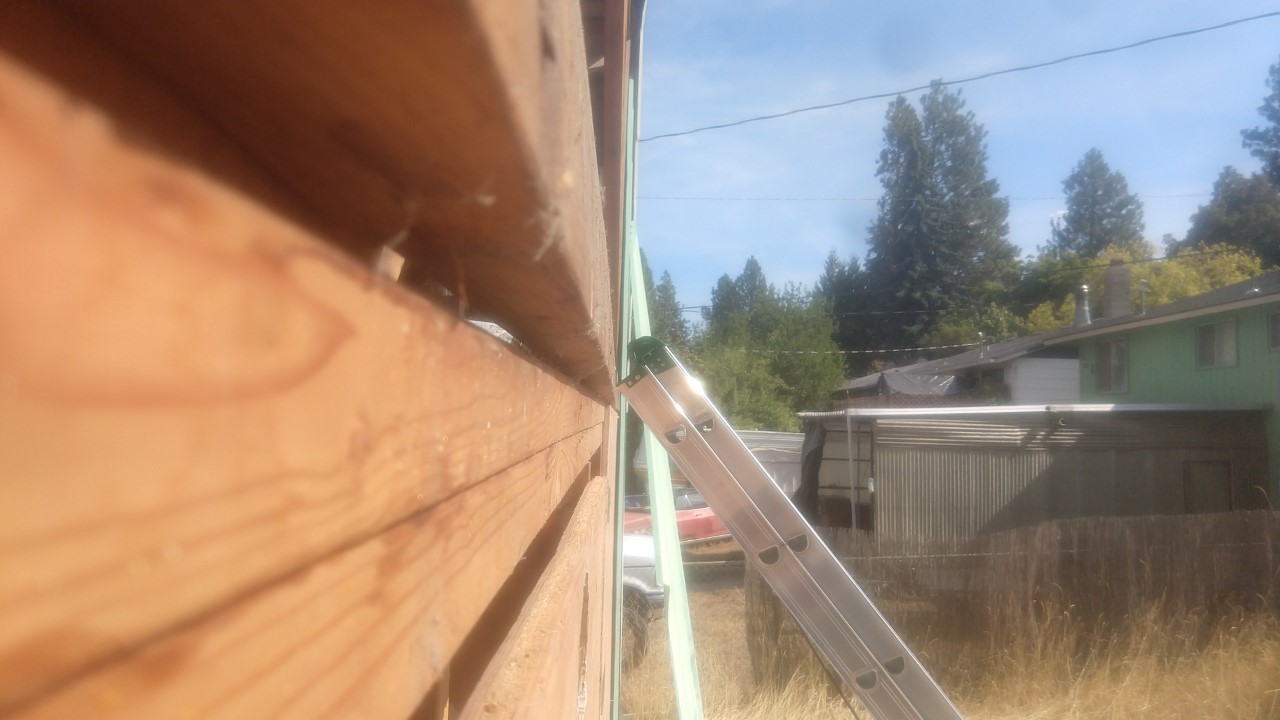 Trying to get my shop in order. The hacks who built this in the 70's decided to put the gable end truss hanging way off the edge of the wall. Sheathing the whole thing to keep the bugs and mice out too. Man door is gonna have to wait till spring. Gonna add 6 inches of exterior insulation to this structure too eventually.
