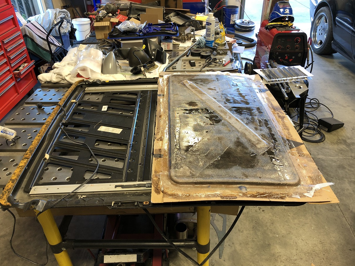 Made and started fitting the RacerBenz's carbon sunroof panel.