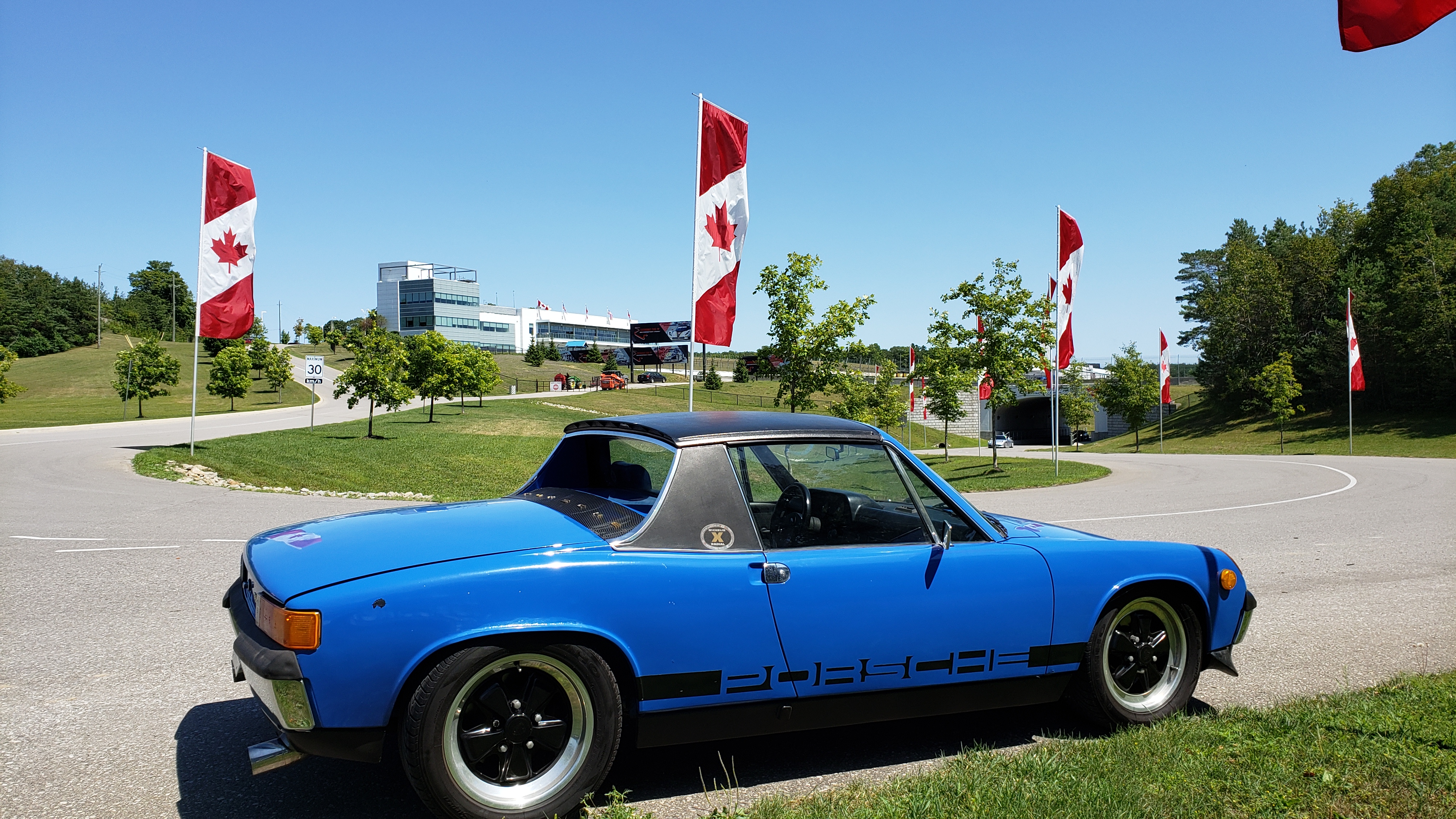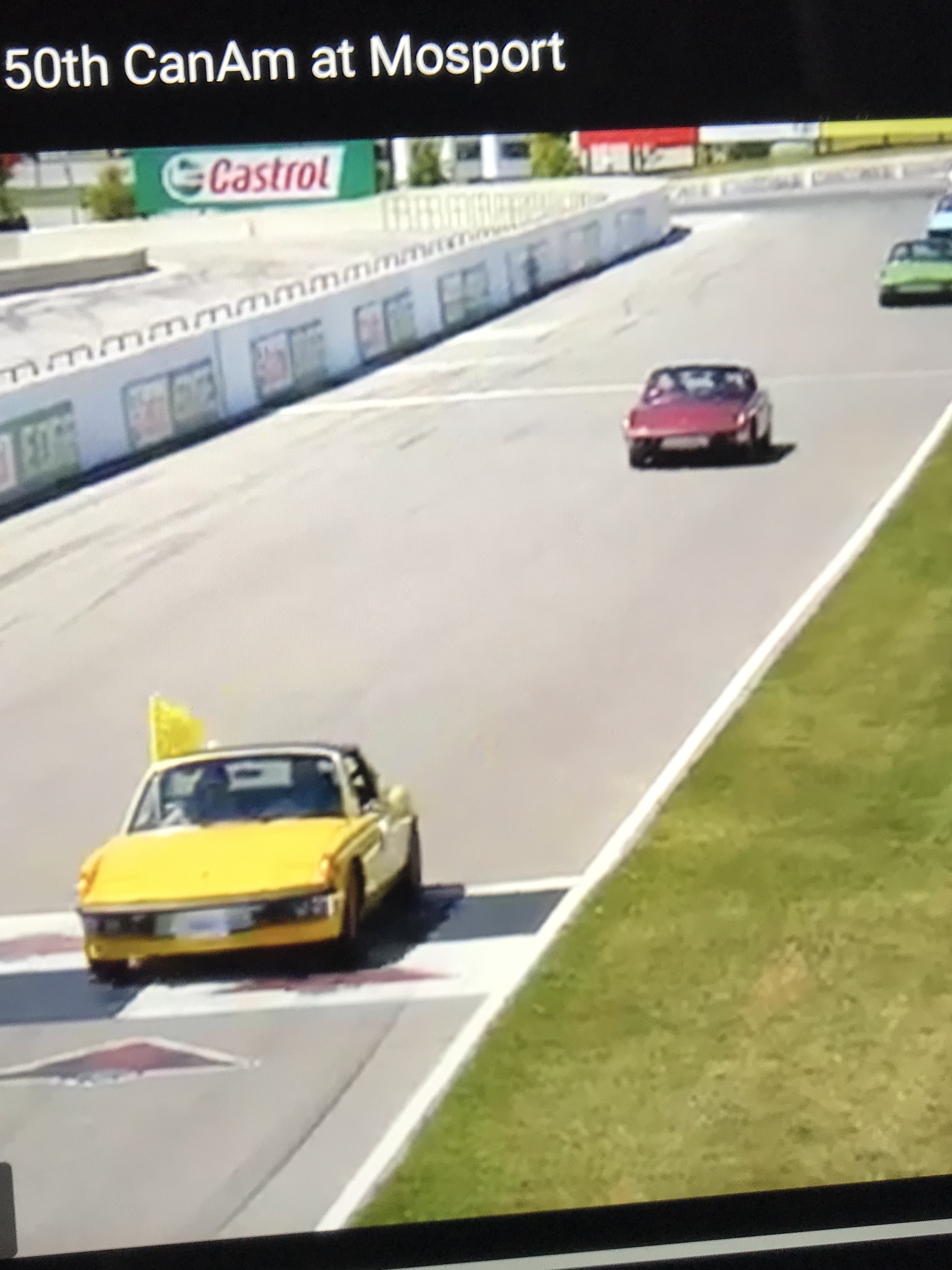The start of our parade laps on the historic Mosport track to commemorate the 50th anniversary of the Porsche 914. and things start to fall off the car almost immediately...namely, a camera.