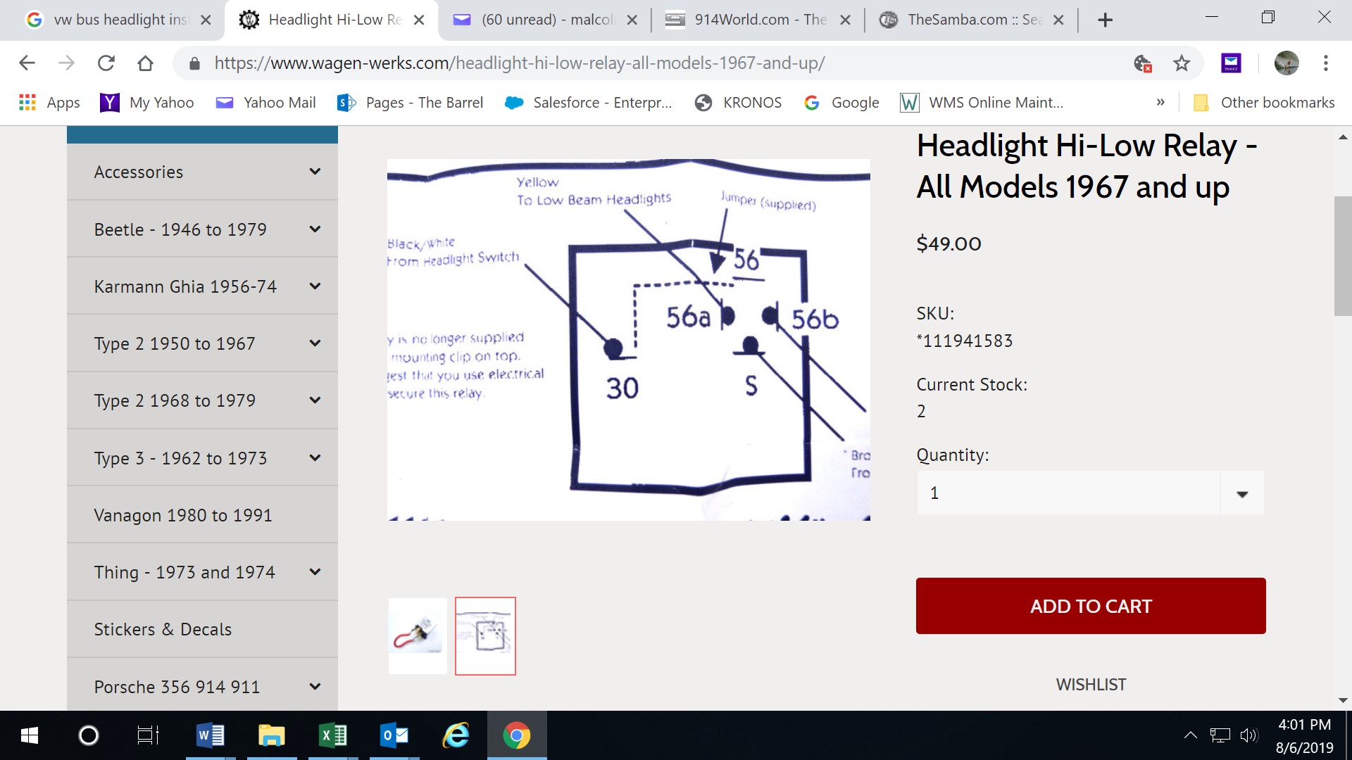 But I bought a new High Beam Relay or Headlight relay, whatever it is called. It has an extra blade (30 IIRC). On the thread that I can't find, it was noted that the extra post has to be jumped to one of the 4 others. Truthfully, that is what I can't remember. So does it jump to 56a, S, 56b or 56? And if anyone can find the thread, please add it here. Thanks, Clark |