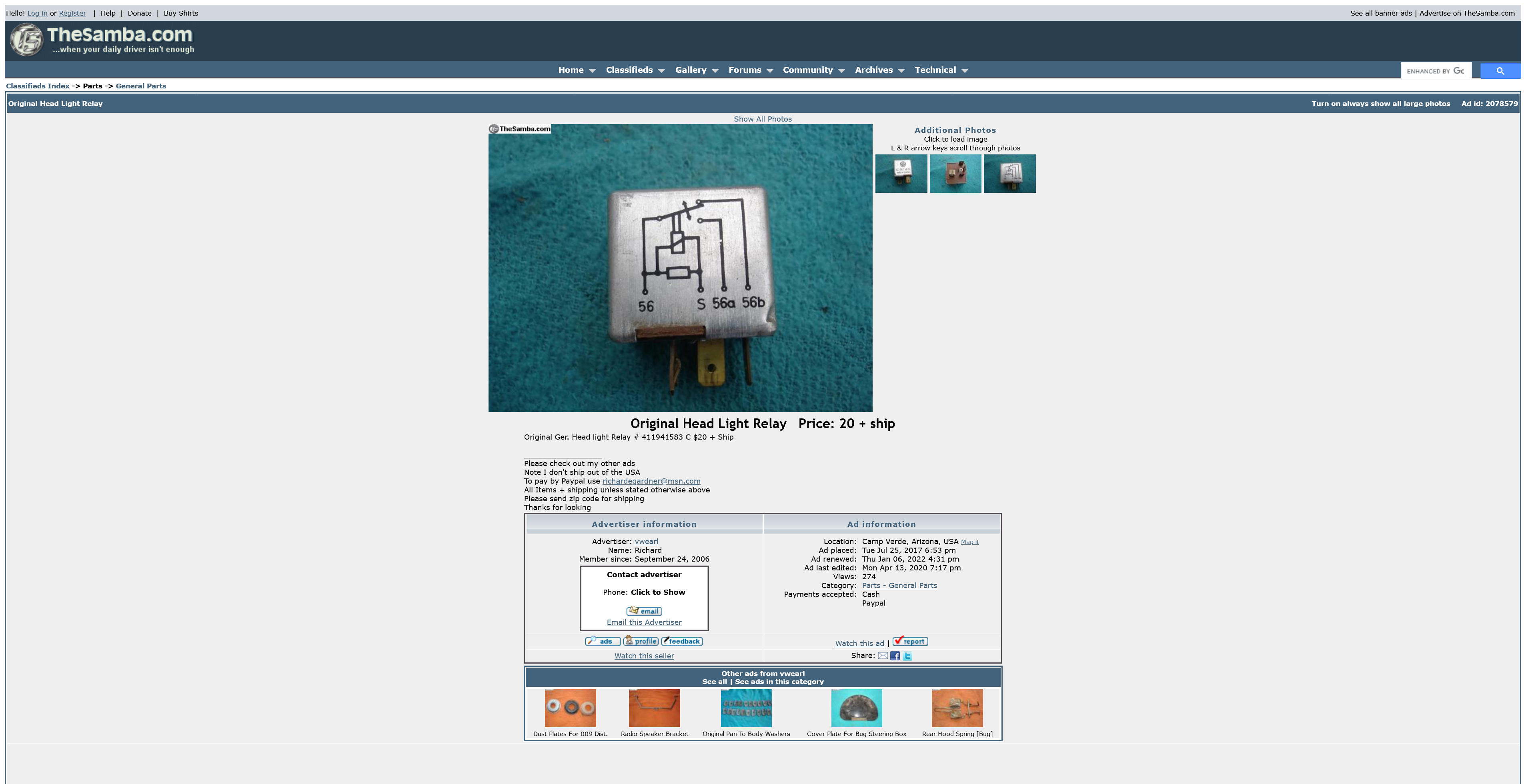 Why mess with all that, get a used one for $20. New ones are available if you want to pay the price, they RARELY fail. Based on personal experience (245,000 miles, ~51 years), RARELY = 2 failures of the original relay in that time (first in 2004, and again two weeks ago). Still need to do the post-mortem. I'll try to post pictures if I find anything meaningful. And my apologies for the misspelling in the title of the 2004 post... (IMG:style_emoticons/default/biggrin.gif) |