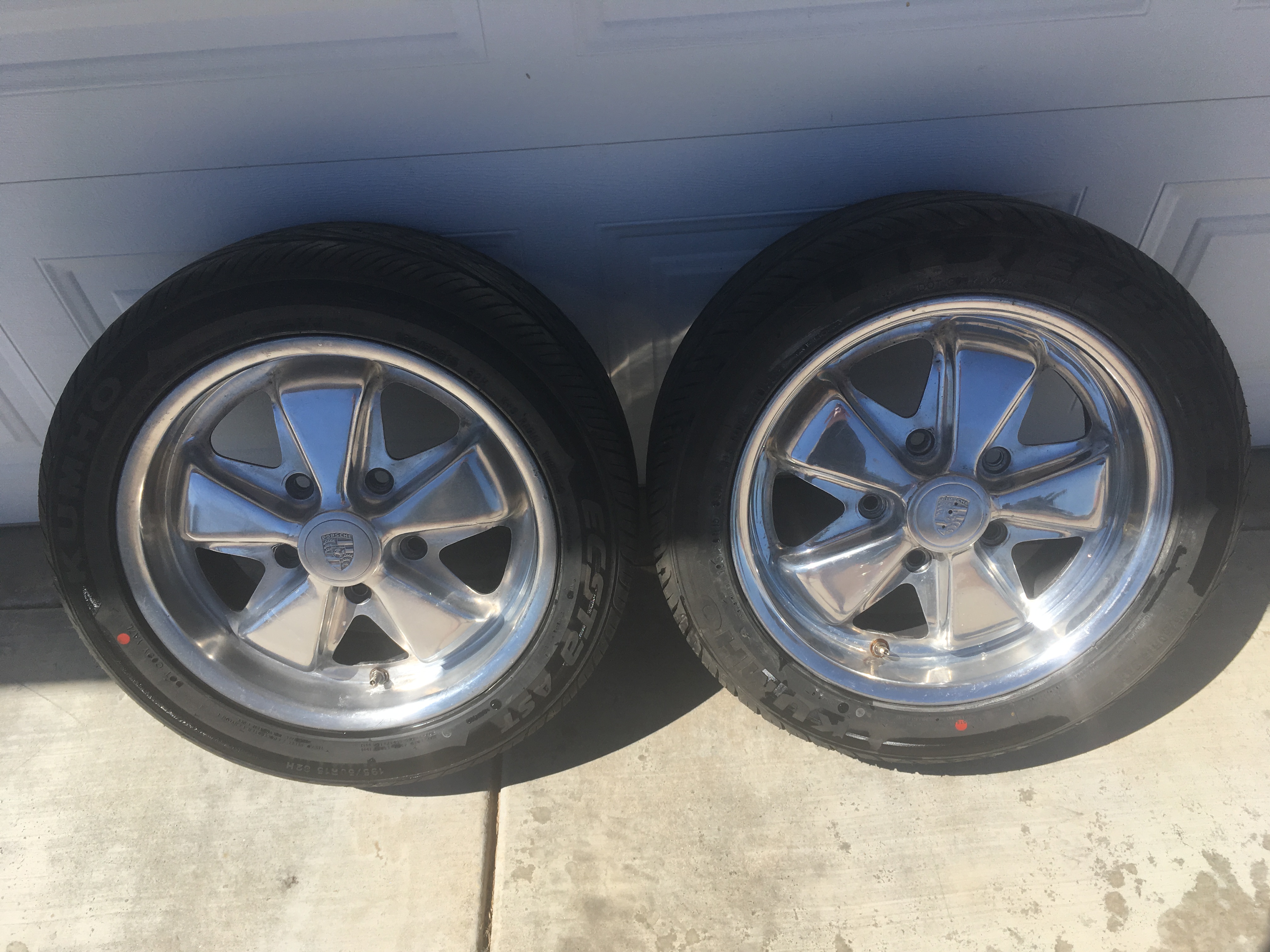 I have a pair of deep 6 15" Fuchs with useable tires for sale. The part # on them is 901.361.012.06 and both wheels have a date stamp of 1/70. They look very nice but are not perfect. I ran them on my car for a couple years on the front and had no issues. I really do not know what they are worth but will start at $1000 OBO.
