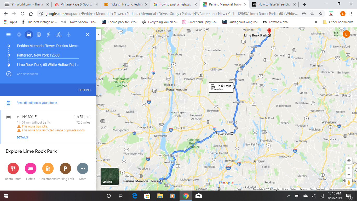 About the event - http://limerock.com/historicfestivalparade There will be 2 meeting places on route - For people coming from NJ/PA - About 8 a.m., Perkins Lookout on Bear Mountain, which is right off Route 6 http://nhlr.org/lookouts/us/ny/perkins-memorial-lookout/ For cars coming from NYC, Long Island, NY State - About 9;15 am. The Patterson Library parking lot in Patterson, NY. https://www.google.com/maps/place/Patterson...3;4d-73.6023427 From there, we'll head to Lime Rock along some excellent roads up to Lime Rock, which should take about 75 minutes. Buy your race day flex tickets for SATURDAY - https://tickets.limerock.com/orderticketsar...1598.1564448428 Buy your Porsche Corral Parking here - https://tickets.limerock.com/orderticketsar...1598.1564448428 I'll post a complete route map later today, but this should be great time. Don't forget lawn chairs, cooler, all that crap. |