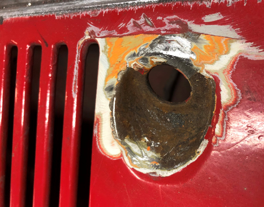 The bottom was not saveable, deep rust pitting. ![]() Made a high tech special tool. ![]() Test fitting the part. ![]() It turned out quite nice. The other side is probably better.. very wrong! The panel around the hole had been dented with an hammer for the bondo. (unfortenatly I was to upset to remember to take a photo of this). ![]() New tool to make the fillet on top. ![]() Had to make this panel in two parts. ![]() Finished part pre welding. ![]() Finished repair. |