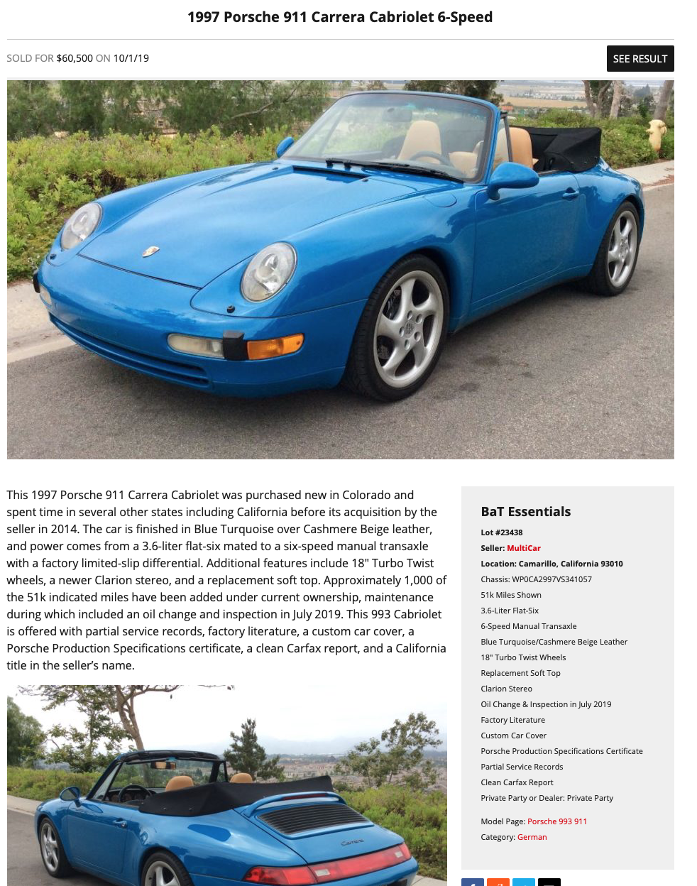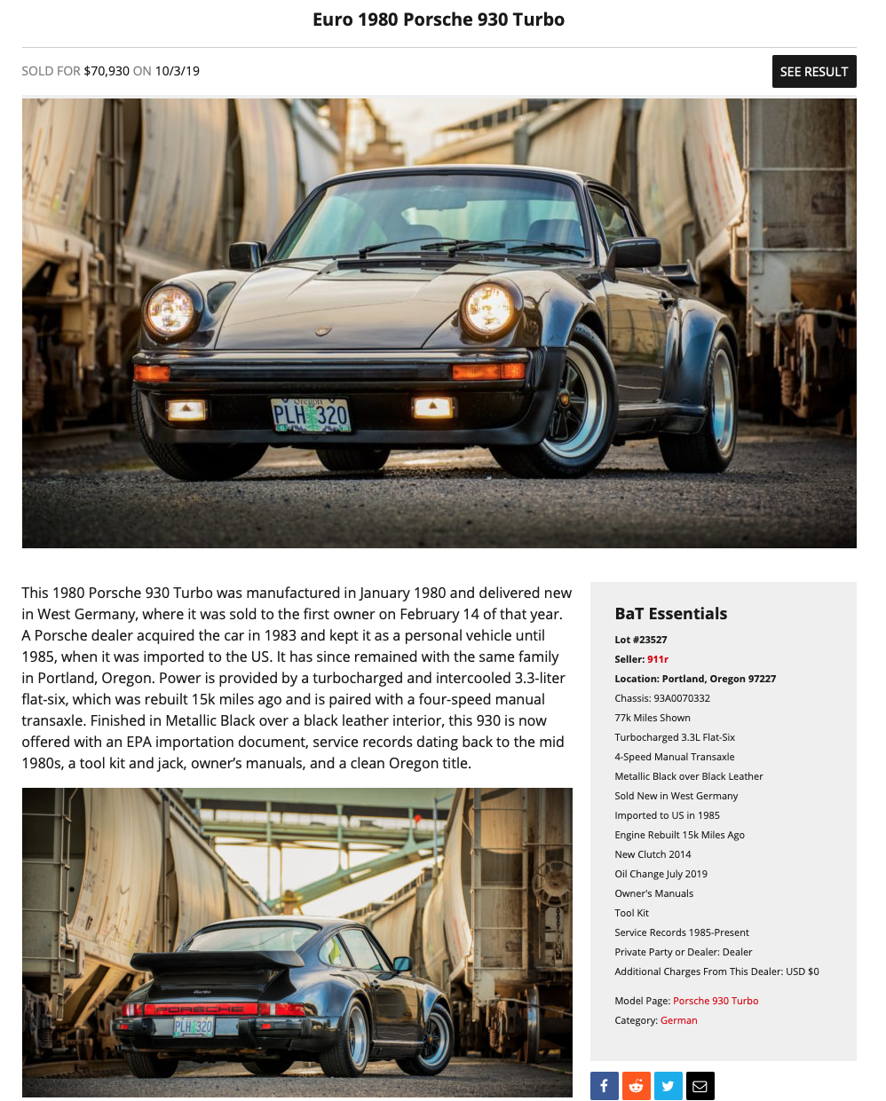 Hello All, that is indeed my -6 on BAT. I have learned a ton on this very site, bought parts from you very folks, and leaned on expertise from any source it appeared. The great thing about that car is that it wasn't some orphaned, abandoned, discarded car in a field... ever. It was coddled and documented from Day 1 as if it would reach this day, appreciated as it is. All owners understood this lineage, and thankfully preserved and revered it. I can't say I have ever seen or known of a car like this in my multi car past. The incidentals of the vinyl or screw heads can be dealt with accordingly, but now we're down to the final .0005% or whatever it may be, and that could be rewarding for someone to do later. I also took concessions with stainless steel fuel lines (a rather unpleasant job with pleasant results) and the acid free battery, along with various sensitively-chosen other bits. It was all an effort, heading toward a reward and a goal. I've got the scars and chiropractor bills to prove, plus a rather impressive number of orders from our friend Dr. George 914. I must say - though my wife looks at me with 'that' look when I say this - it was fun. No, it wasn't fun the day my mechanic peeled out pissed off over some detail we had to redo. It wasn't fun when a guy on 'another P car site' decided my money was more important than the part he never had. It wasn't fun when a jack stand started mysteriously creeping toward the edge of never and the car had to be gingerly coaxed back to Mother Earth. It was way less than fun when the re-installed motor had a leak in an unreachable location and had to come back out. Yet we do this because we're crazy. And if the above wasn't fun, tell me all the worthwhile pursuits and outcomes you've had that were easy? I come up with 'zero'. This site helped alleviate much of the pain, the strain, that led to the gain of this fine piece. Thanks again. You are hereby encouraged to bid like a crack-snorting wild man with an unlimited budget on a quest to own a great 914-6! I feel your pain (IMG:style_emoticons/default/smile.gif) Great car! |