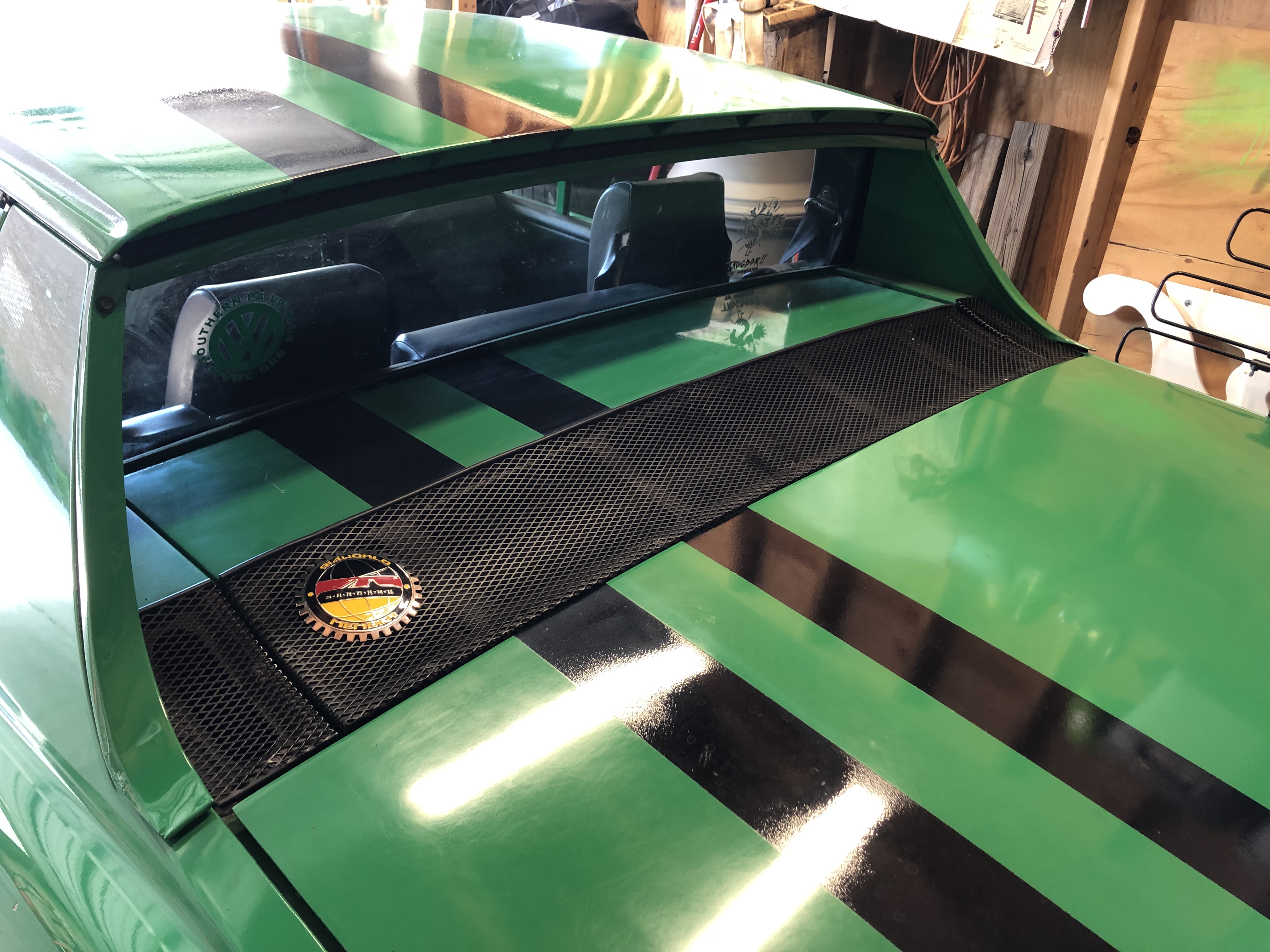 In my quest to add a little LESS noise to my car, (and add a little rain protection when I drive 2000 miles in March to go to Amelia Island) I am swapping my cooler looking GT lid for the stocker with the rain tray. I even have added the engine side (modern) firewall mat from 914Rubber.