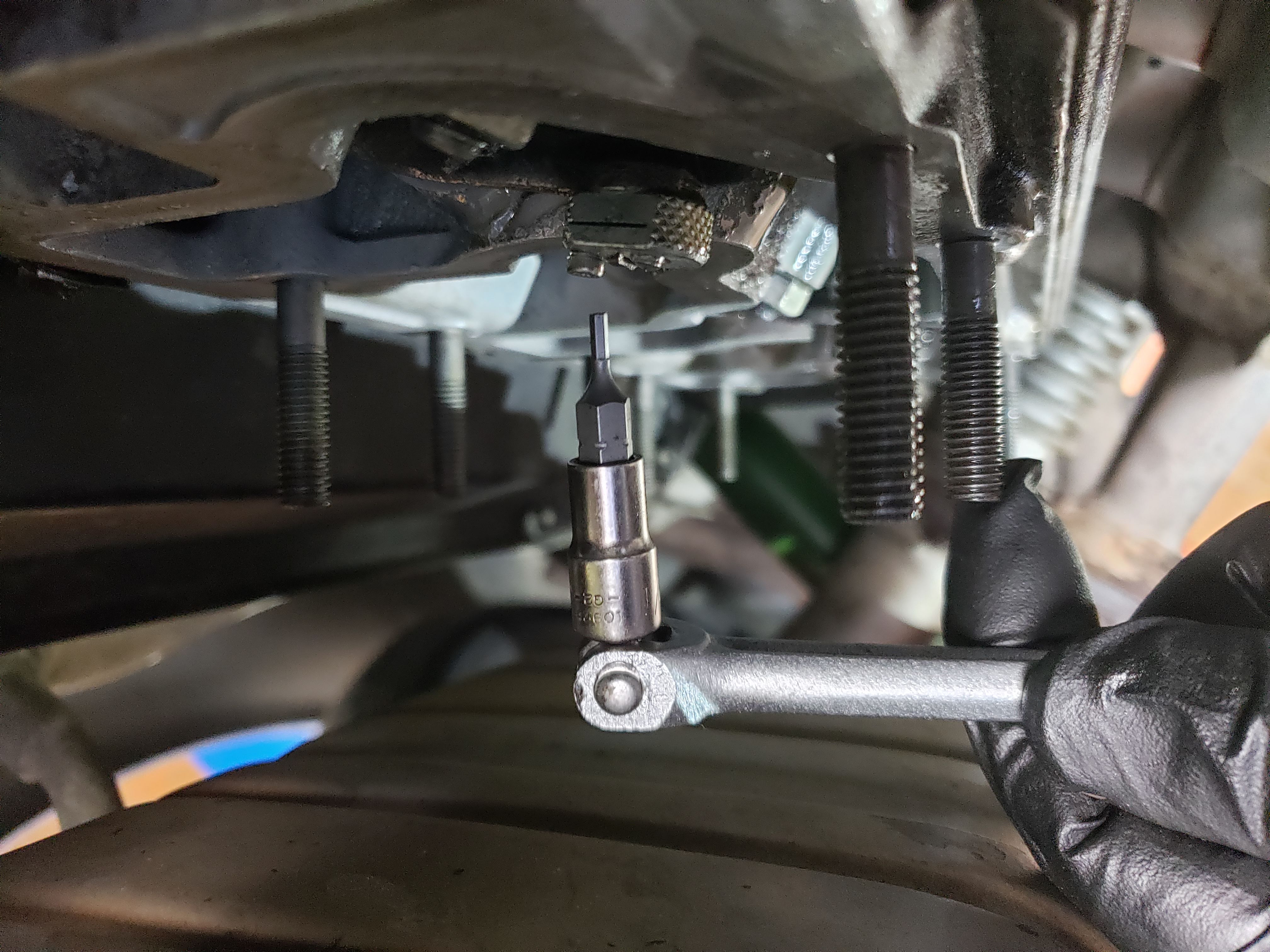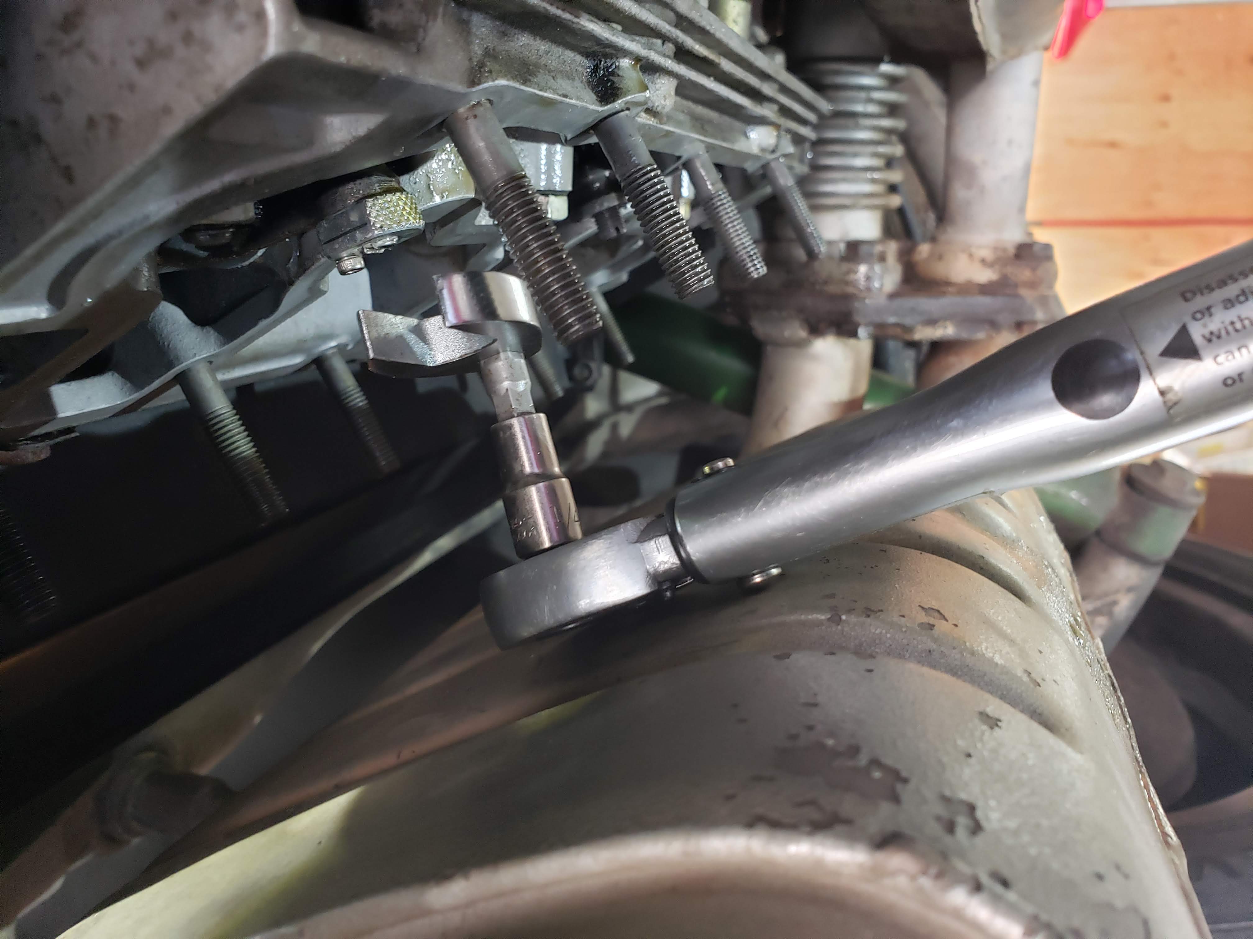 I have my set sitting on the shelf waiting for The next adjustment. I may actually be able to do the valves with the engine in. For spaces where the T-handled wrench does not fit without removal of components (or dropping the engine), you can use a 1/4 drive to tighten the small cap screw and a standard torque wrench set to 10Nm to do the torquing with whatever extensions you need. I know that my '78SC is not a 914 set up, but here are some pics of me working around the CAT on the left exhaust bank. |