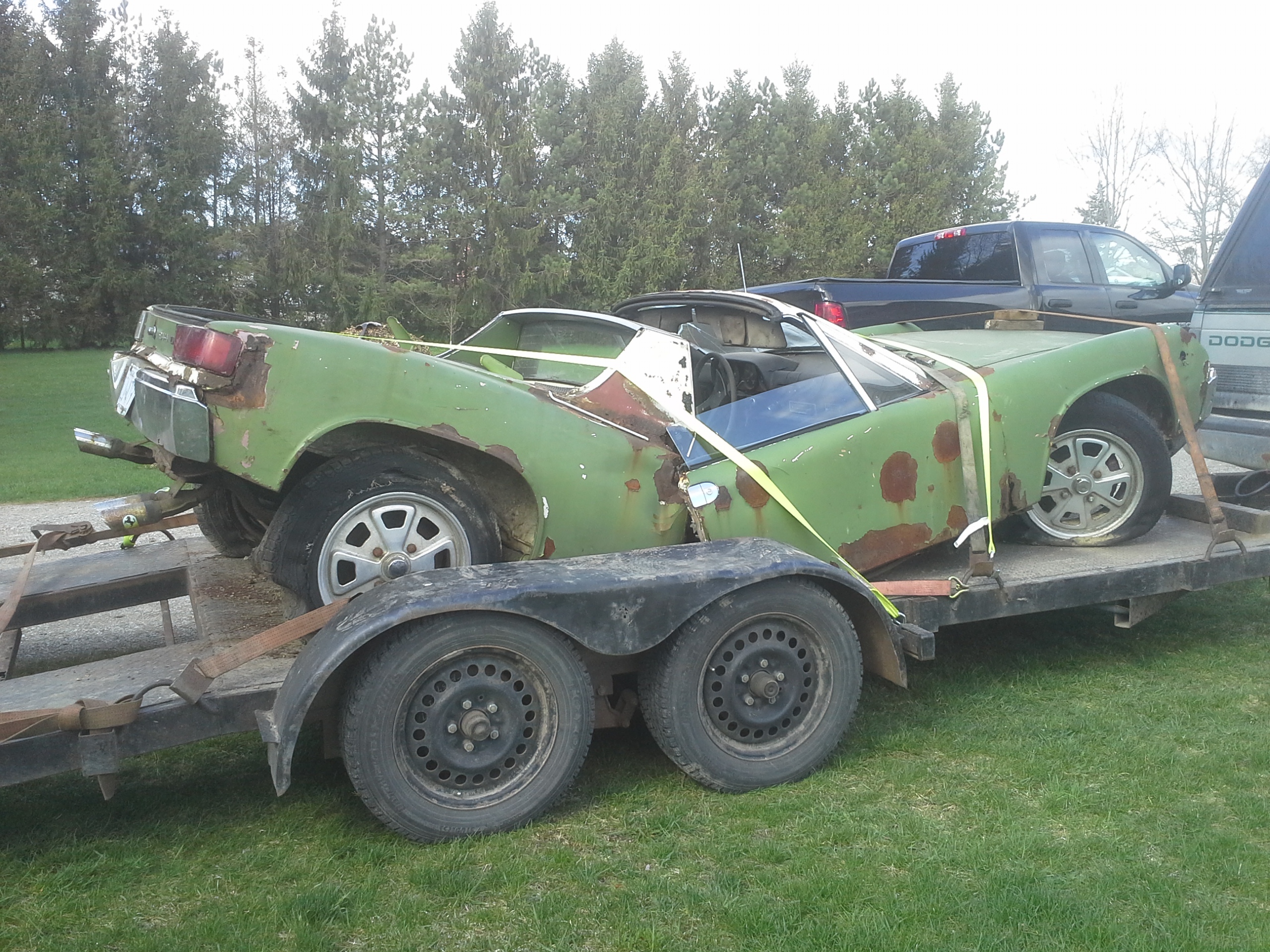 Just got home with a one owner car, (green) about 65000 miles if the odometer is right. Sticker on the plate says it was last licensed in 1981. Back of the car says it's a 1.7 but I haven't checked the block for codes yet. Side shift transmission. No rust in the hell hole! Anyone up on VIN numbers? 4732900436. Sorry had to do that. It was headed for a scrap bin tomorrow and I couldn't let that happen. Too many parts. No rust in the hell hole because there's nothing there!! (IMG:style_emoticons/default/biggrin.gif) Duct tape and 2 x 4's maybe? (IMG:style_emoticons/default/evilgrin.gif) |