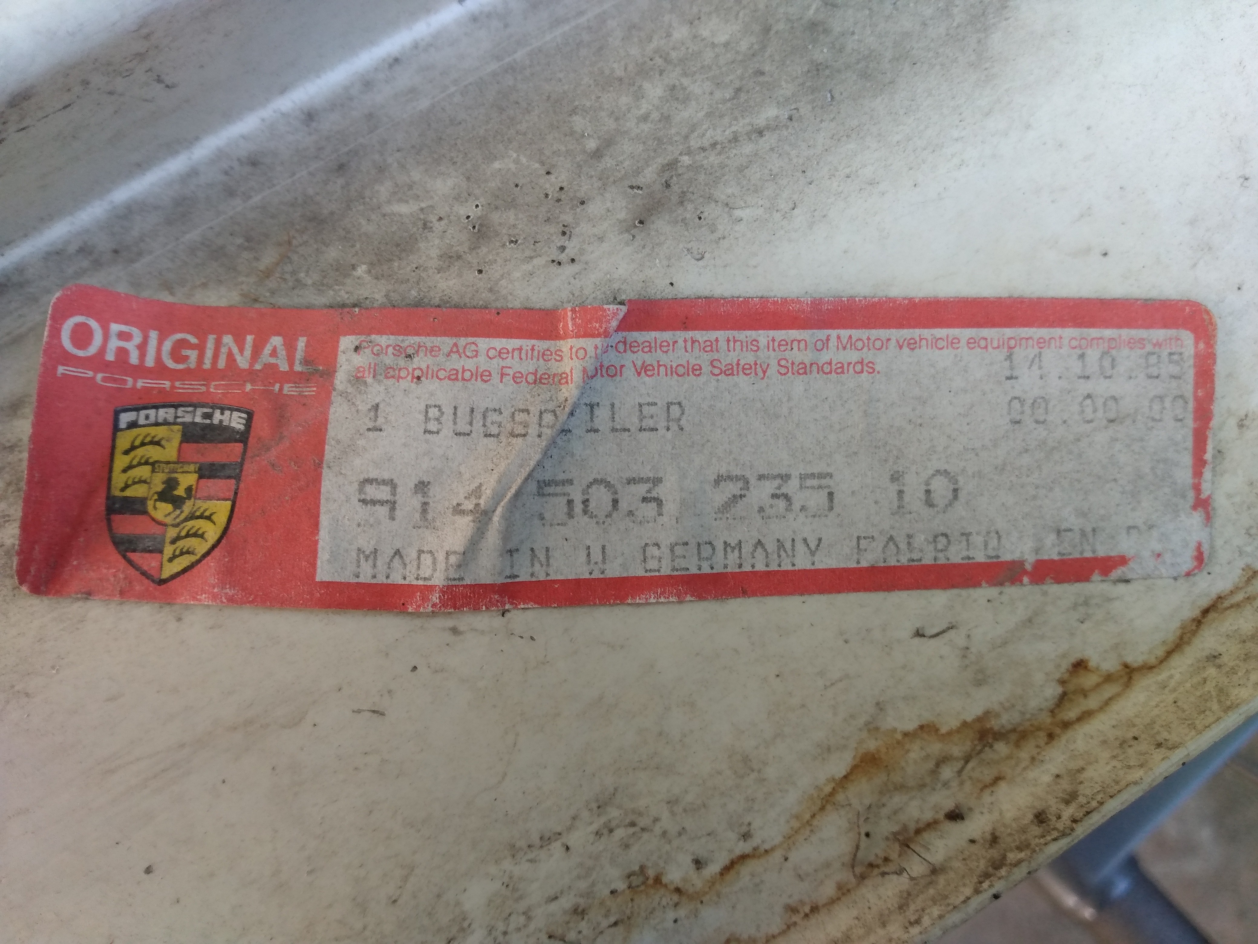 Porsche parts sticker on the LE spoiler going to TonyA's Creamsicle. Nice to see the spoiler going to a good guy with a good car. (IMG:style_emoticons/default/flag.gif) Funny thing is, I promised it to him before getting my Bumblebee, which needs one, so I'm back in the market for one. If anyone has one available, please PM me. Project spoiler needing repairs is fine. Anyone interested in joining Tony and I for Perch in Port Dover Wednesday night lmk. We'll be hanging out at a cottage there. Maybe we can do 914s on the pier and have a little scoot. Room to crash at the cottage too if you don't mind leaving by 7:00 for breakfast at the Dover Dairy bar Thursday morning. |