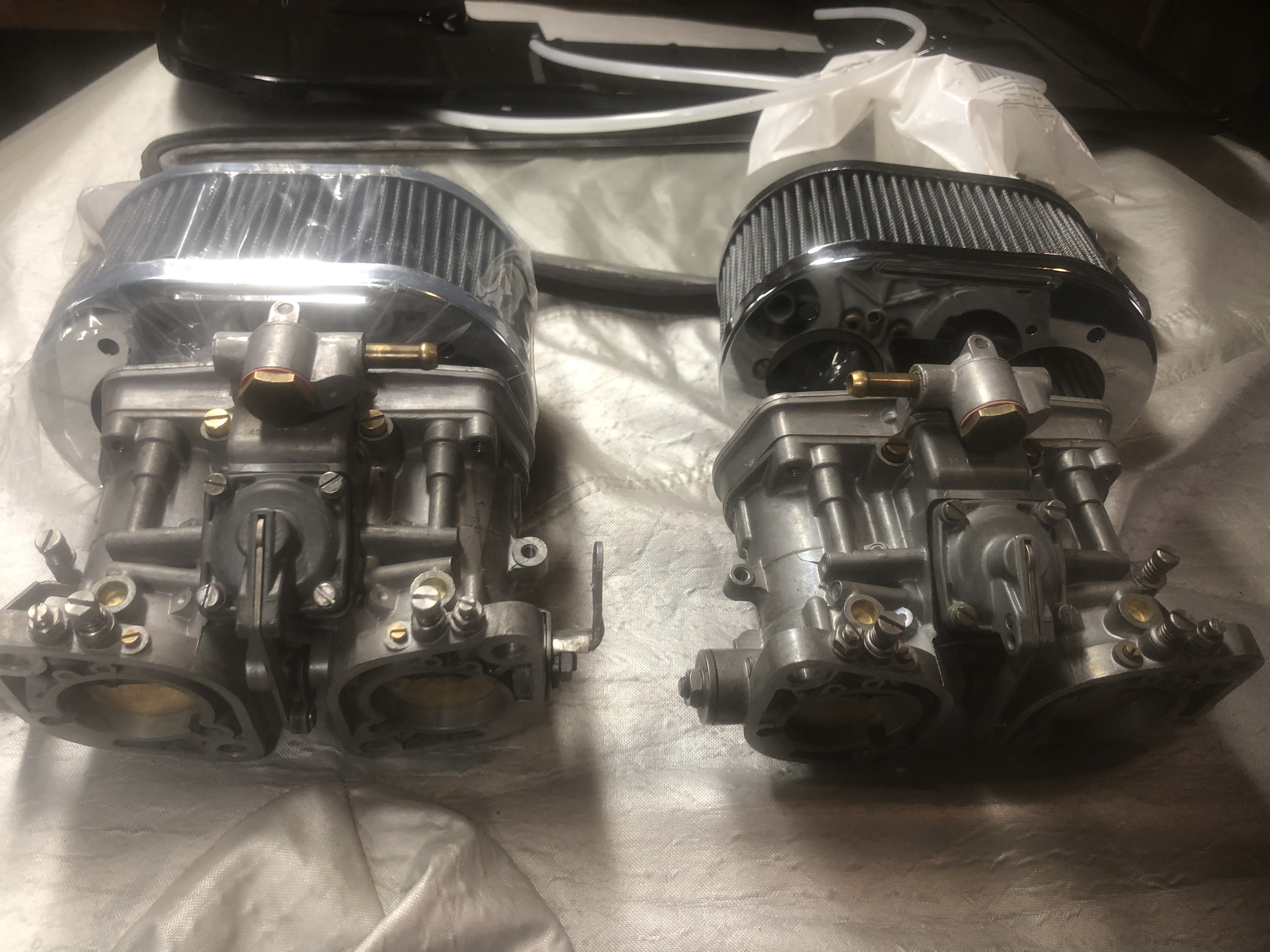 Selling one set of Weber 40mm carbs with new air cleaners . Theses have been overhauled with new gaskets floats and accelerator pumps . Comes with new air filters. Made in Bologna . Asking 350 plus shipping.