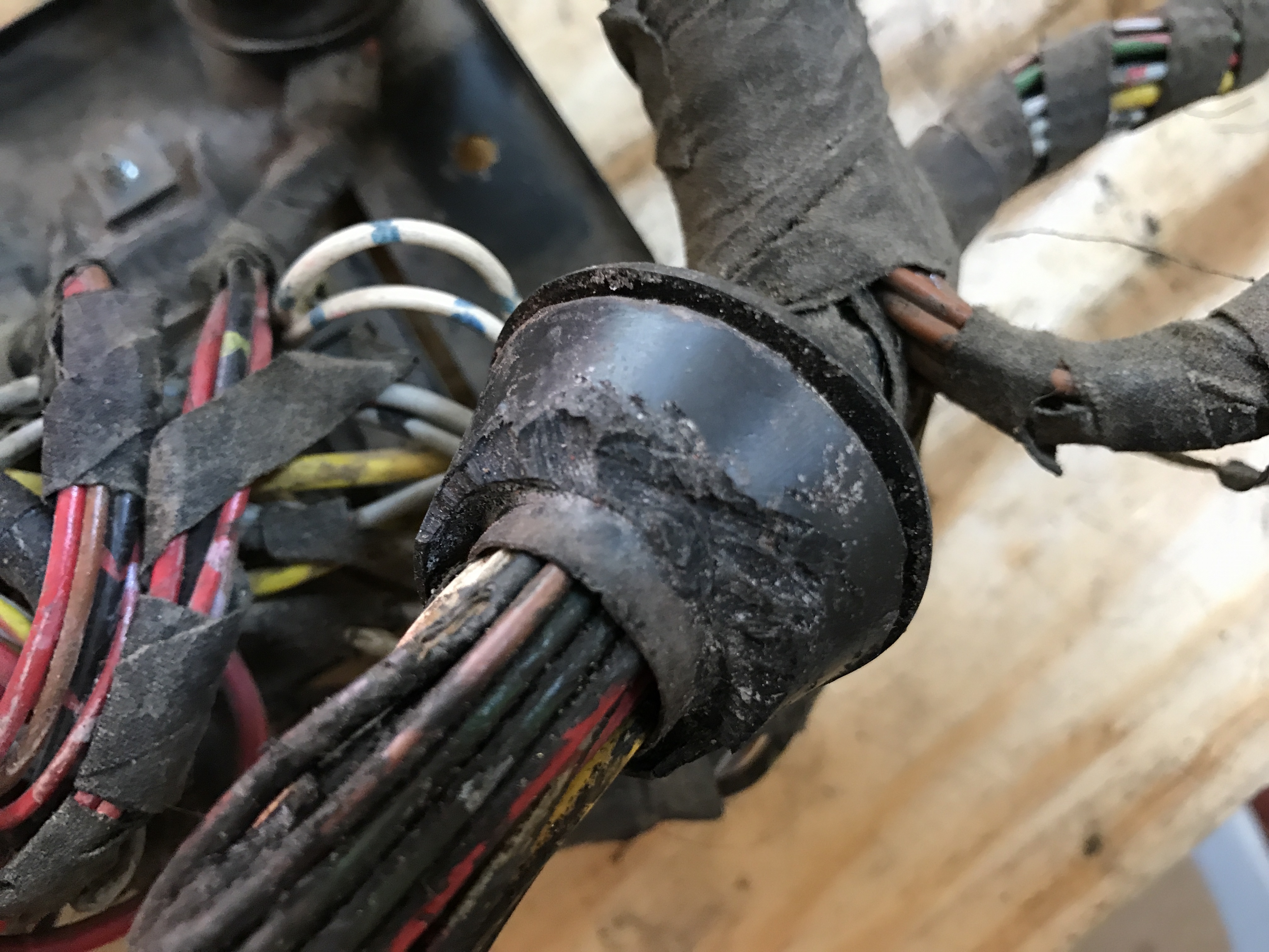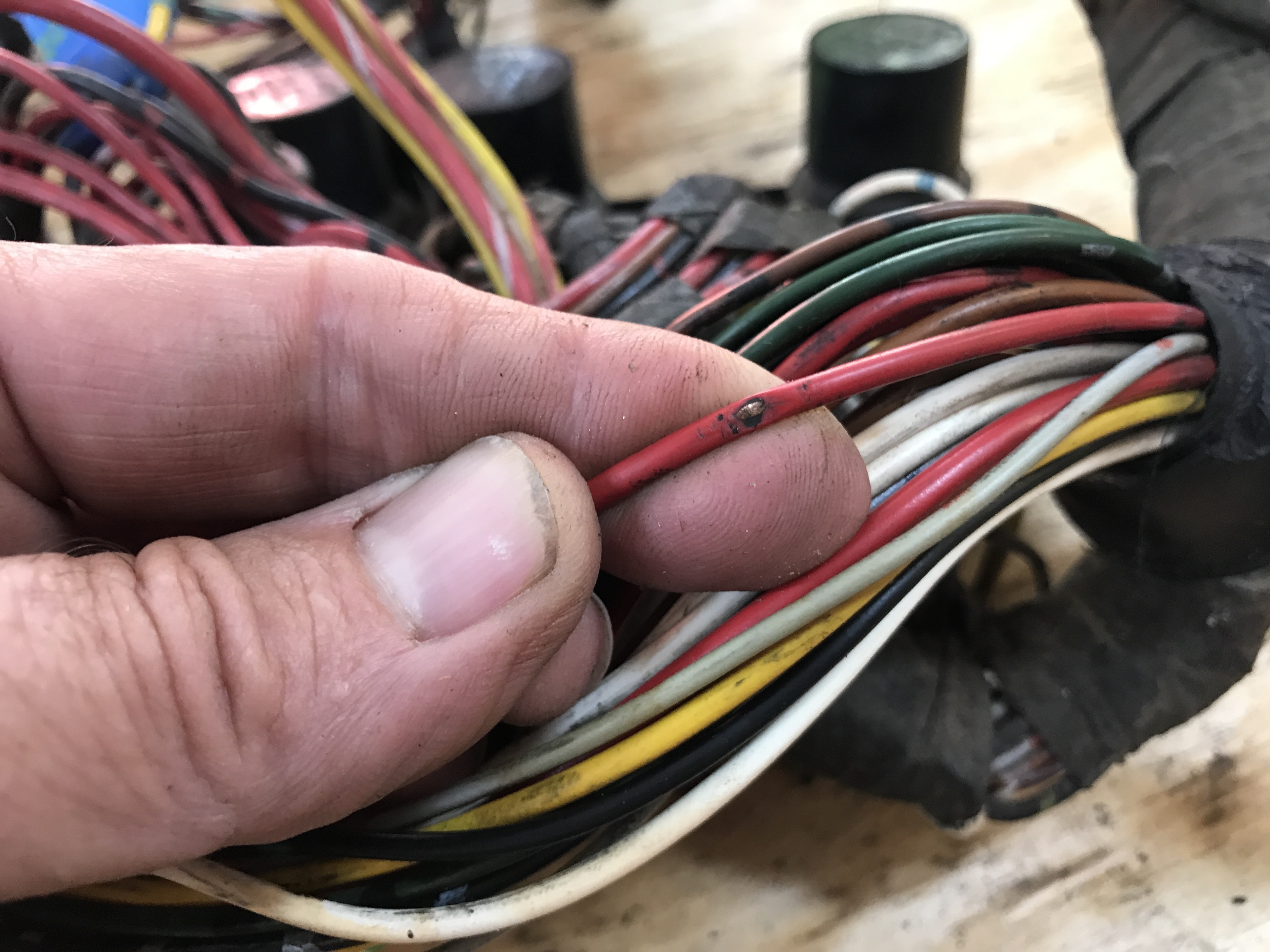 Of course, as I clean wires I find more issues, ranging from tiny nicks in the insulation to more significant holes.