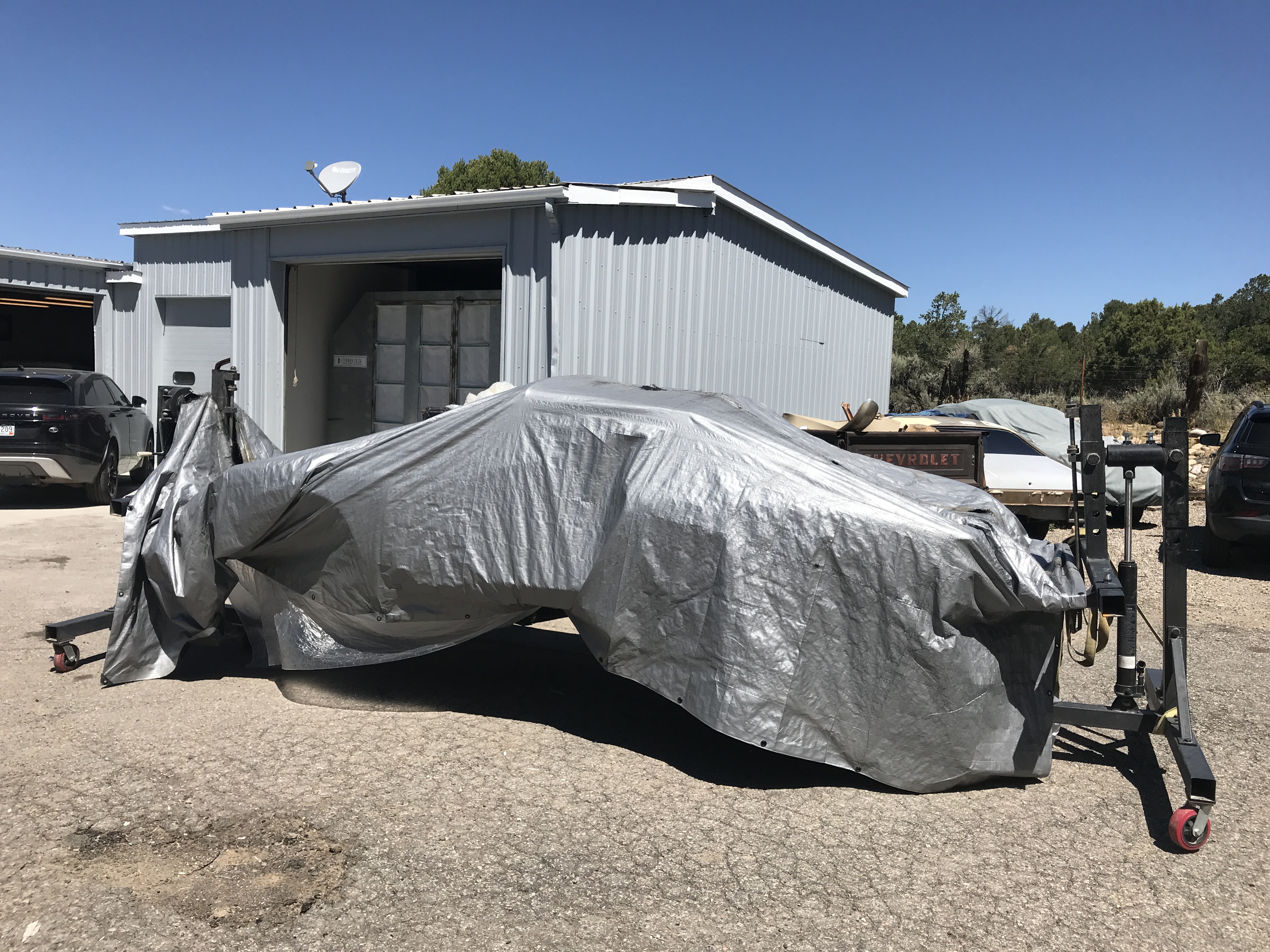 I stopped by the body shop today, and caught them shifting cars around. They had my 914 outside but all wrapped up. Should have gone into the paint booth after lunch and will be in primer by tomorrow.