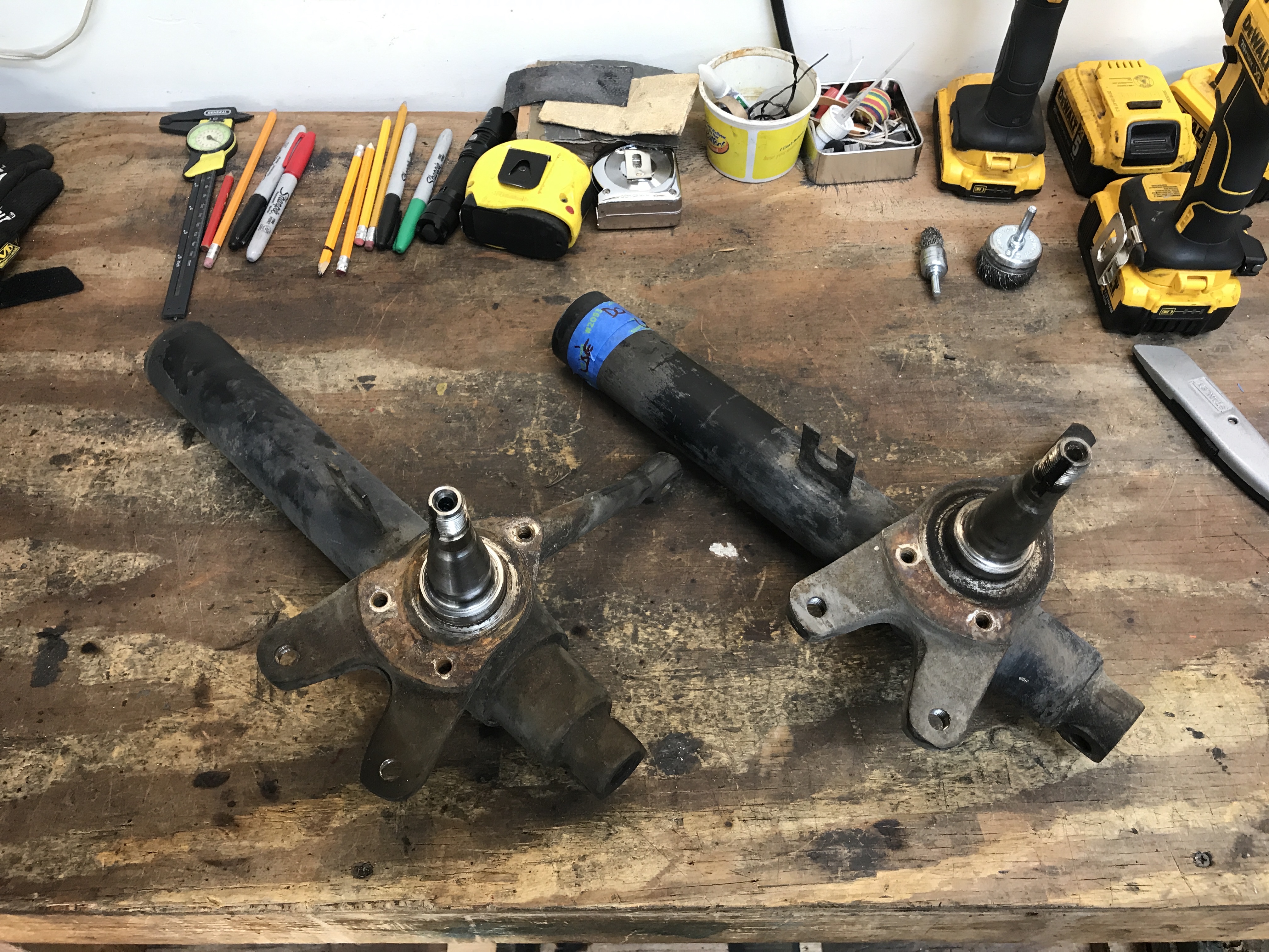 My left replacement strut arrived from 914 Werke. A perfect replacement for the original strut that had mangled internal threads. Now I have all the parts ready for the powder coat shop next week.