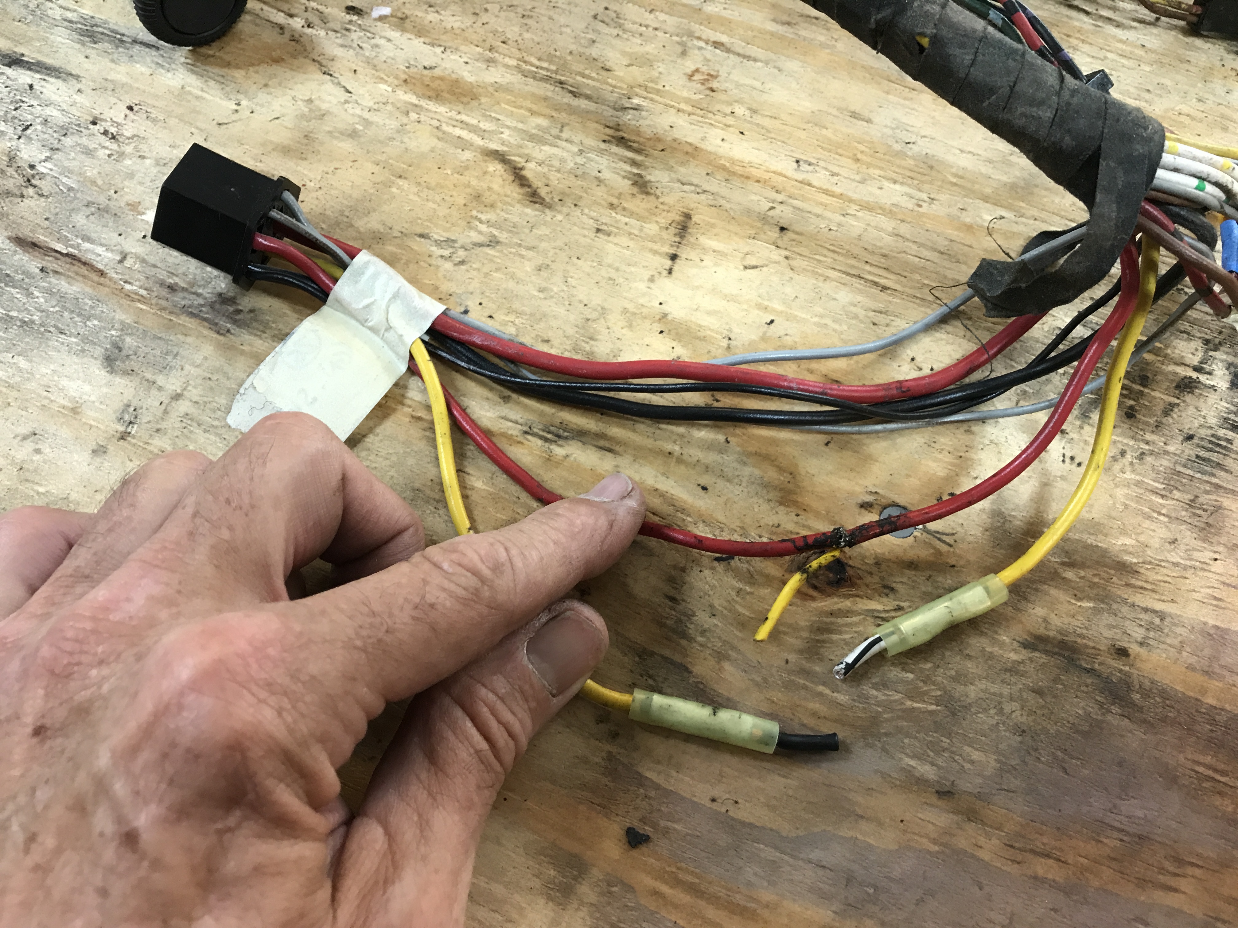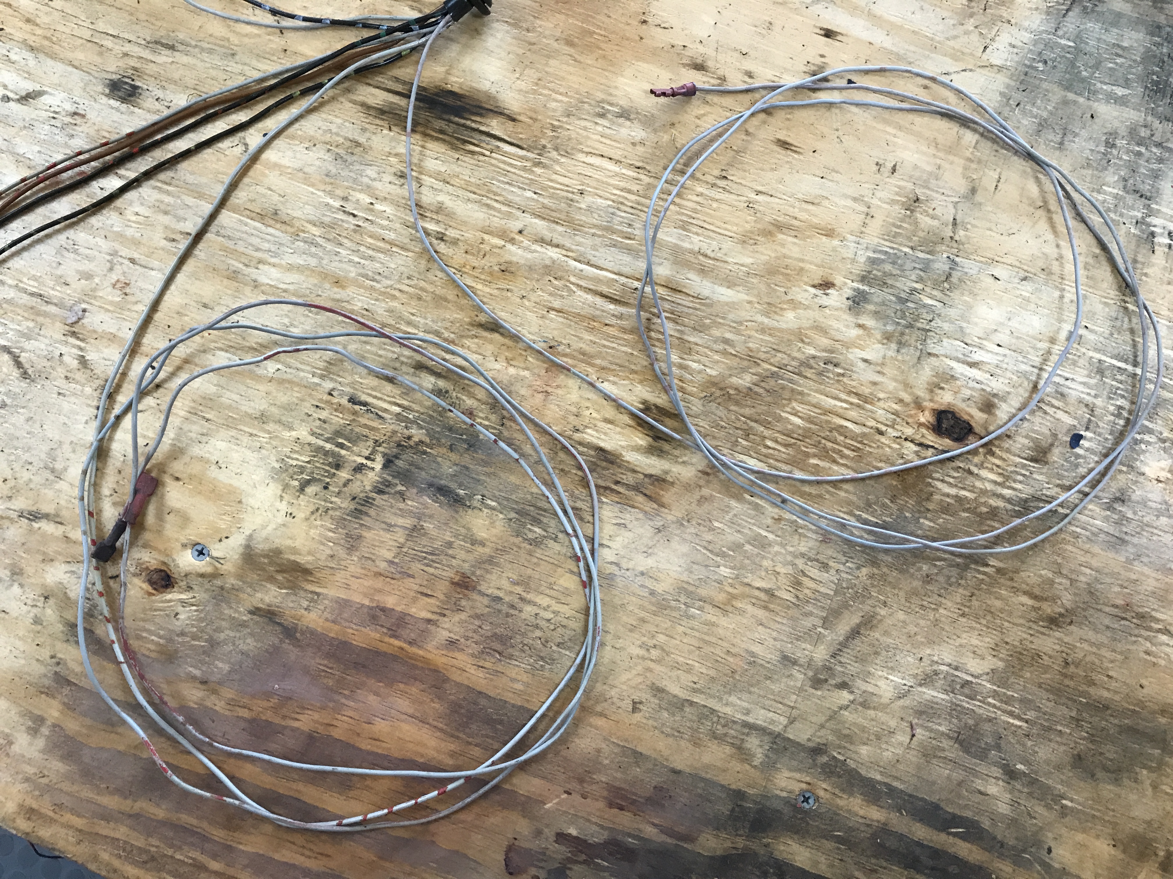 First up: 2 leads to the ignition switch plug. One was split and connected to new PO leads. The other has a new lead spliced in.