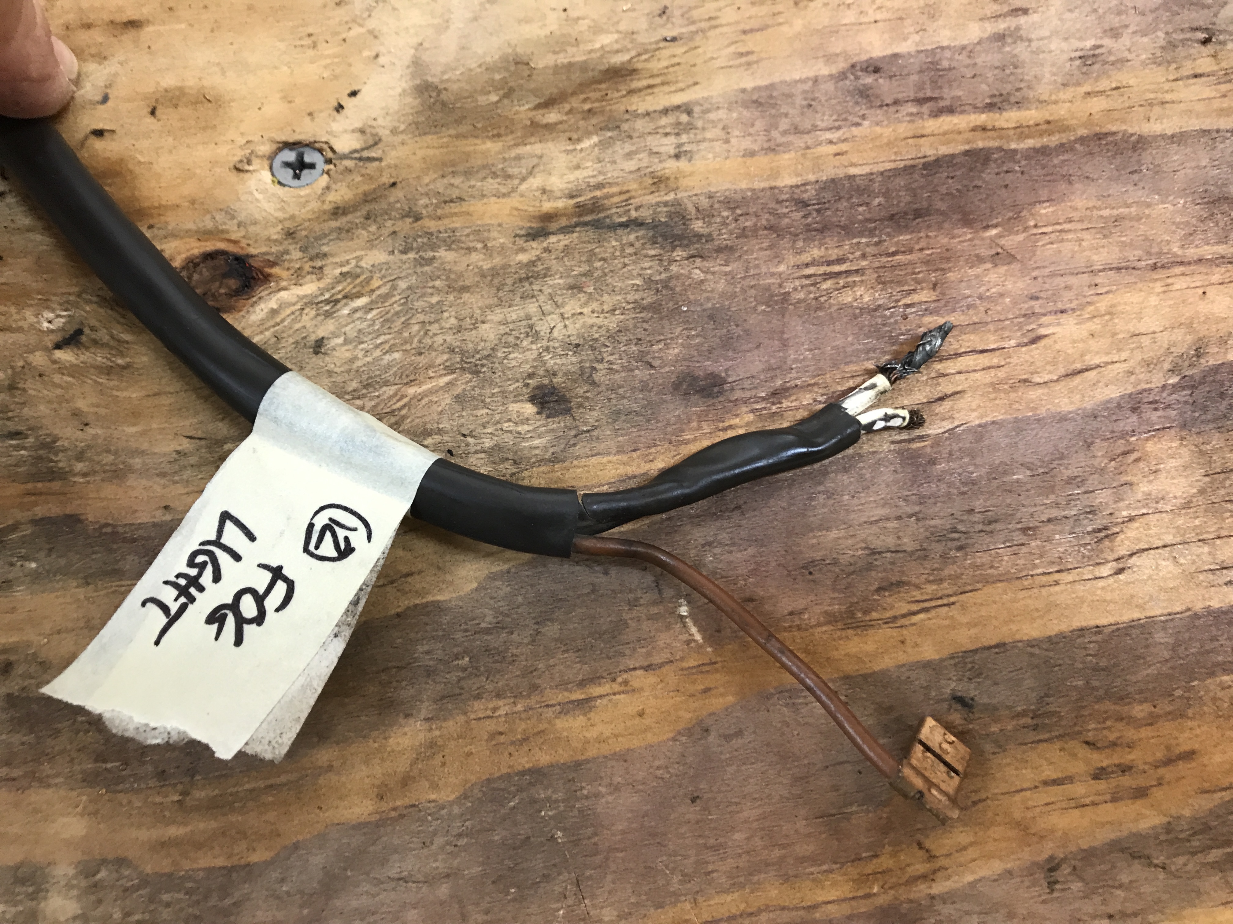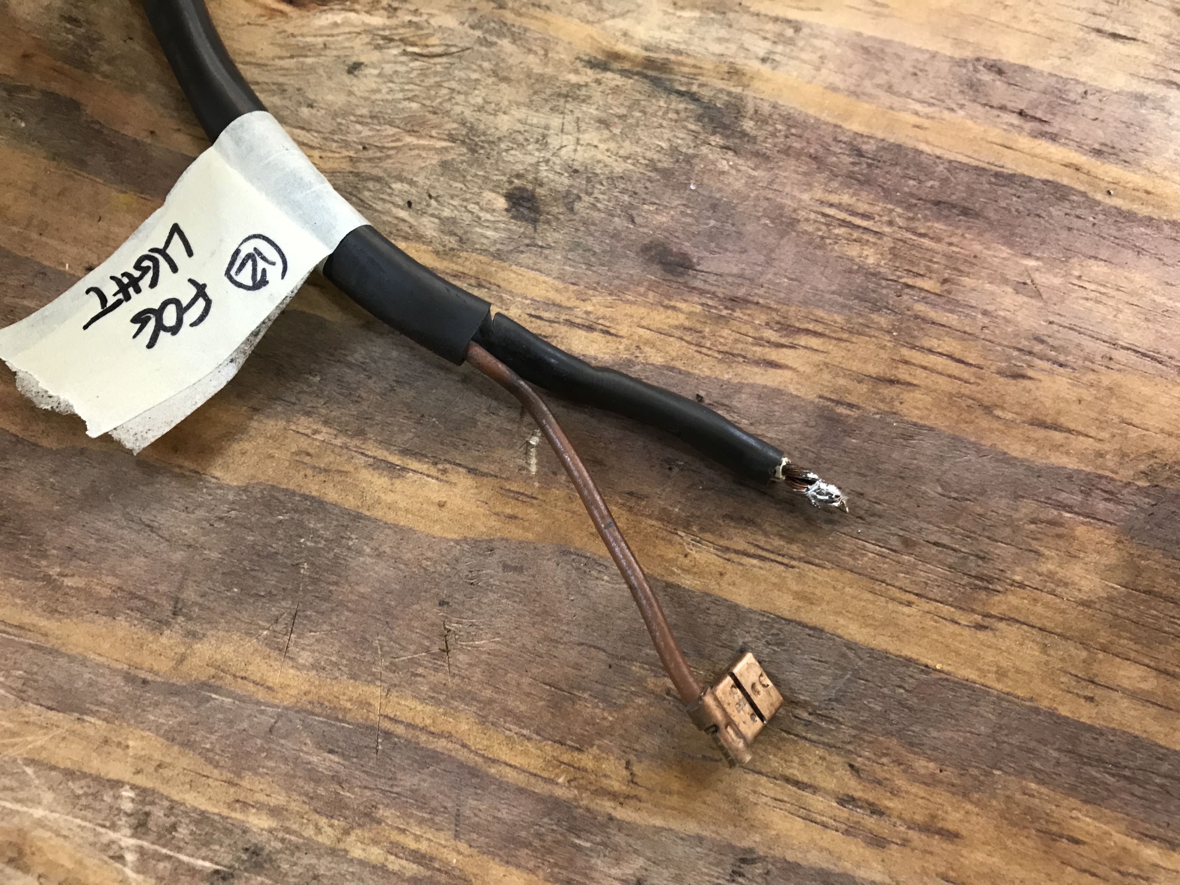 A different kind of repair on the power lead to the left fog light. These are bare wire with some solder tinning, that get clamped in a screw connection.