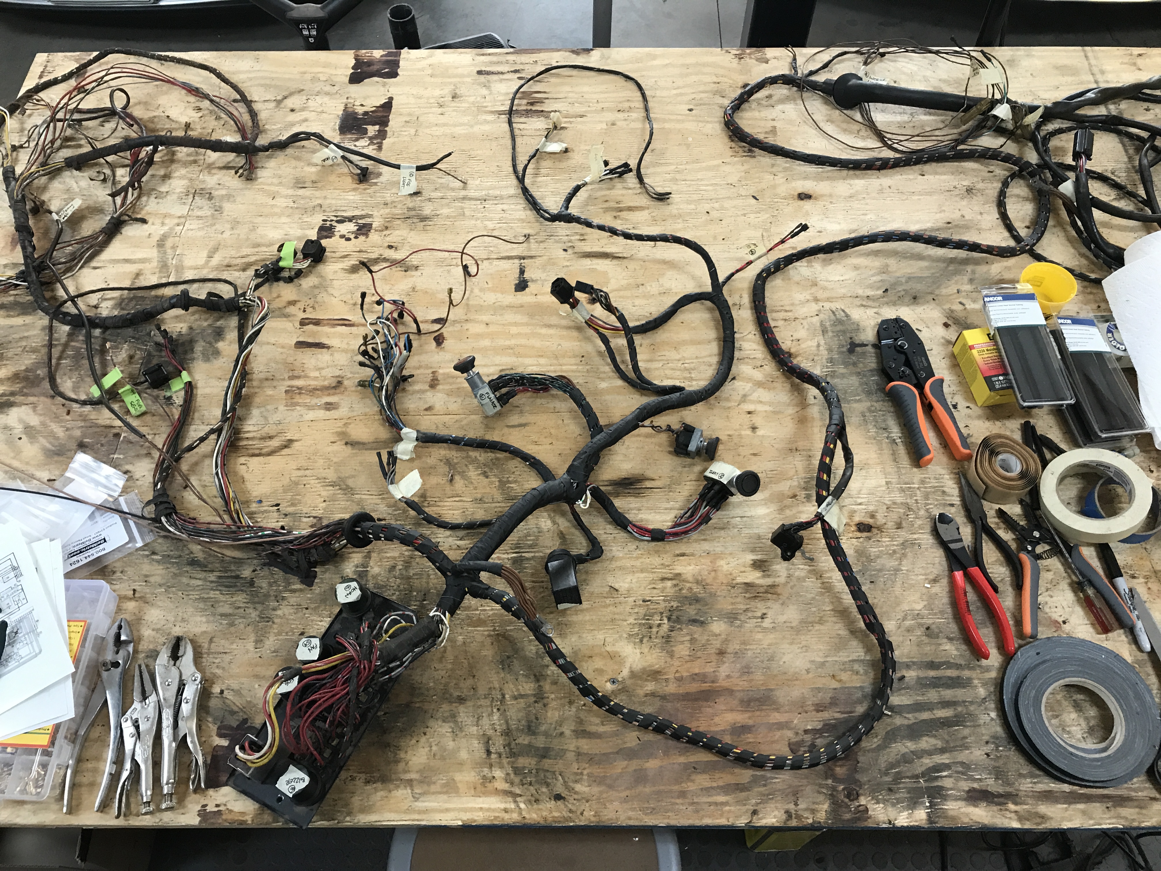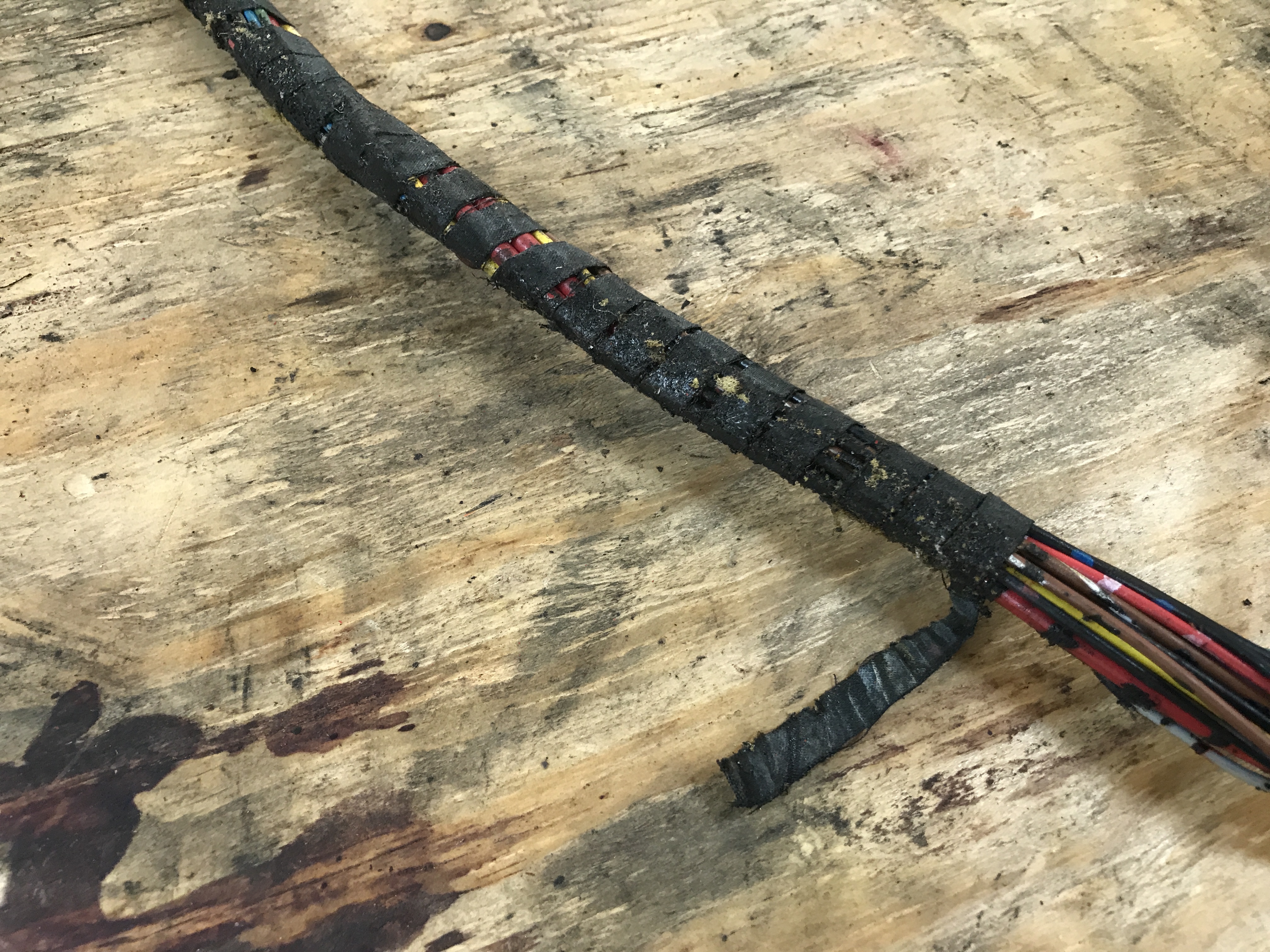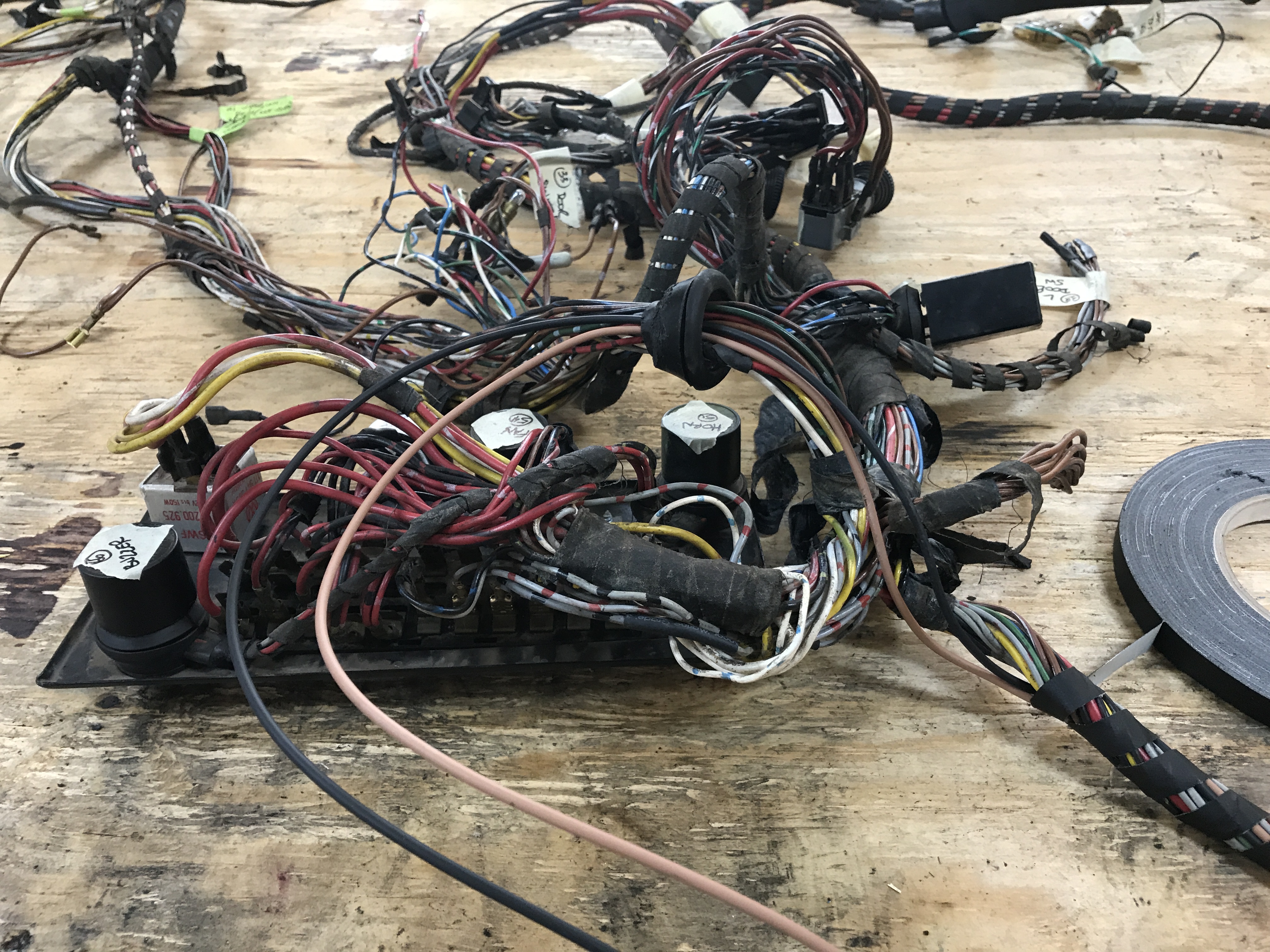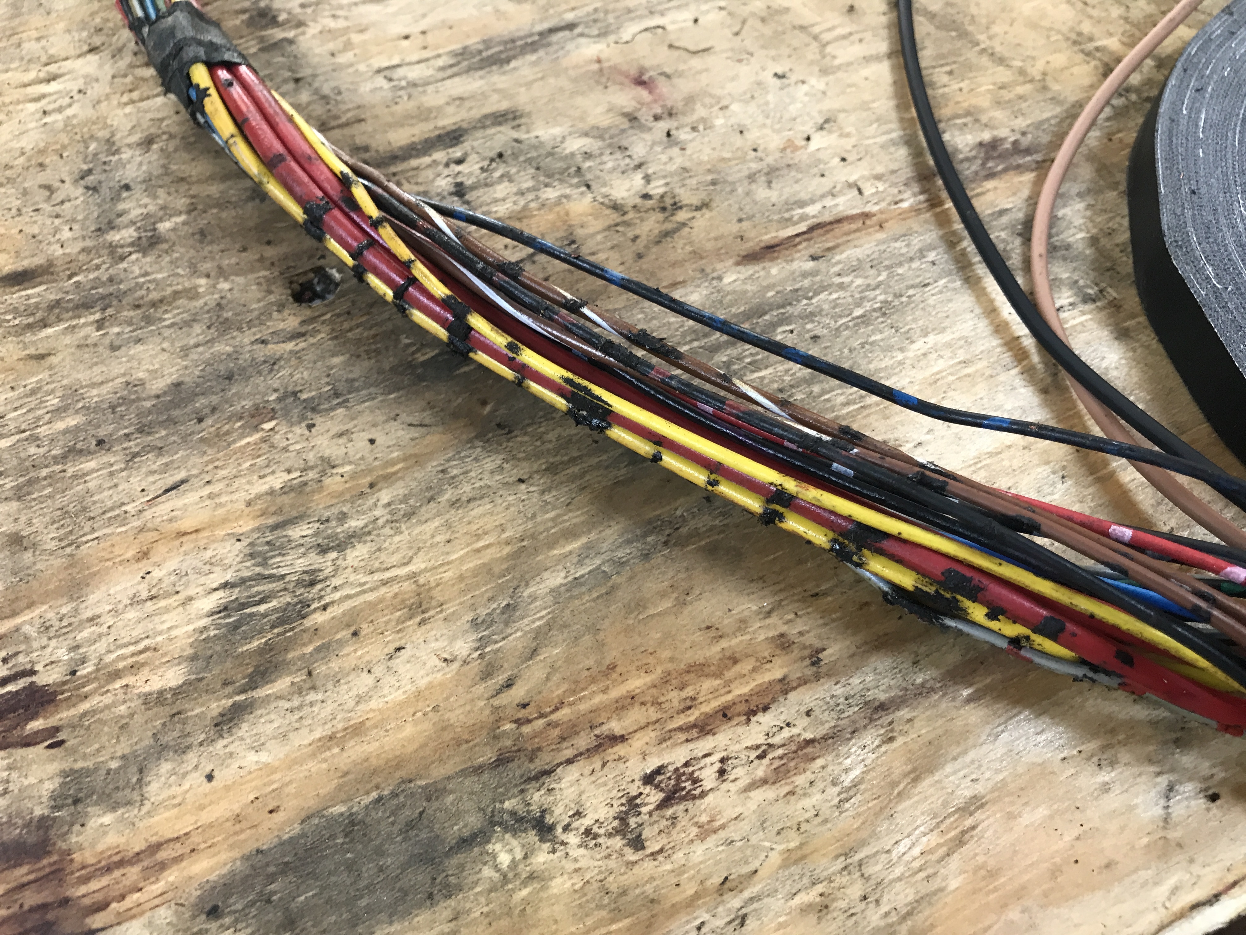 Back to wire work today. I started wrapping the harness with new tape, working forward from the rear firewall.