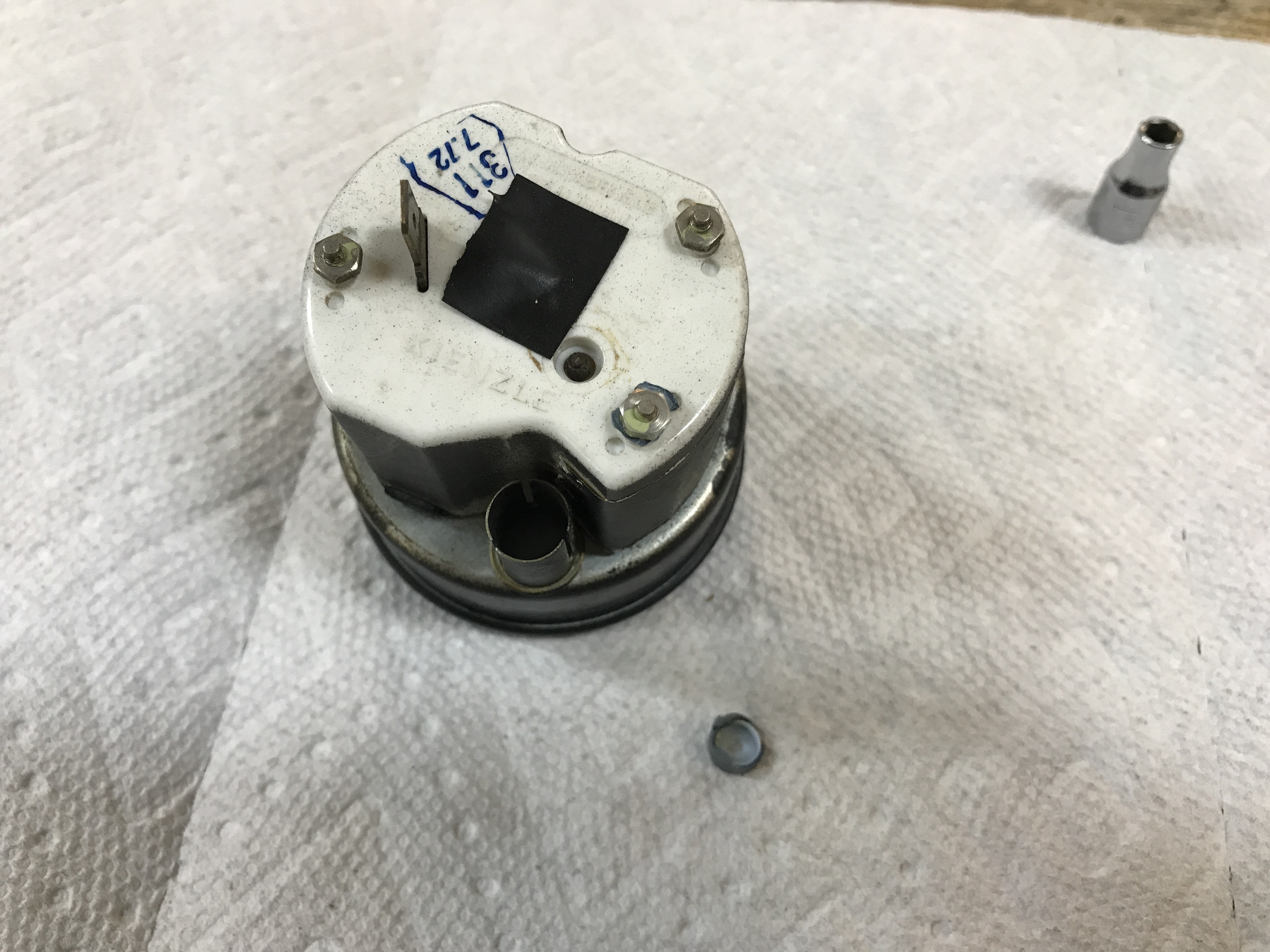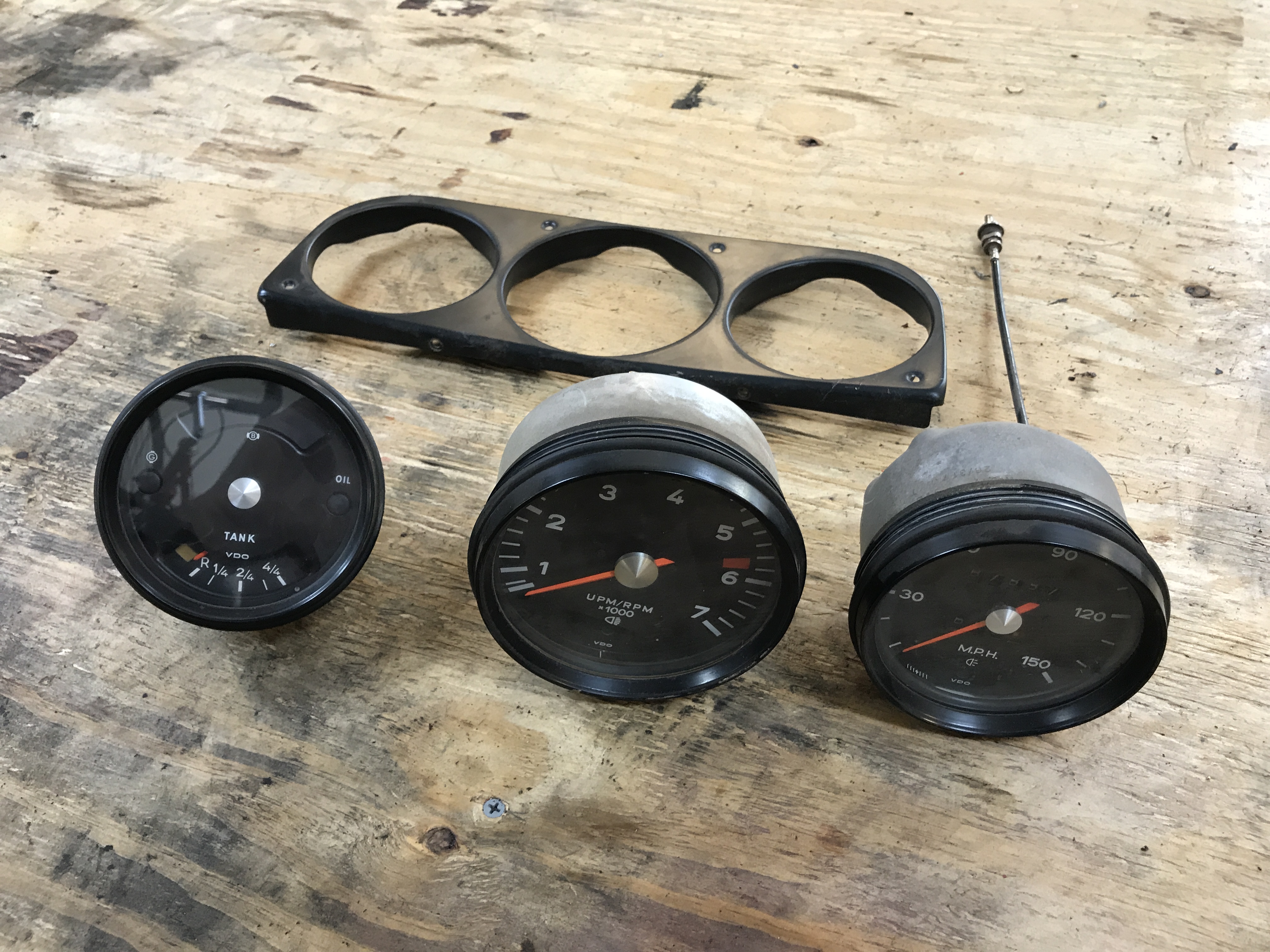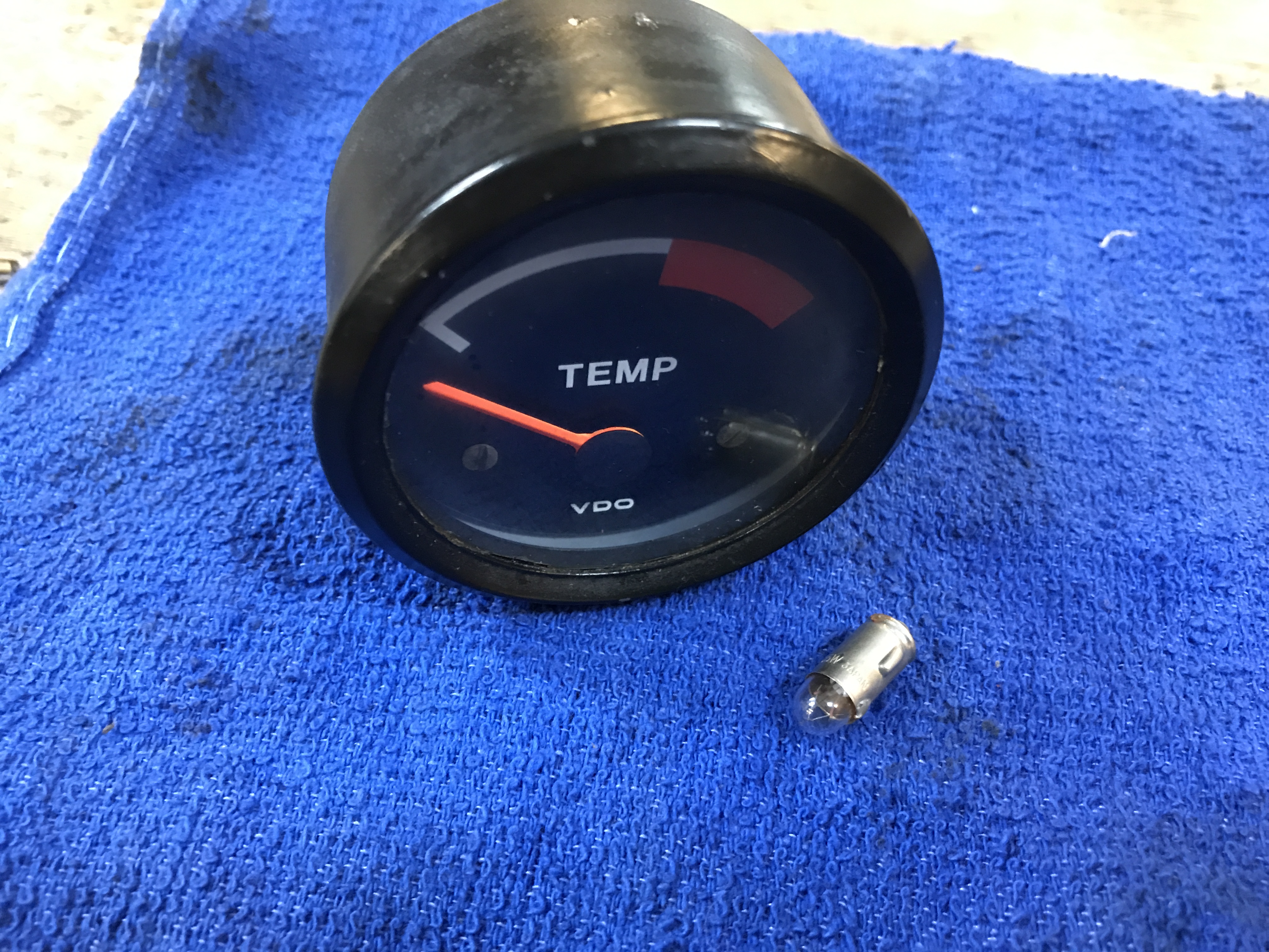The gauges look OK from the outside, and the bezel rings have never been opened. But the temp gauge has something loose inside rattling around. Oops.
