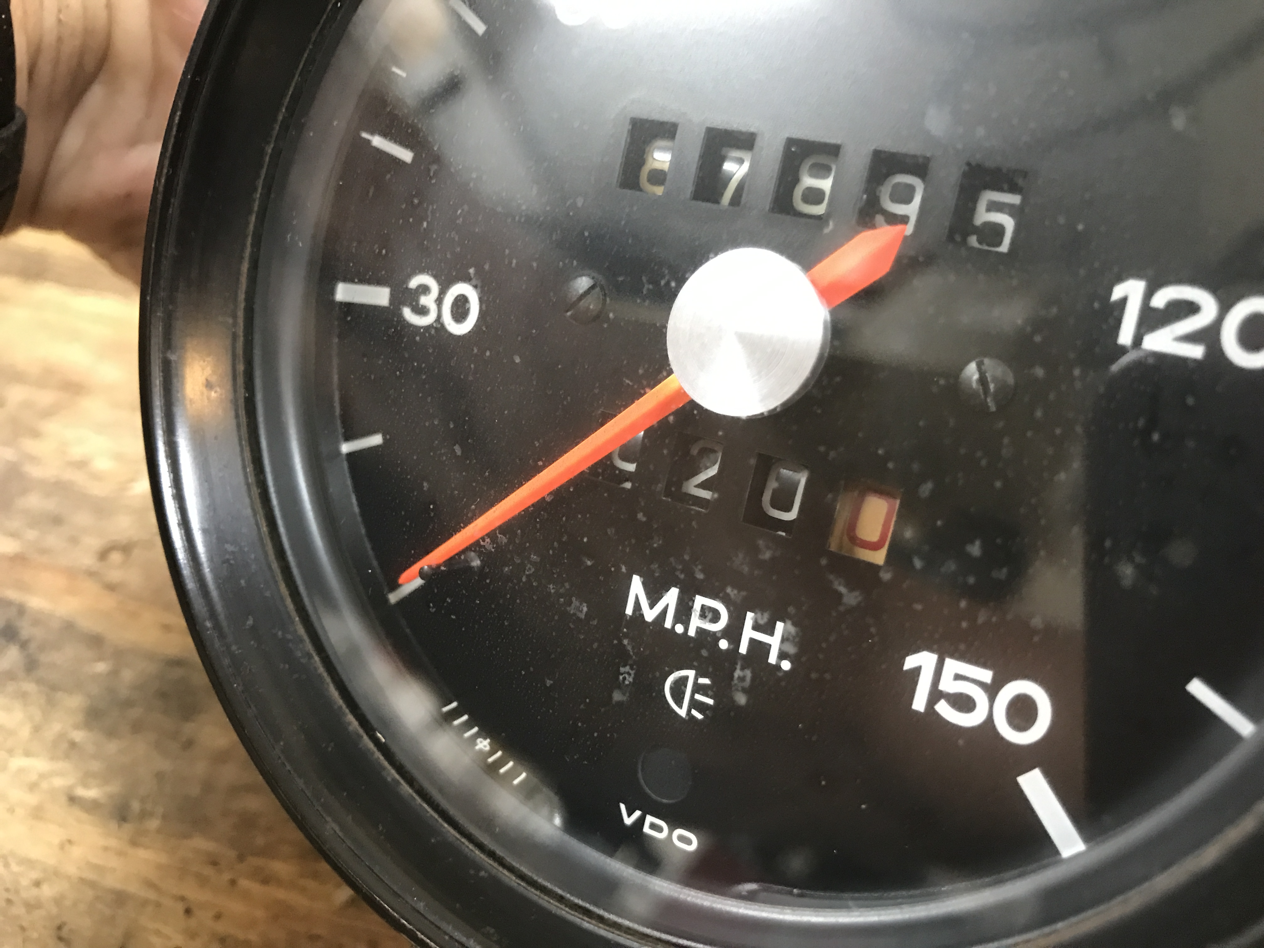 The speedometer has some spots on the inside of the glass.