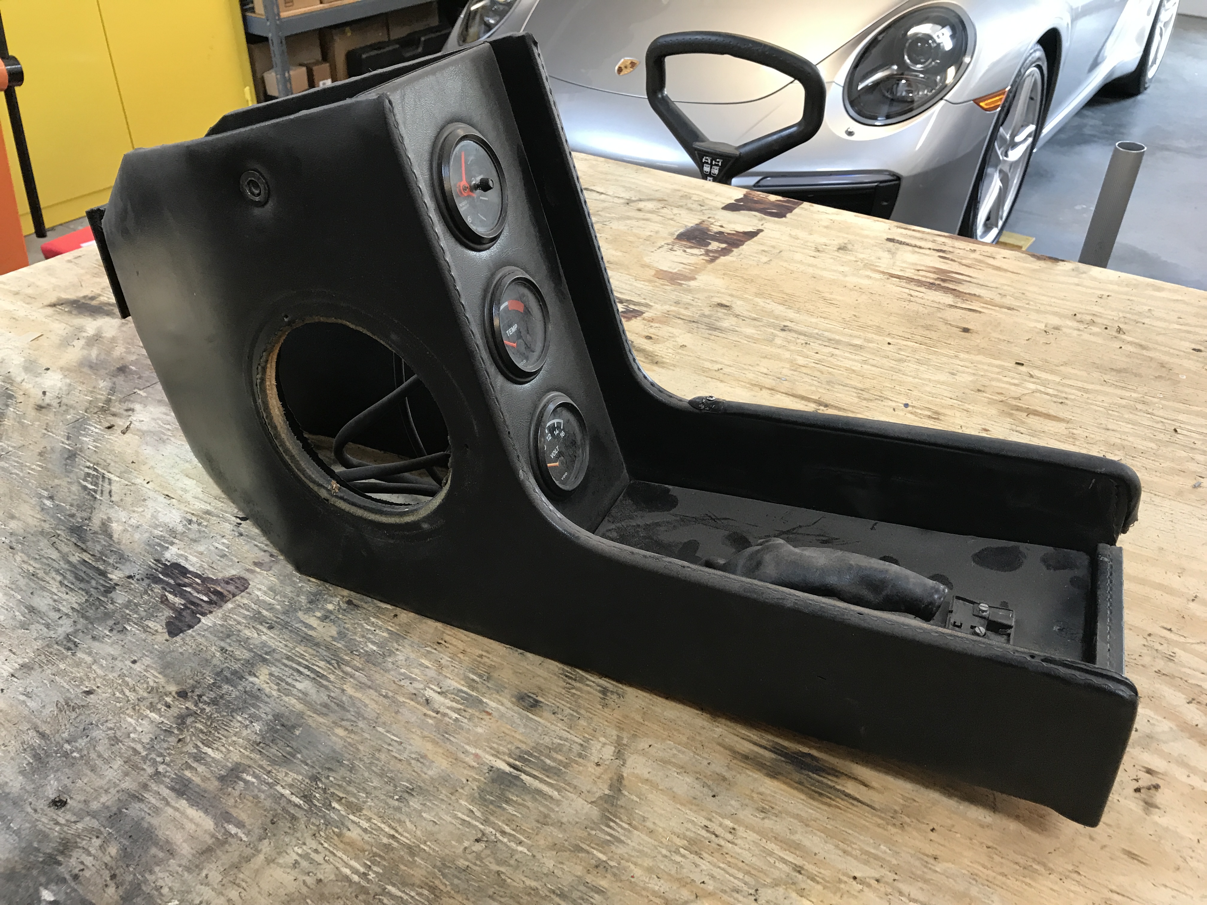 I took a close look (and more) at the center console today. It is basically solid, but needs some work. Check out the PO speaker holes. How else can you get 4 speakers in a 914?