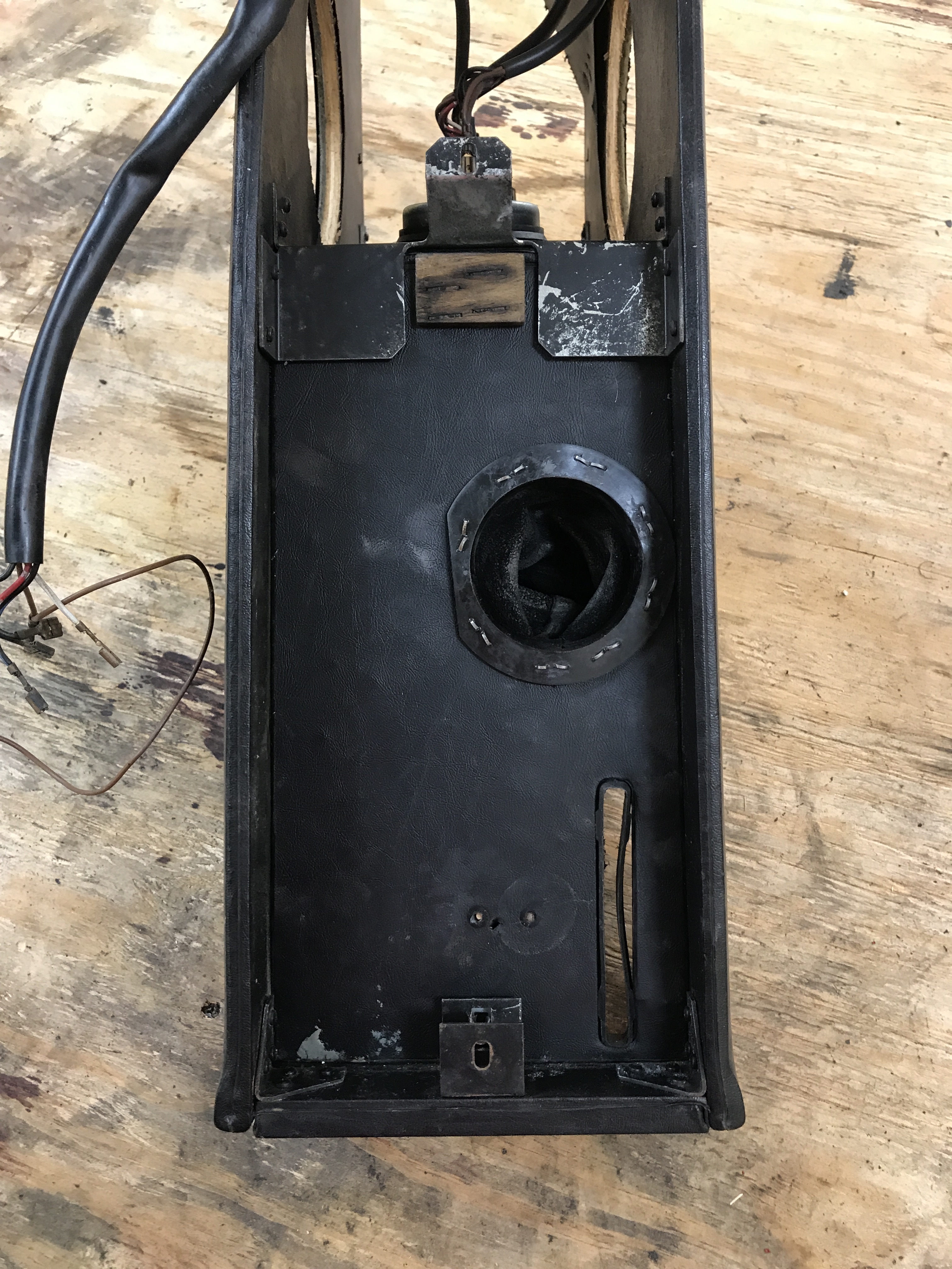 I took a close look (and more) at the center console today. It is basically solid, but needs some work. Check out the PO speaker holes. How else can you get 4 speakers in a 914? Back in the 80s I had a 914 with two 200watt amps, 2 crossovers, 2 six inch, 2 four inch and two tweeters. All speakers were in the doors. It was like sitting inside high end headphones. (IMG:style_emoticons/default/smile.gif) This car was close, plus a complicated alarm system (with remote) and at least 2 hidden start-defeat switches. |