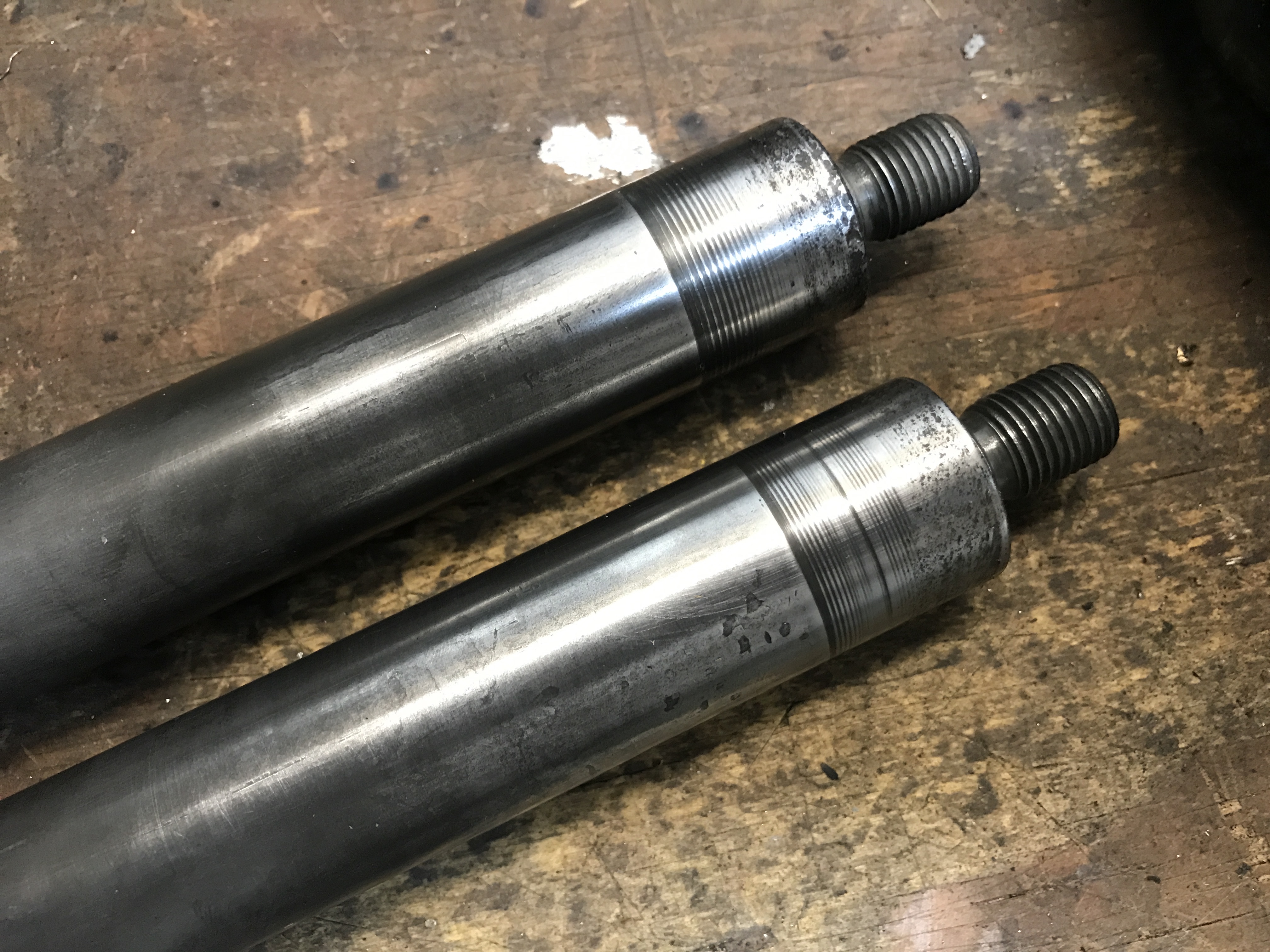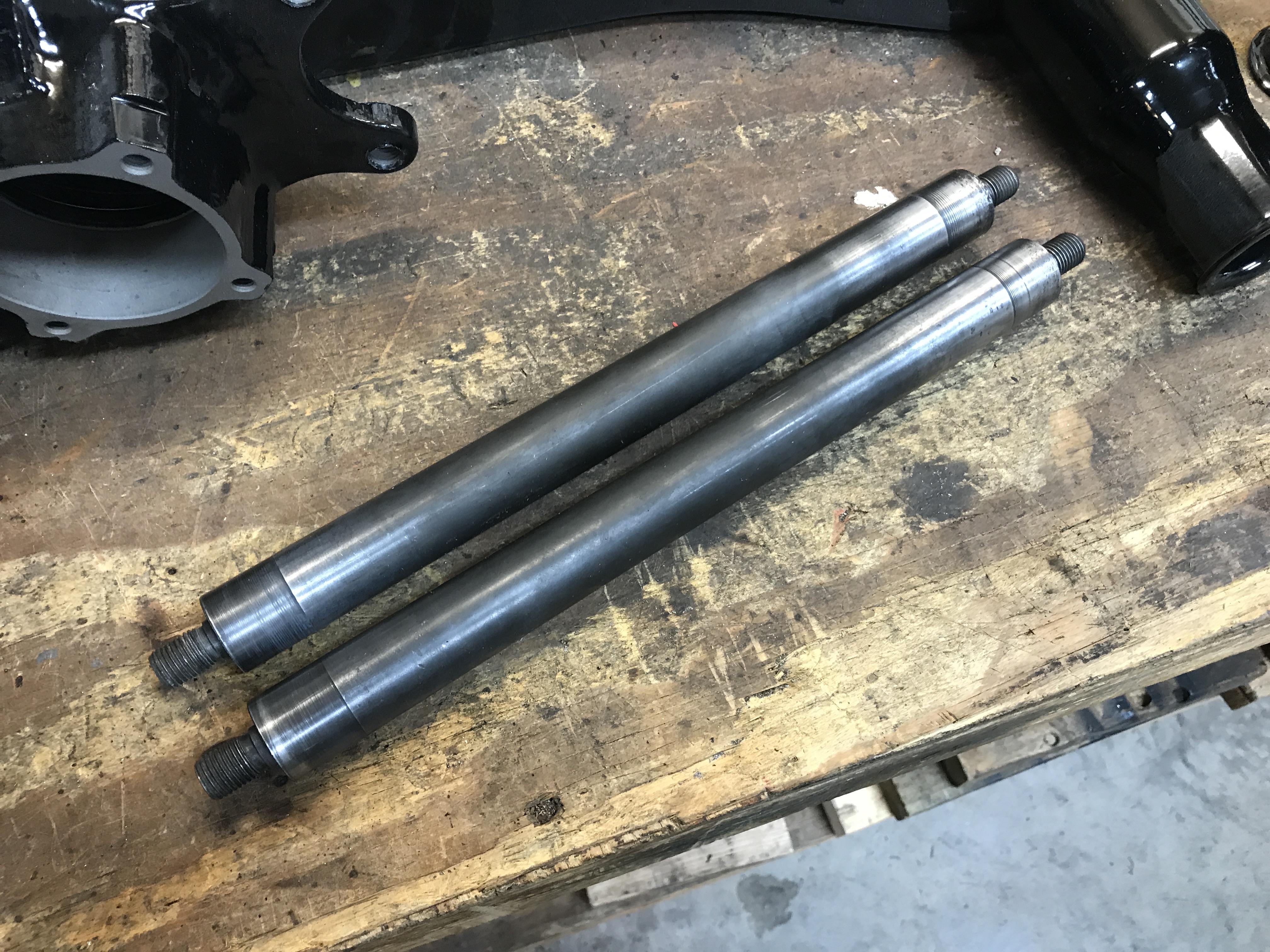 A bit more suspension work today. I cleaned up the axles for the trailing arms. Sorry, I did not get a before picture, but there was a bit of rubber crud stuck on the sections where the old bushings were.