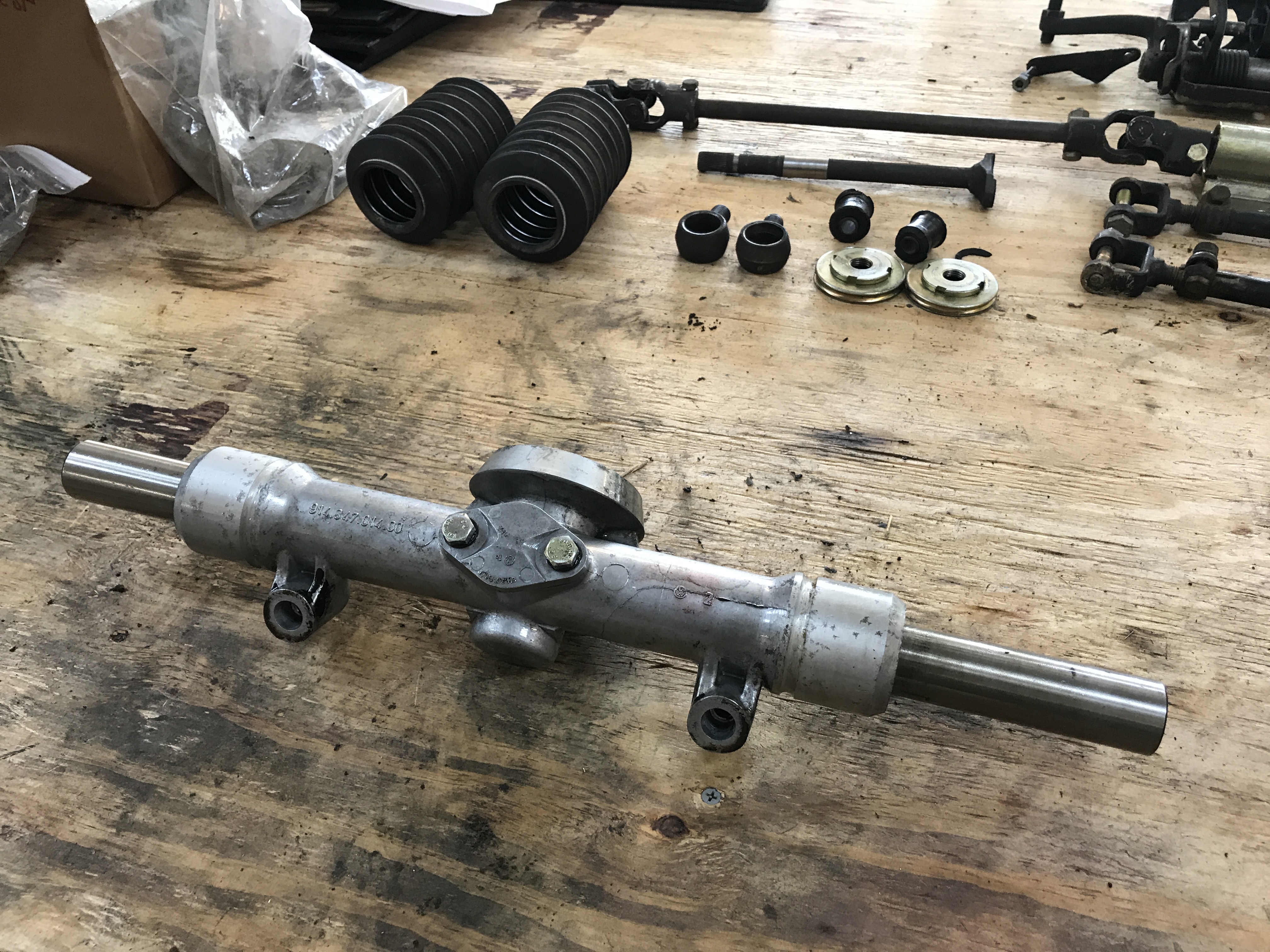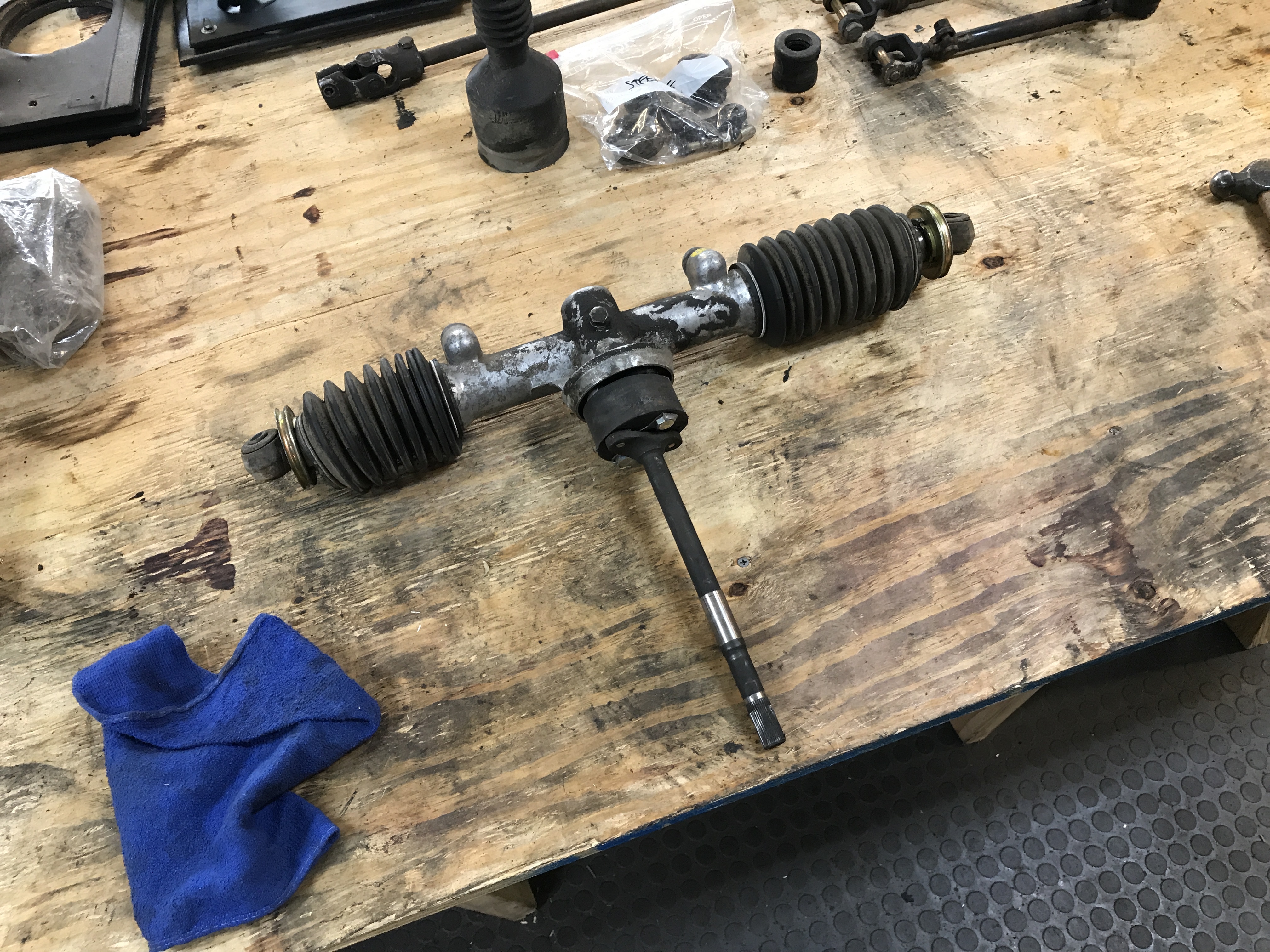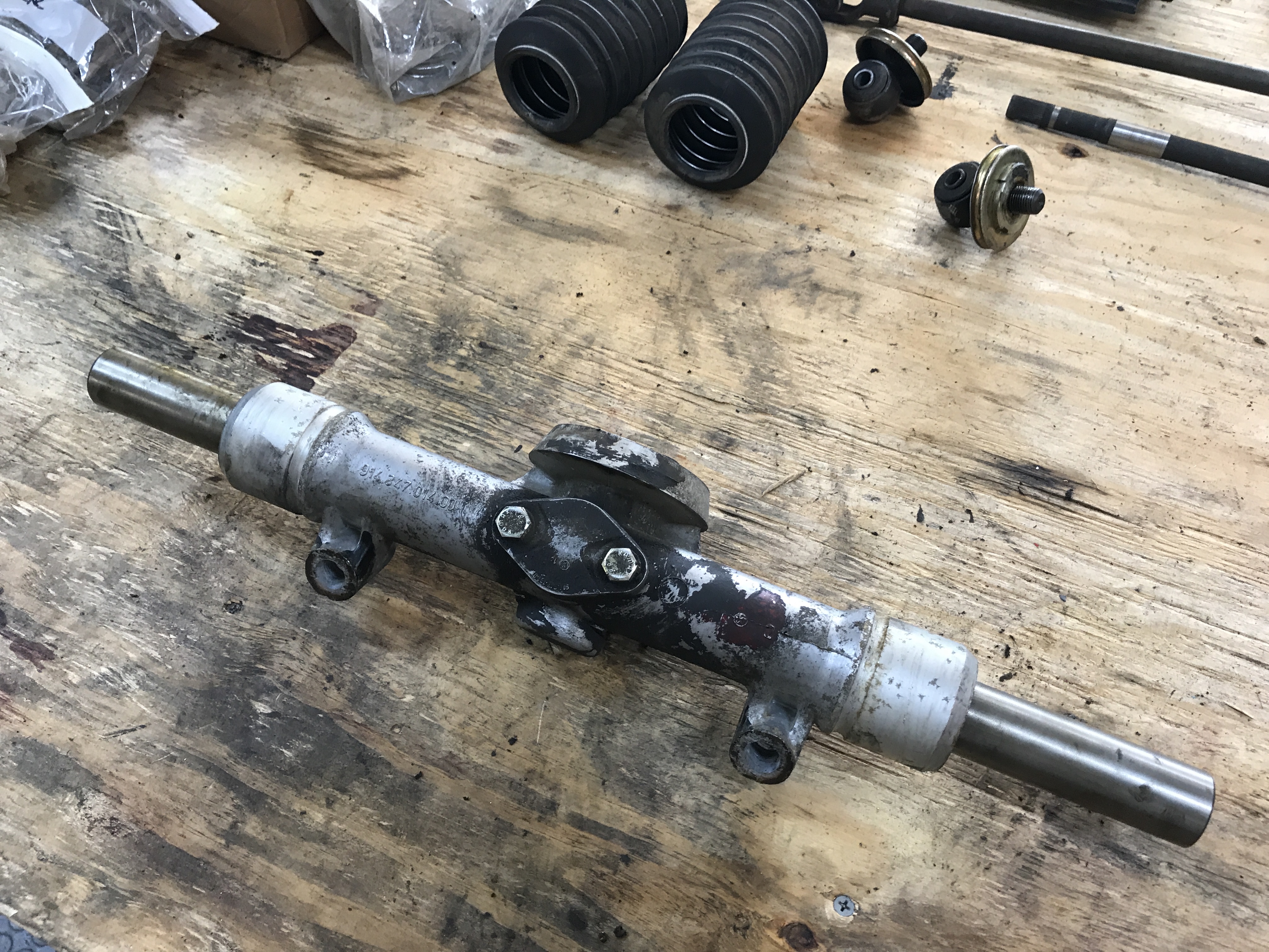 Today, I tackled the rack disassembly. After a visit to the parts washer, it looked a bit cleaner.