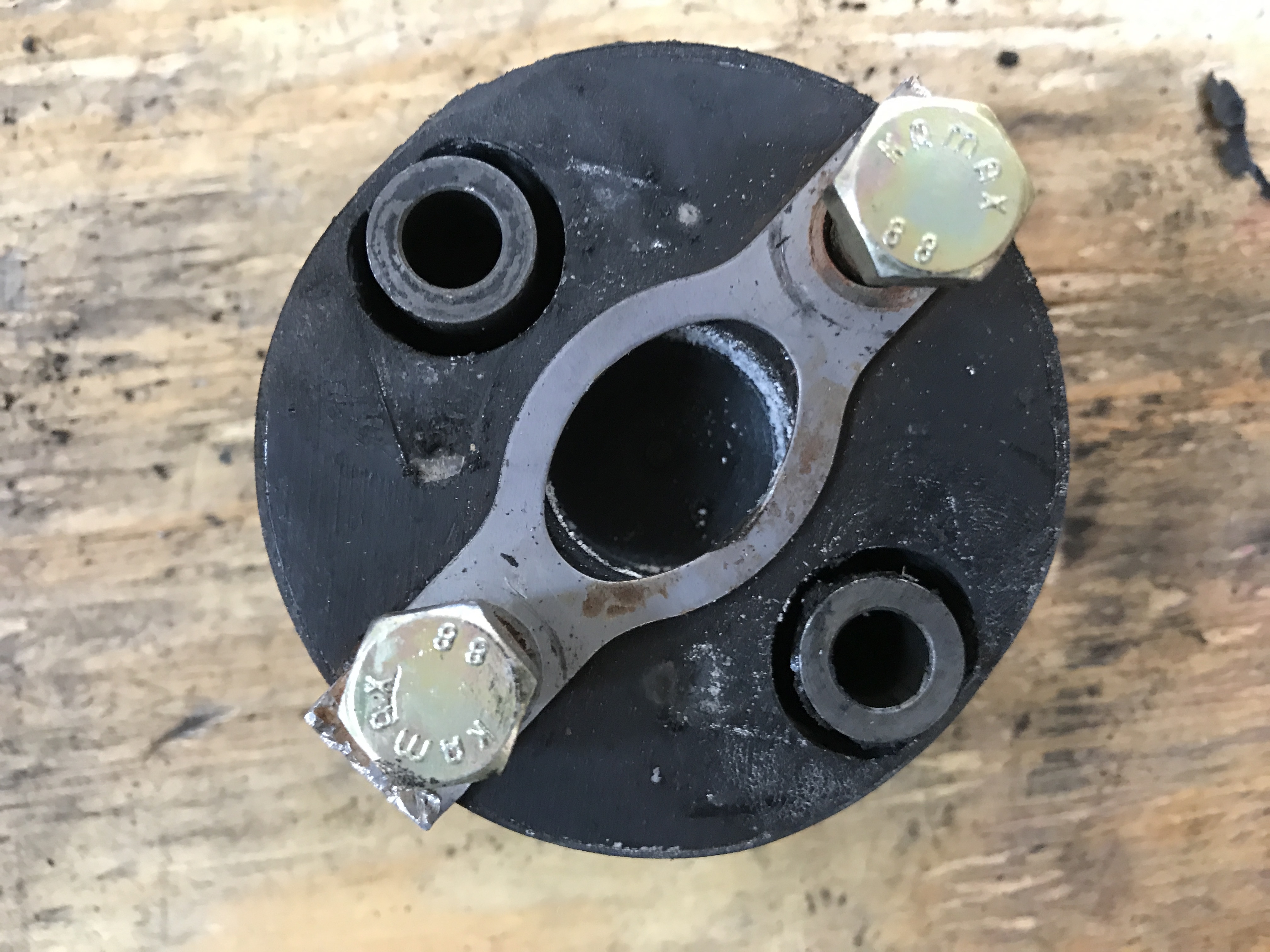 Here's the problem: the holes in the coupler are just a bit larger than the bushings.