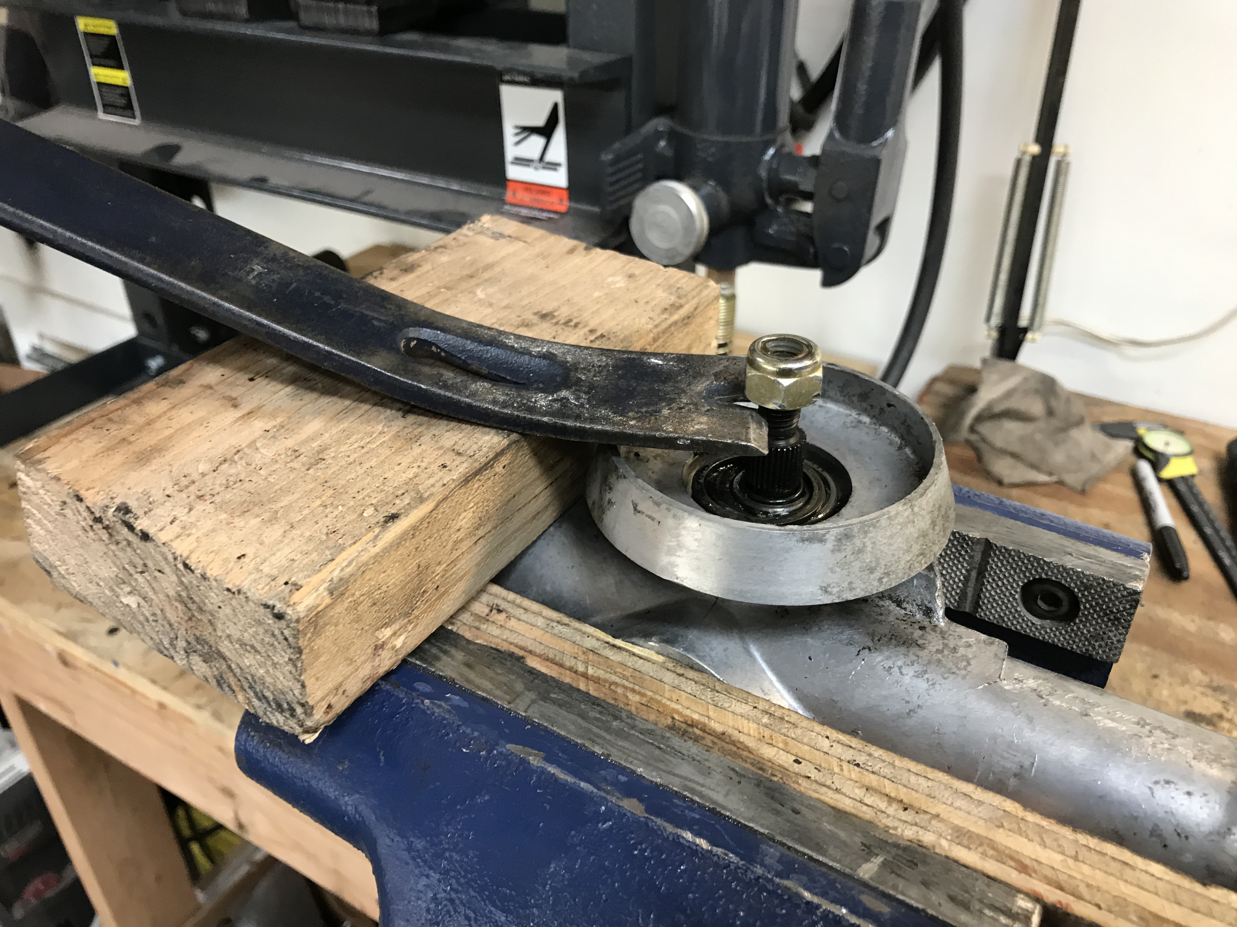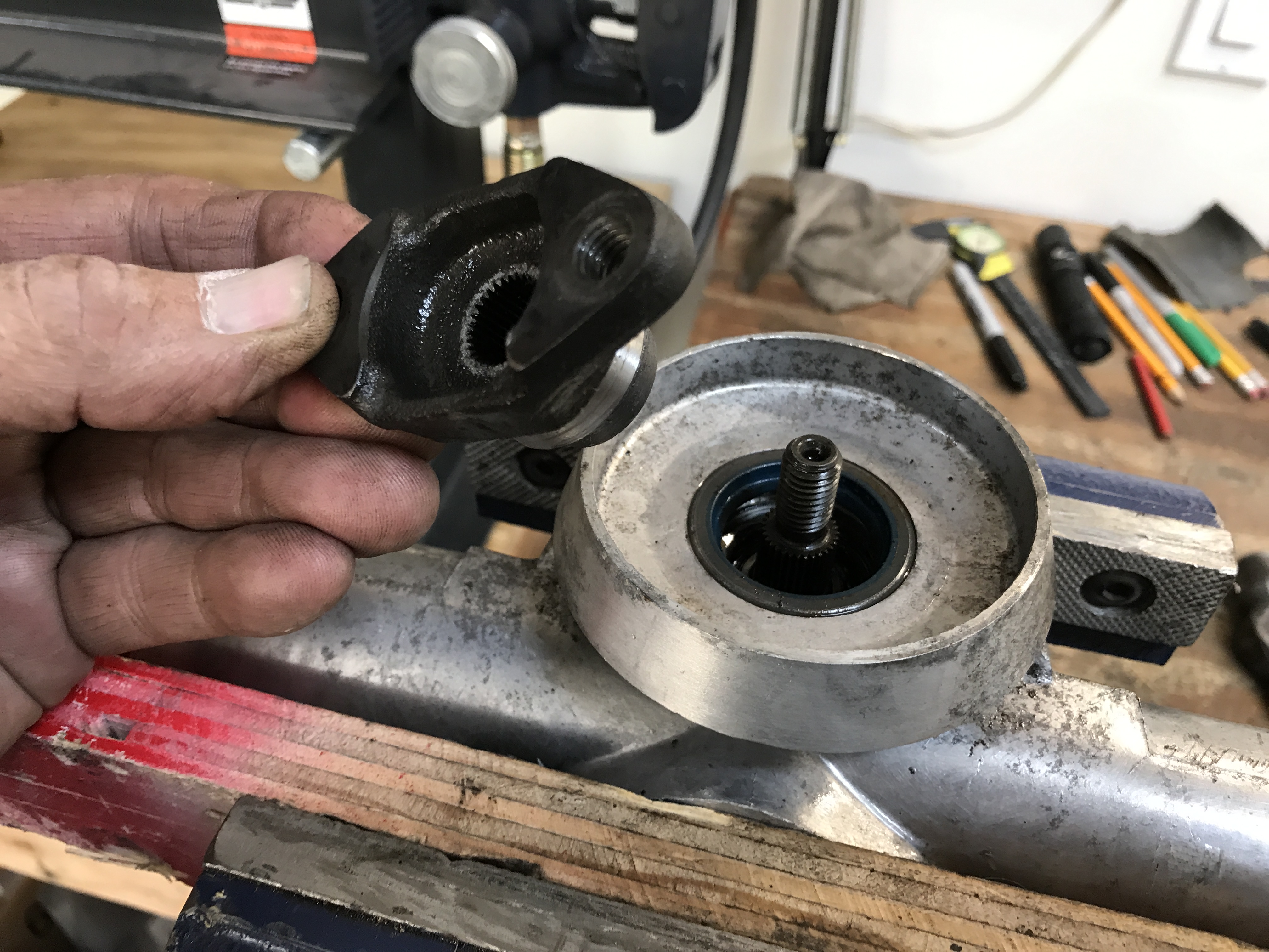 Next was the pinion retaining nut and input yoke. Mine came off with strong finger pull. Attached thumbnail(s) |