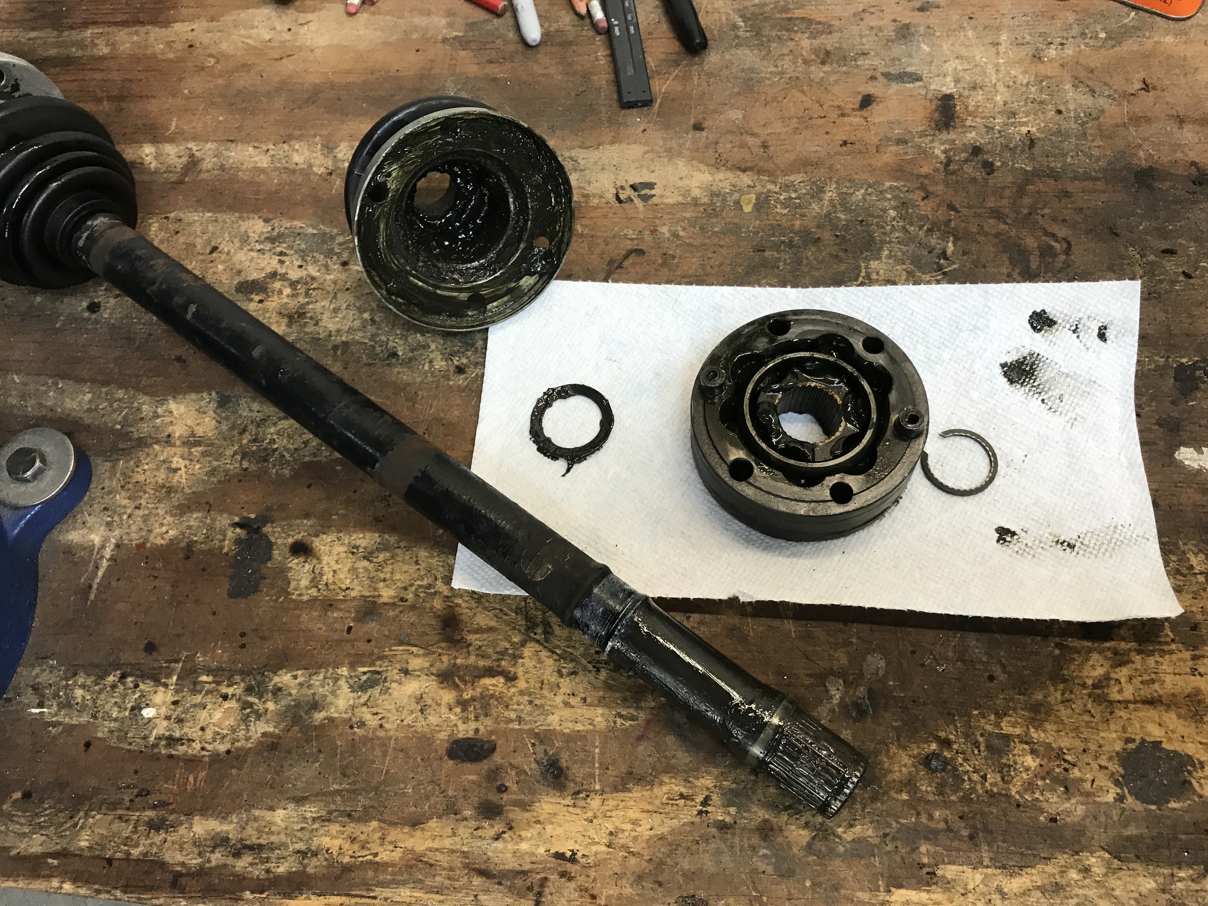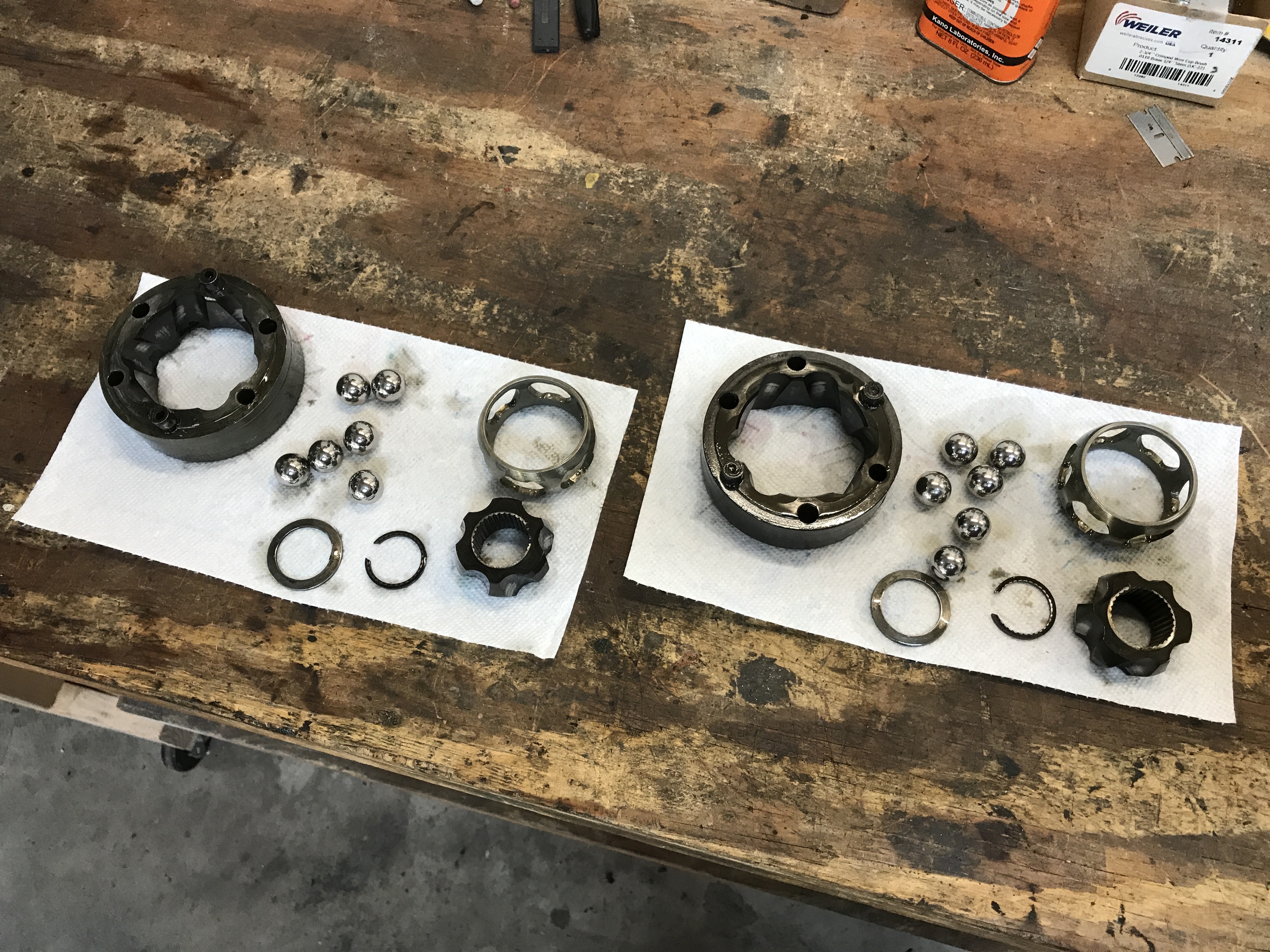 Repeat on the other end, and then break down the CV joints (keep the parts for each one together).